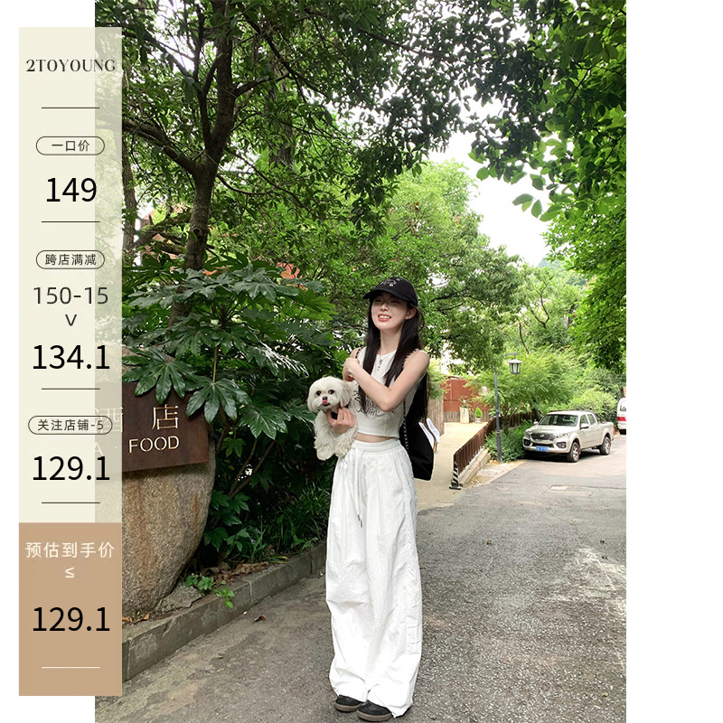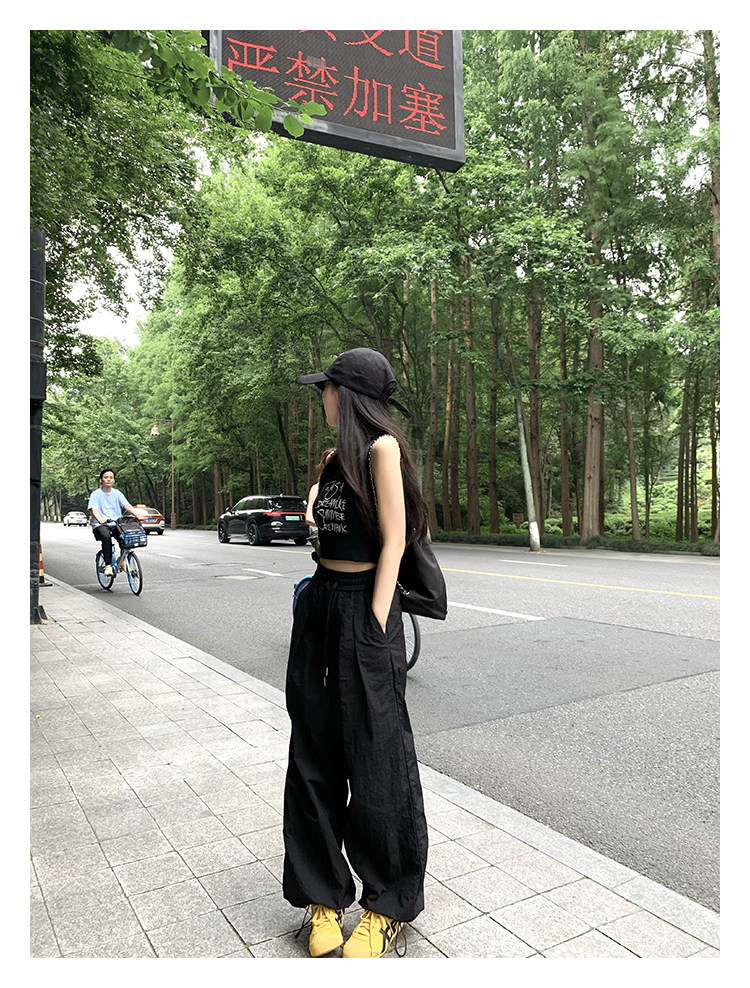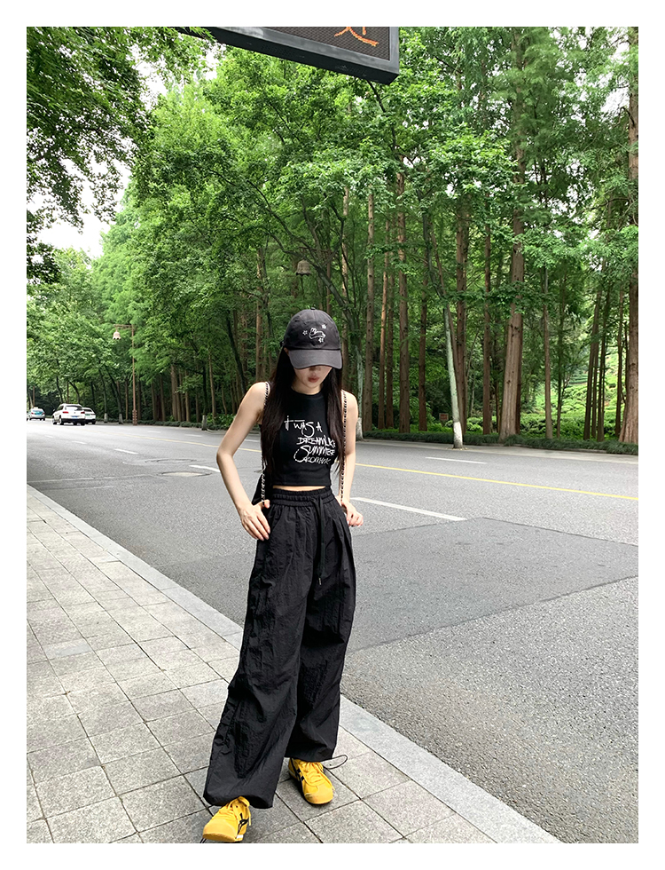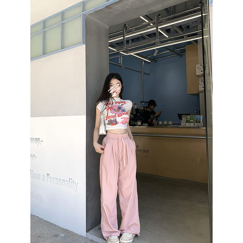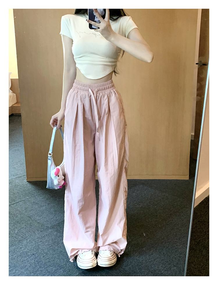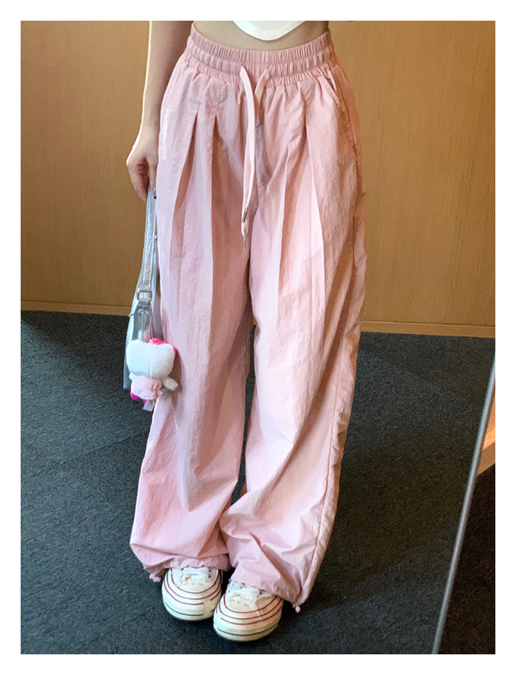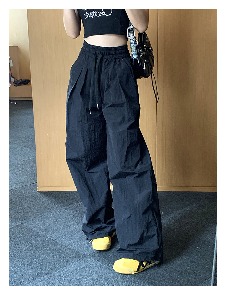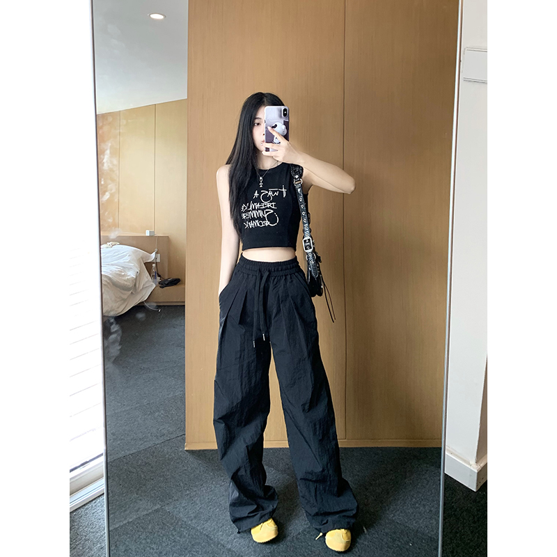 2toyoung有氧降落速乾運動休閒褲女夏薄款褶皺感傘兵褲防曬闊腿褲