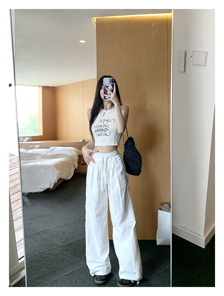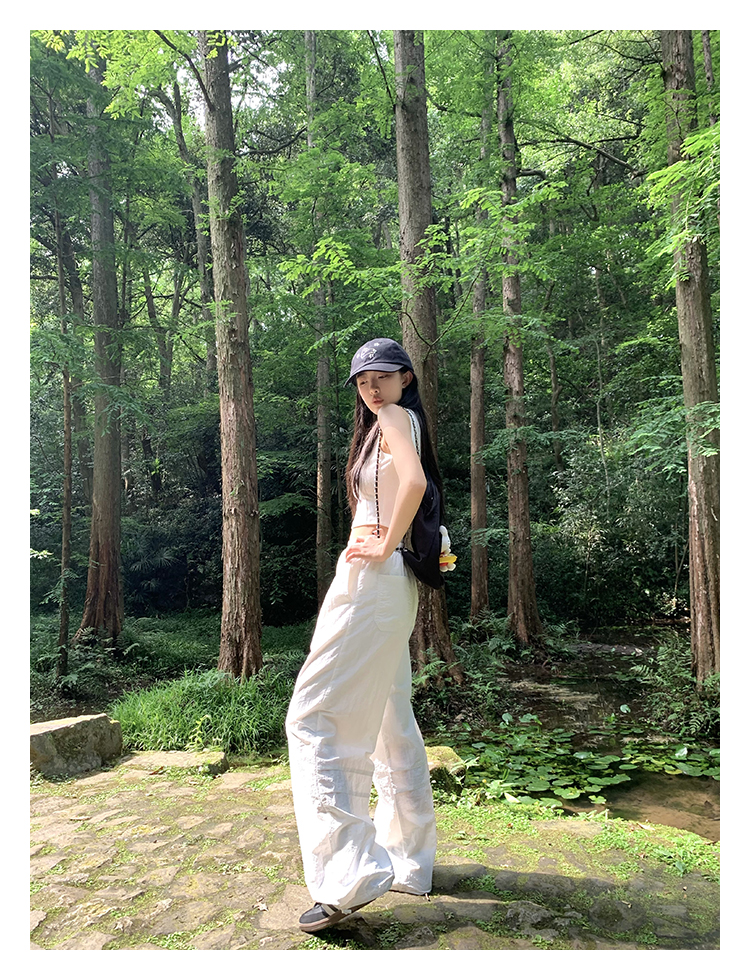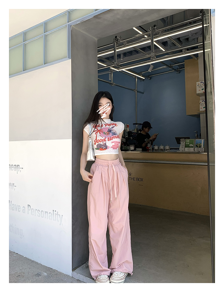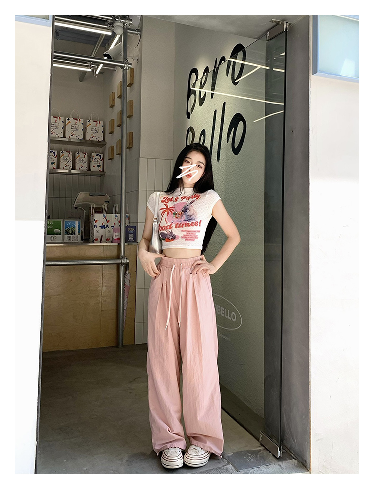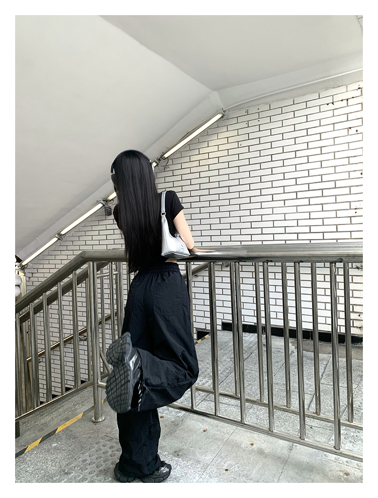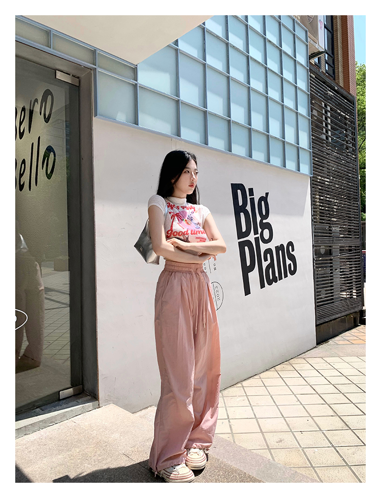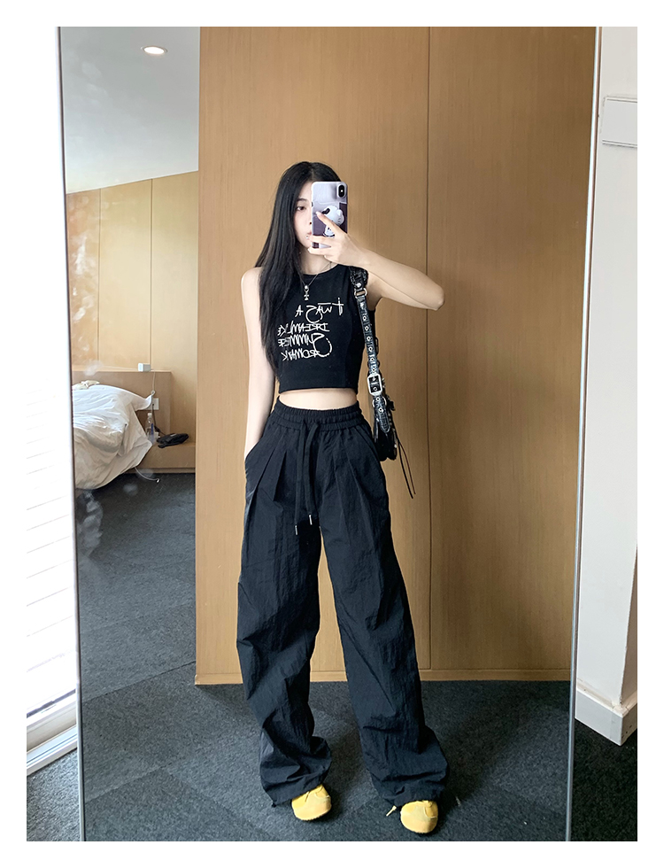 2toyoung有氧降落速乾運動休閒褲女夏薄款褶皺感傘兵褲防曬闊腿褲
