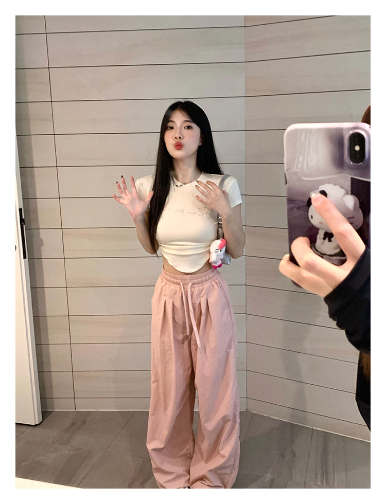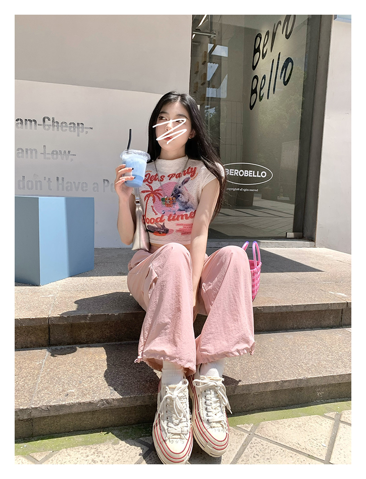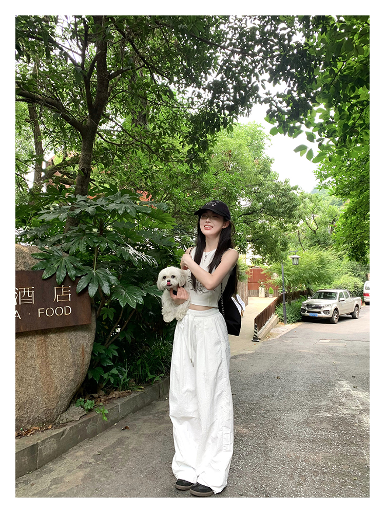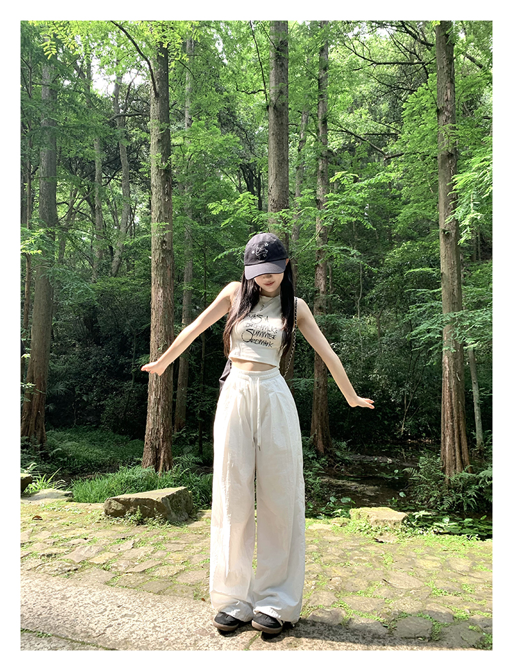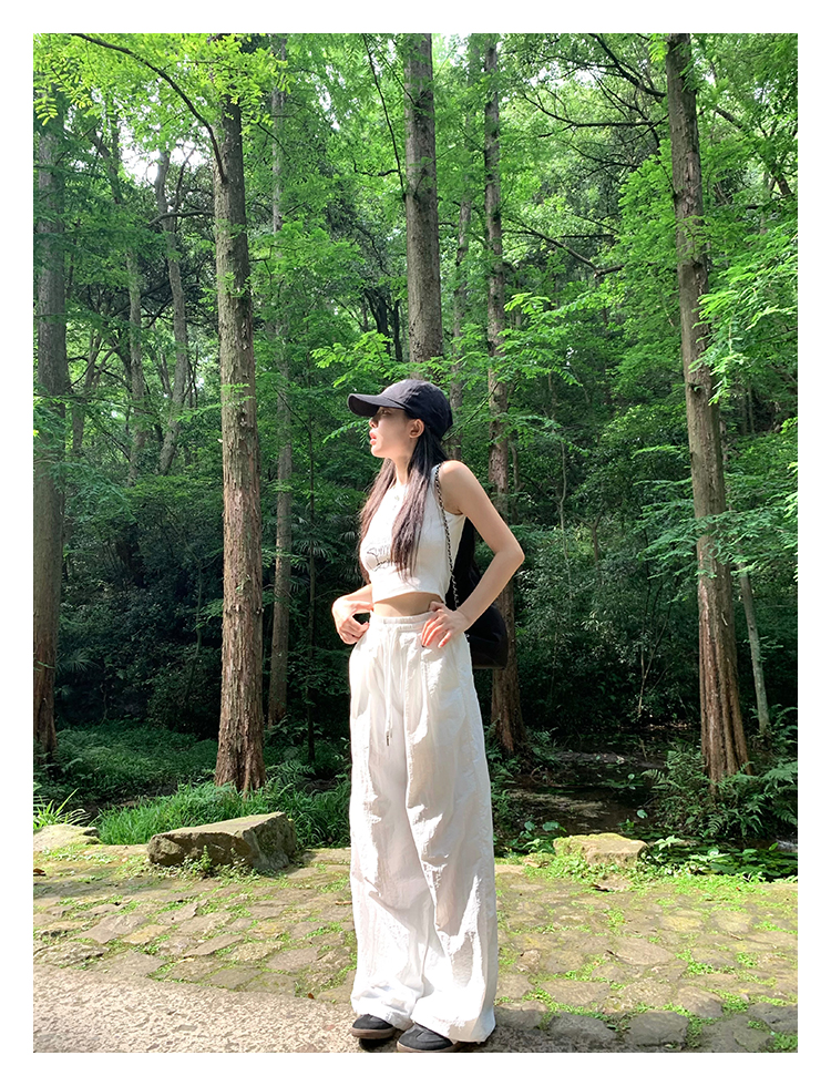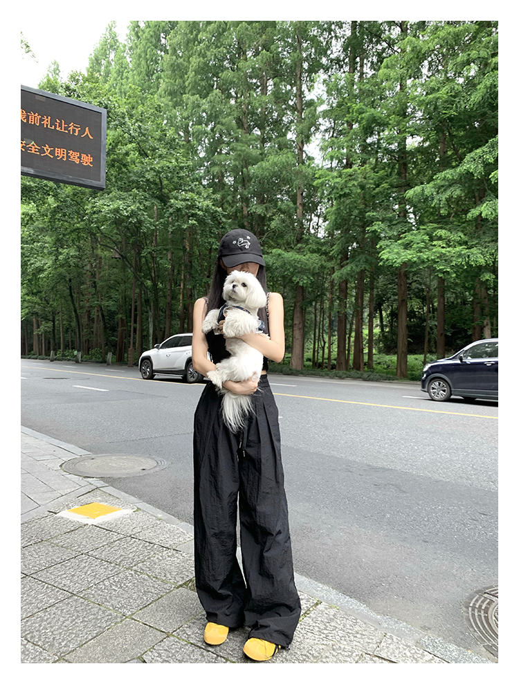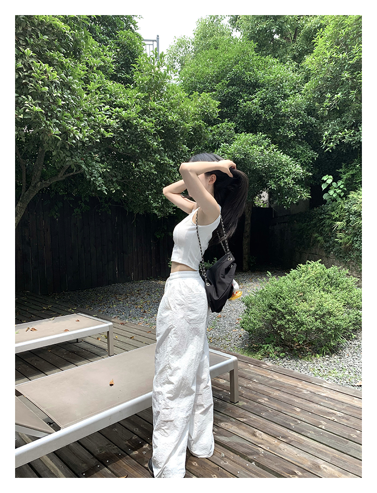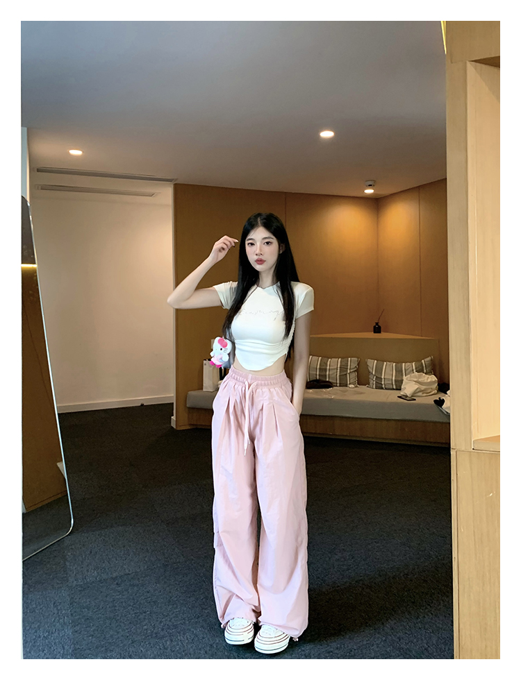 2toyoung有氧降落速乾運動休閒褲女夏薄款褶皺感傘兵褲防曬闊腿褲