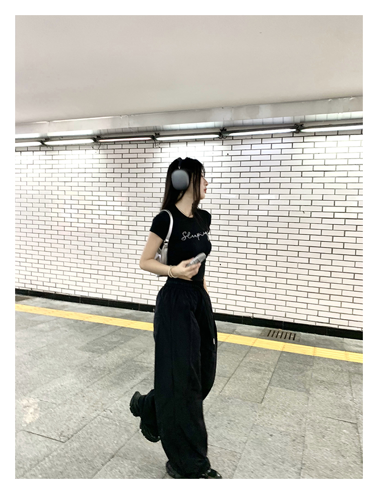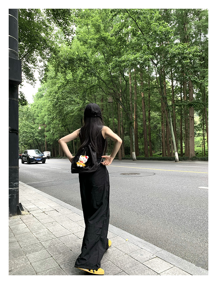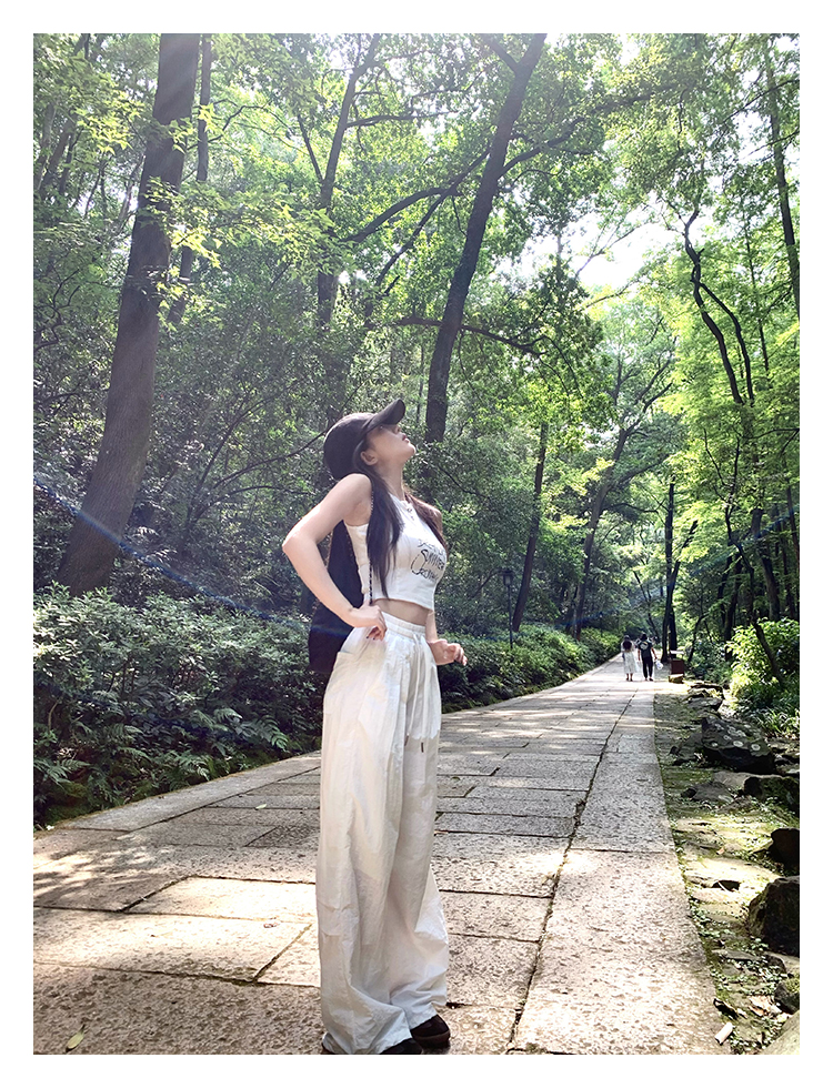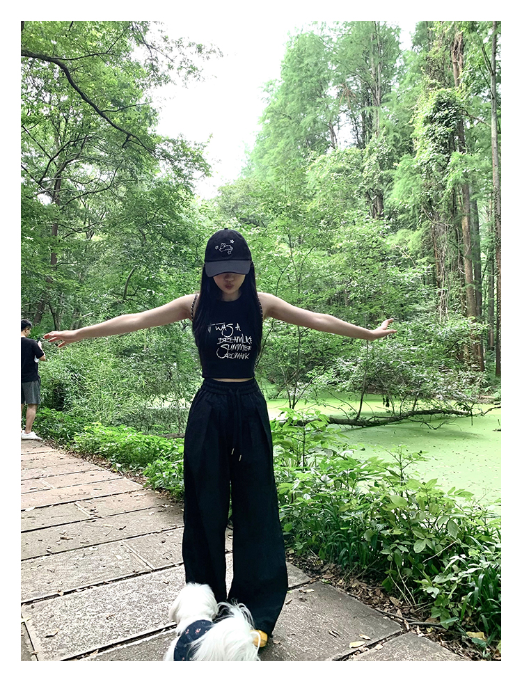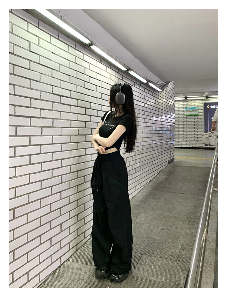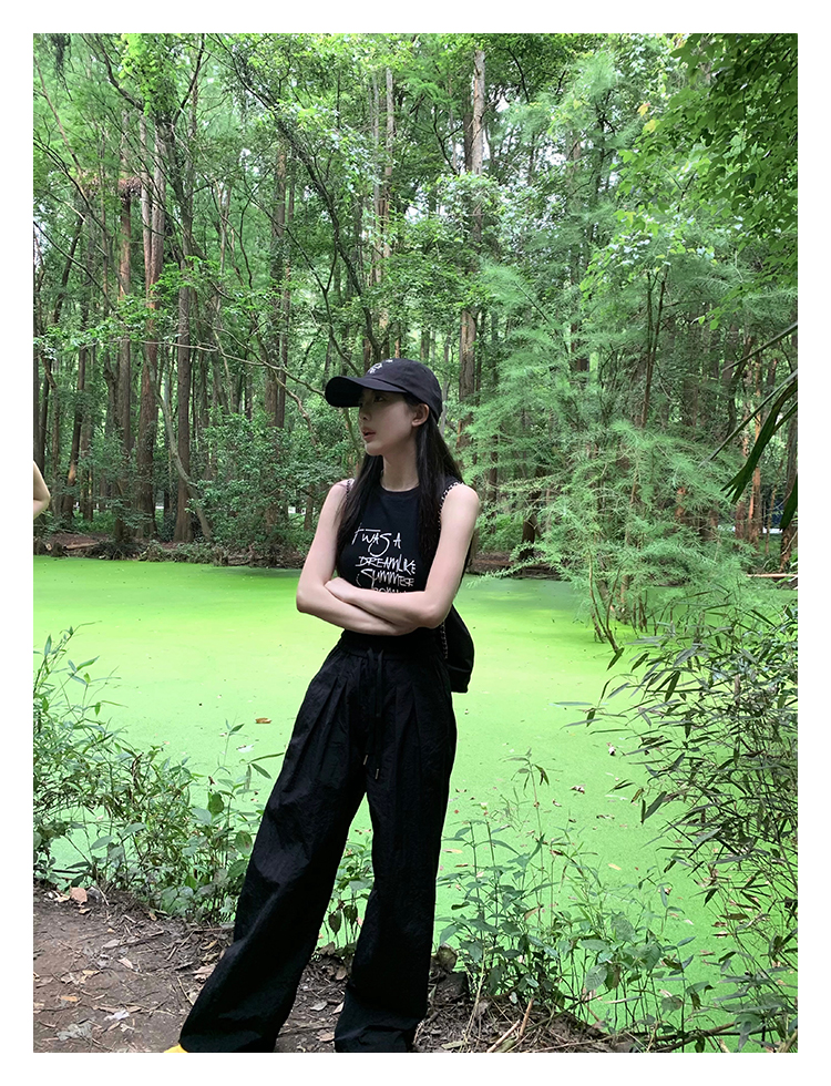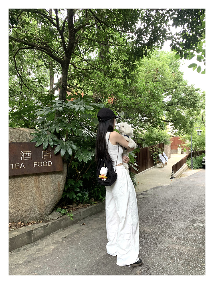2toyoung有氧降落速乾運動休閒褲女夏薄款褶皺感傘兵褲防曬闊腿褲