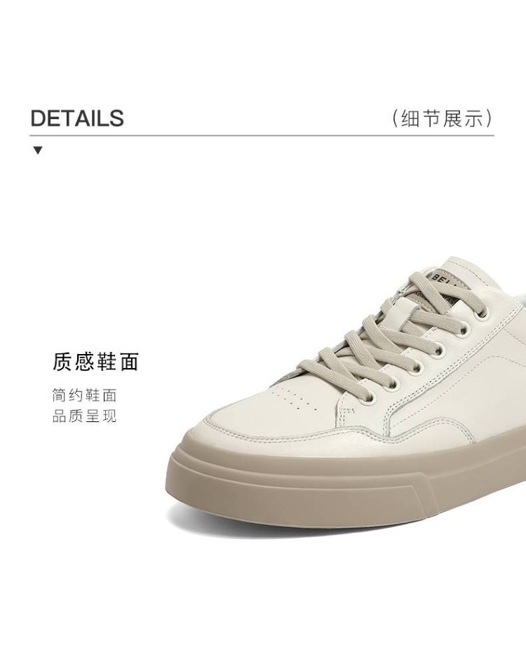 Belle/百麗2023春秋新真皮小白鞋男高級感低幫休閒板鞋男7WN01AM3