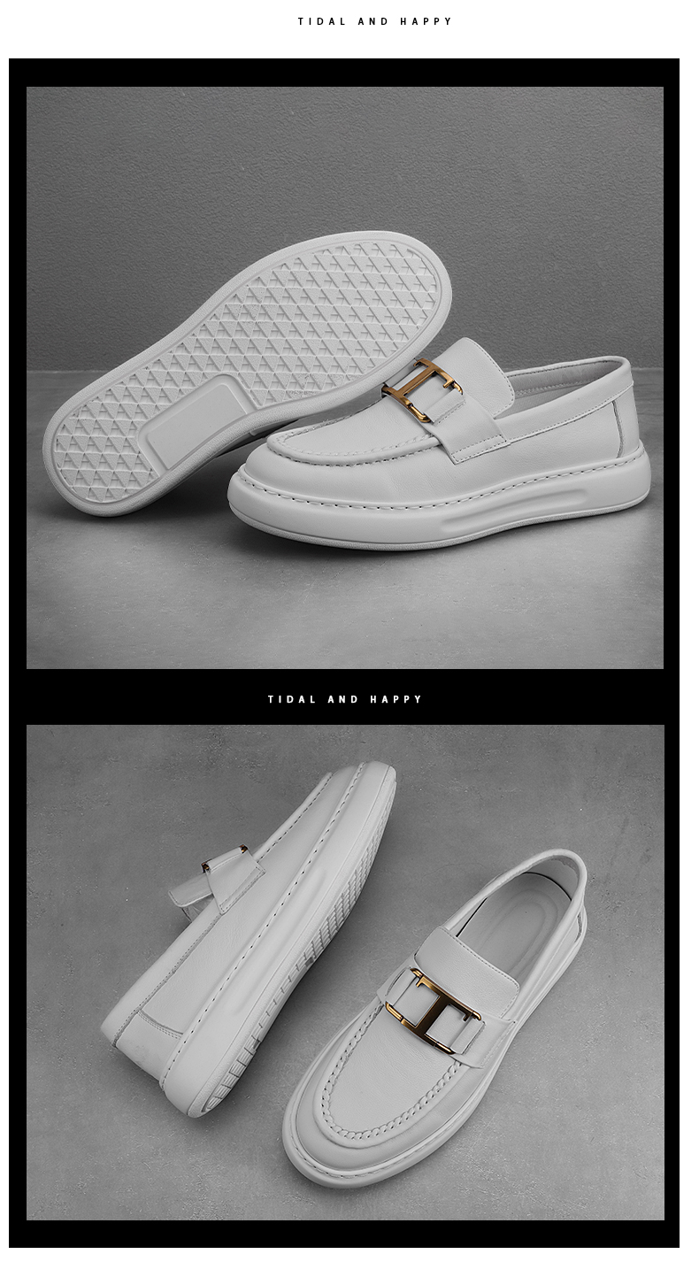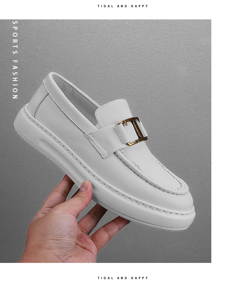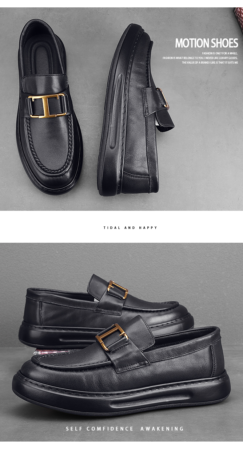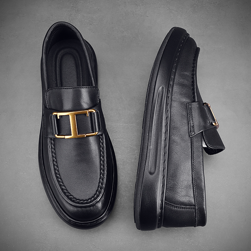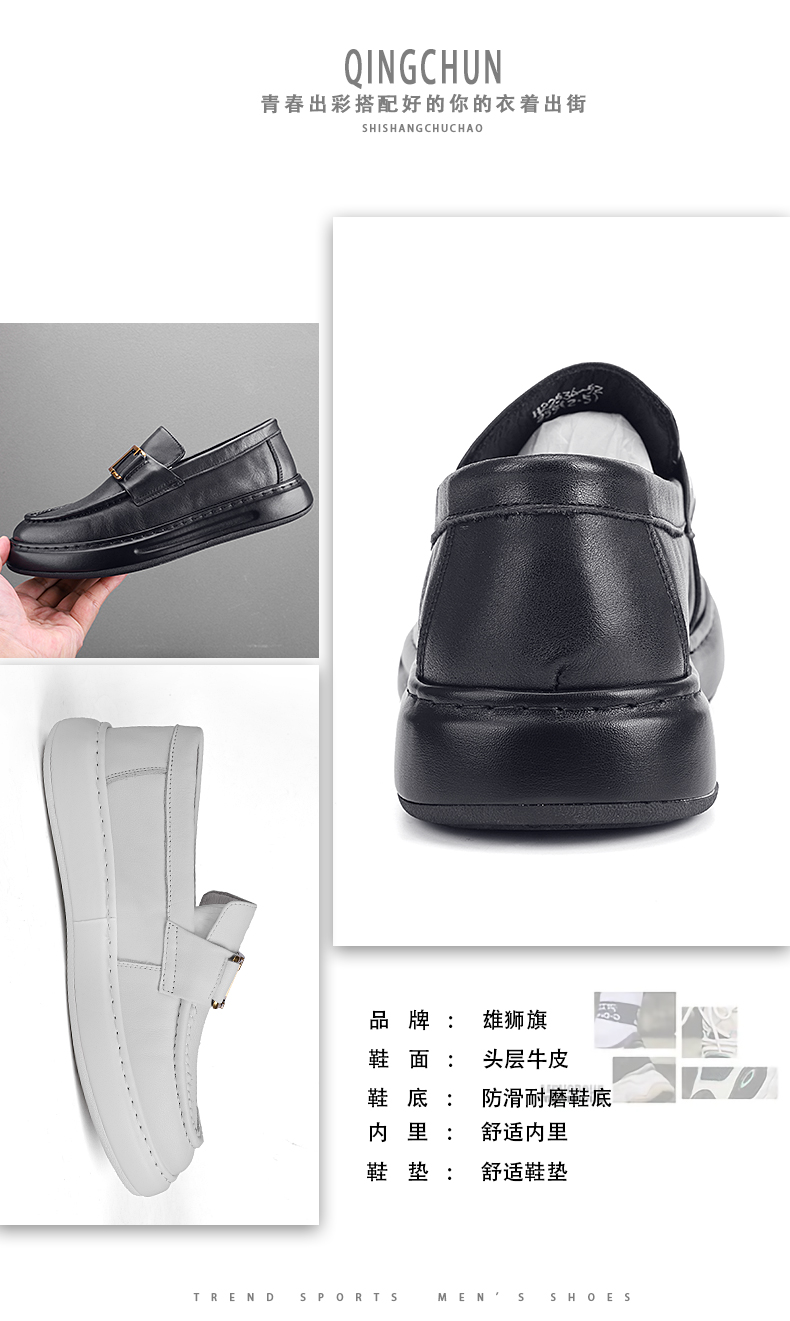 潮牌高級感小皮鞋男真皮包底套腳男鞋英倫風厚底牛皮豆豆鞋結婚鞋