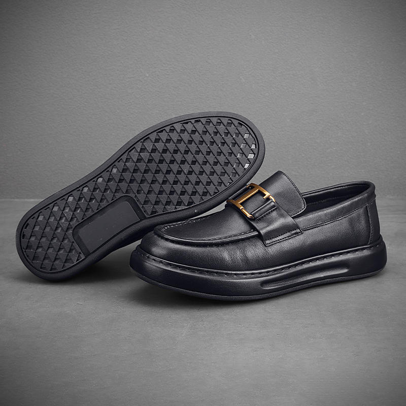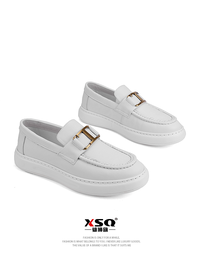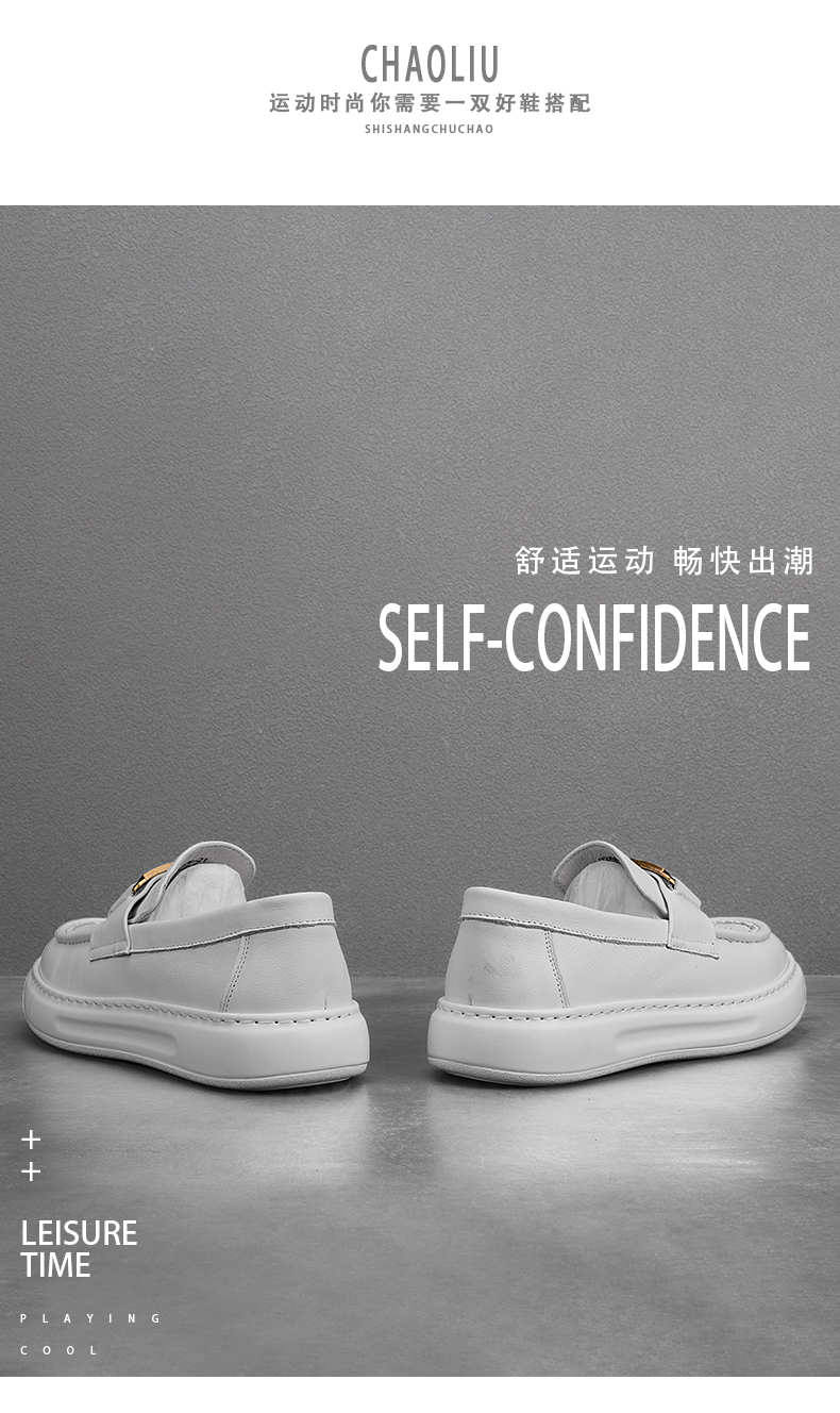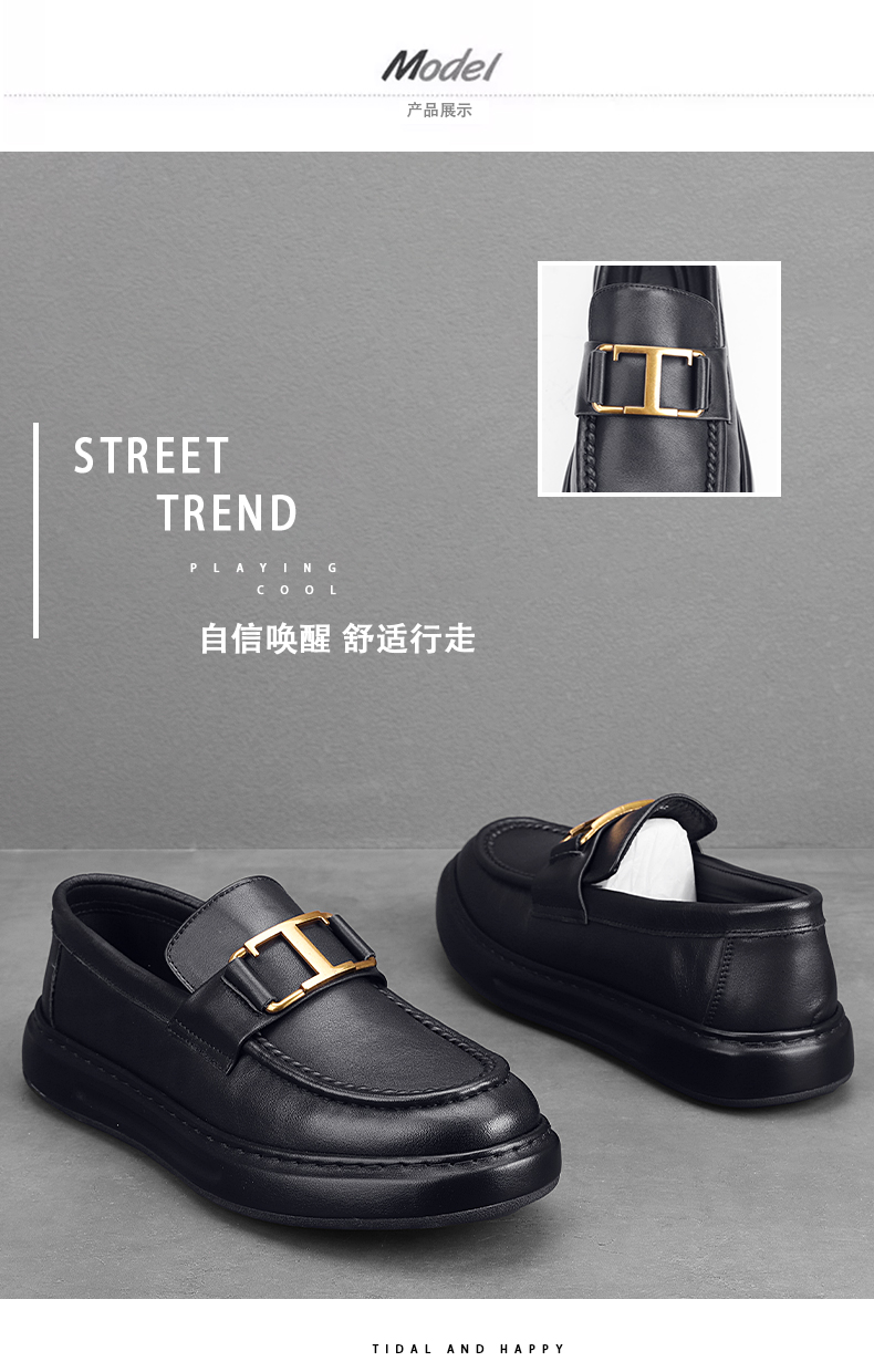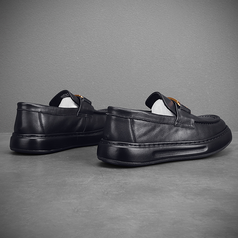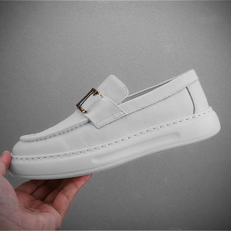 潮牌高級感小皮鞋男真皮包底套腳男鞋英倫風厚底牛皮豆豆鞋結婚鞋