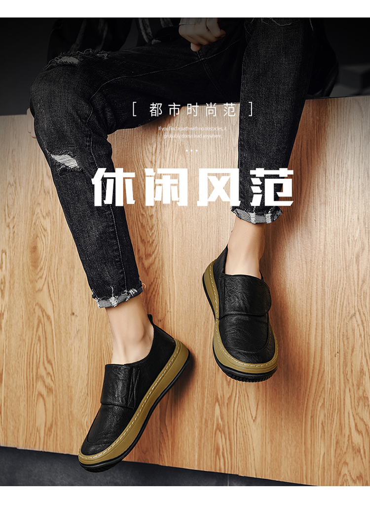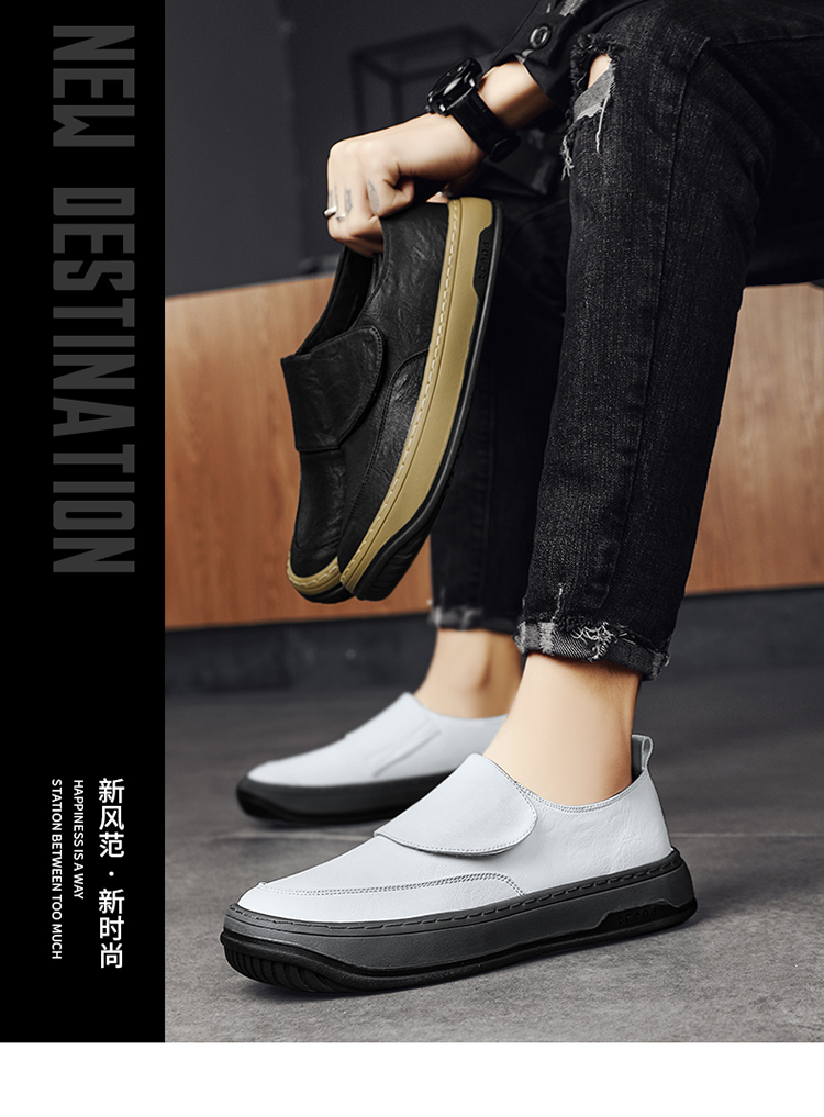 皮鞋男夏季休閒板鞋一腳蹬懶人豆豆鞋男士真皮樂福鞋百搭運動潮鞋