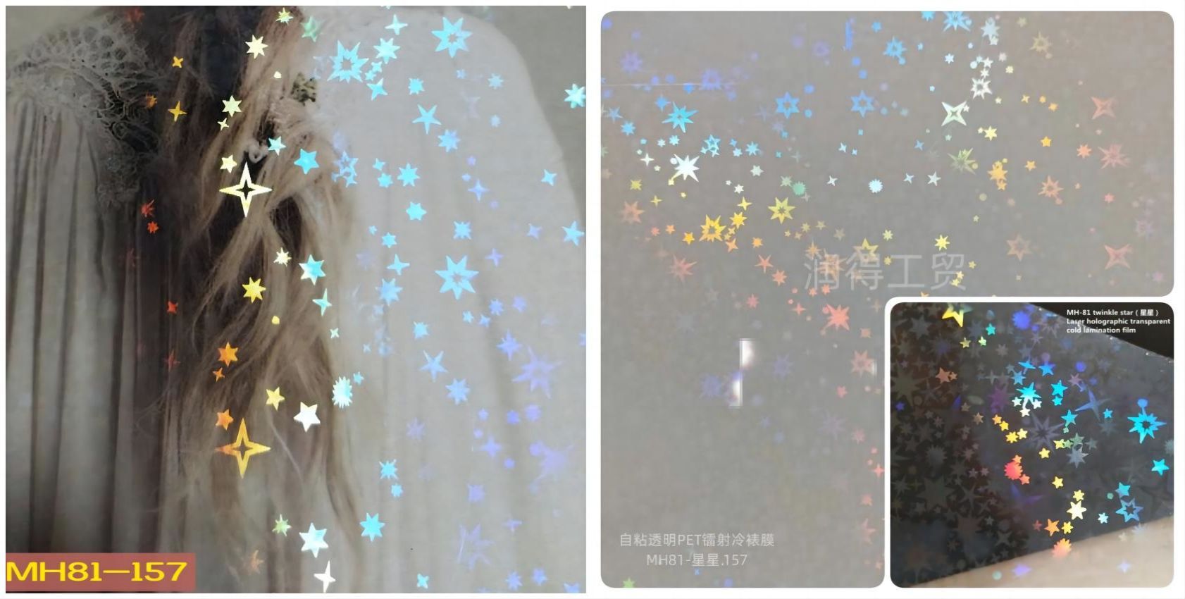 工厂现货包邮 PET透明镭射膜MH-81繁星星157自粘背胶冷裱膜耐刮
