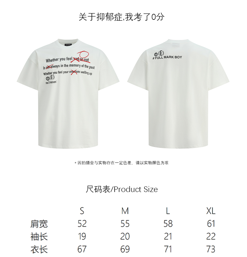 no E mosen* Zer 0 Score ”關於抑鬱症,我考了0分“印繡工藝短袖