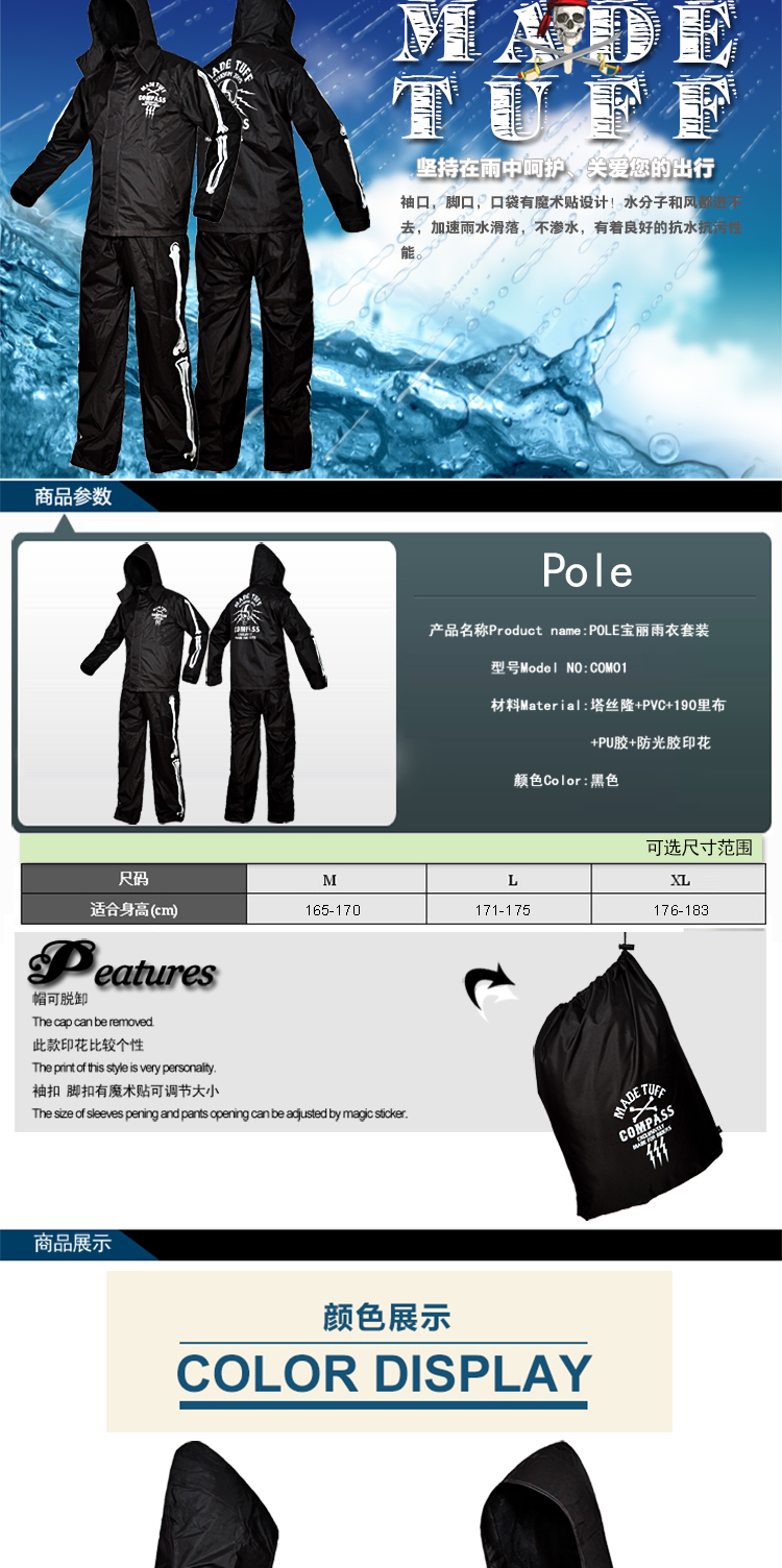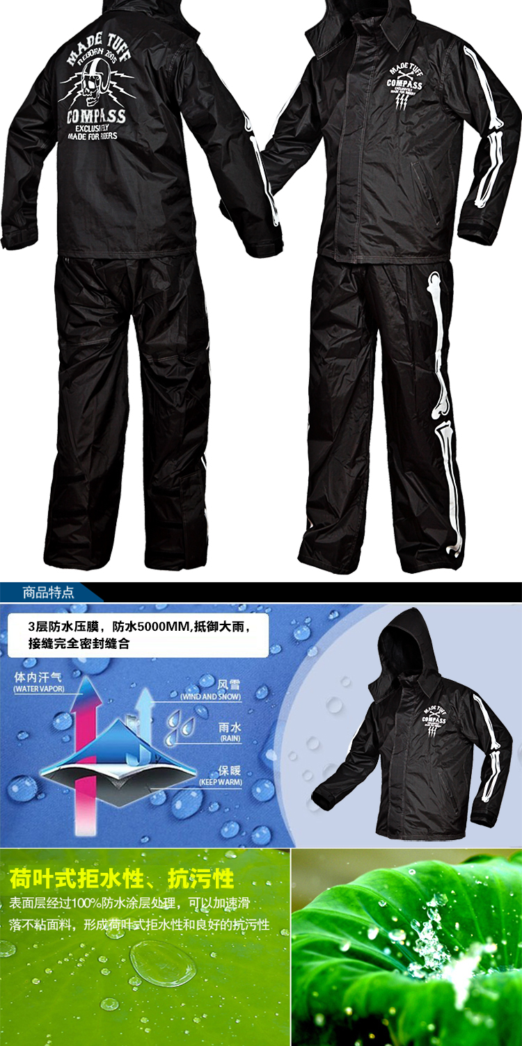 POLE摩托车雨衣外套户外单人男女骑行时尚分体防暴雨套装防水全身