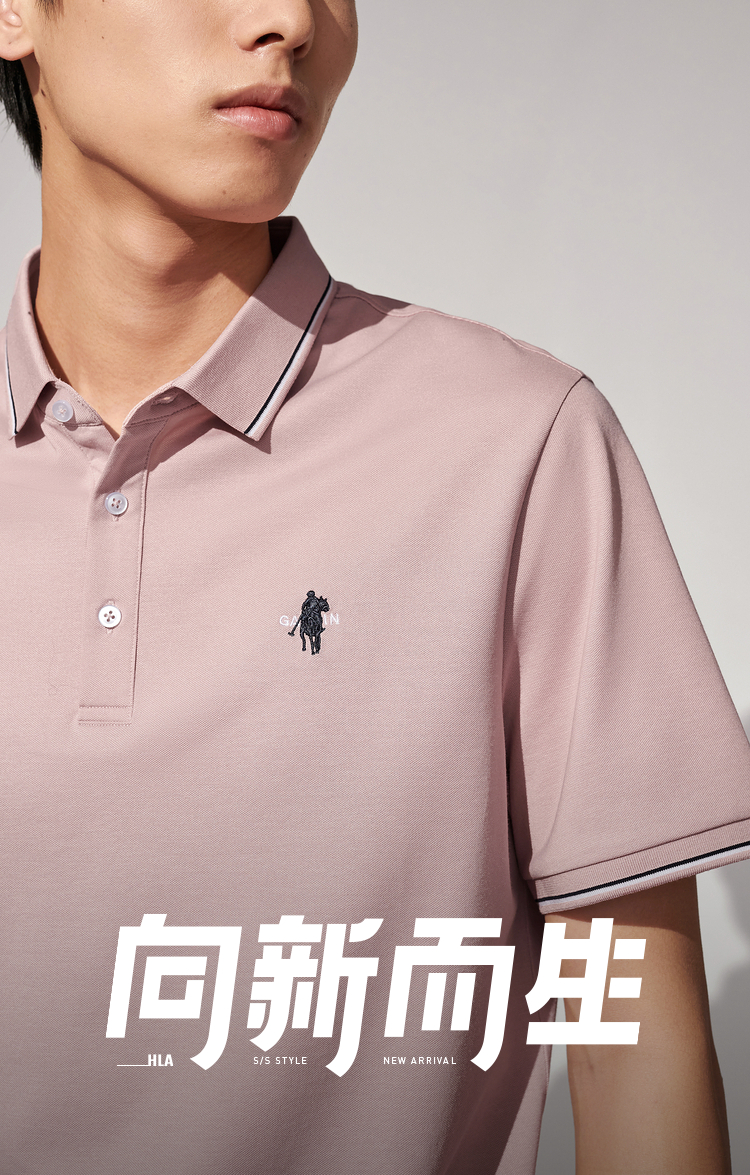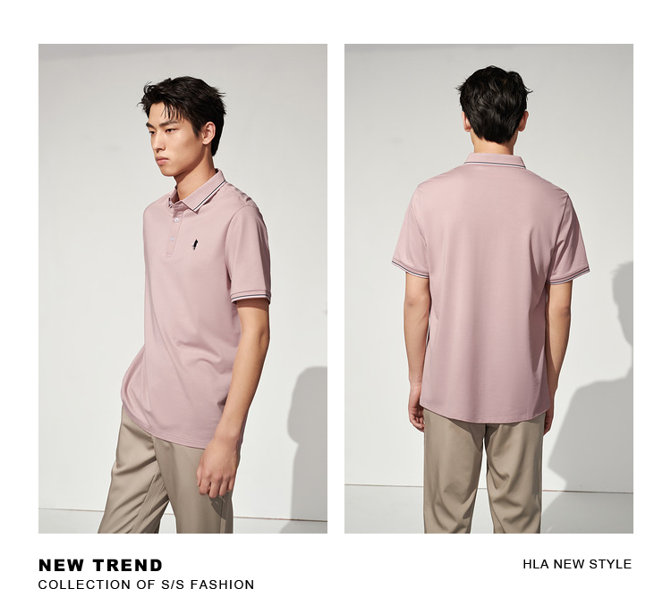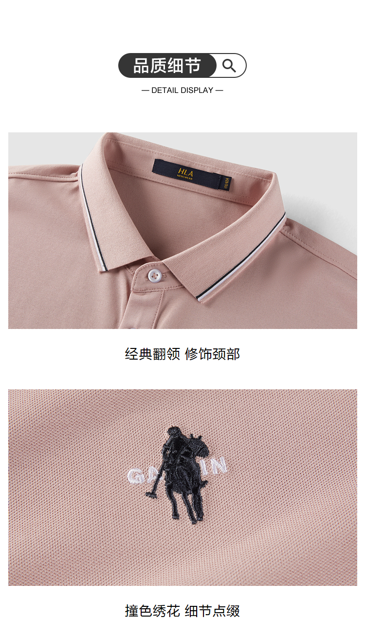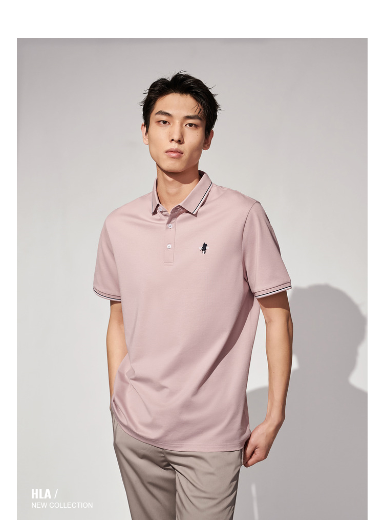 HLA/海瀾之家含萊賽爾短袖Polo23春夏新款舒適透氣繡花翻領短t男