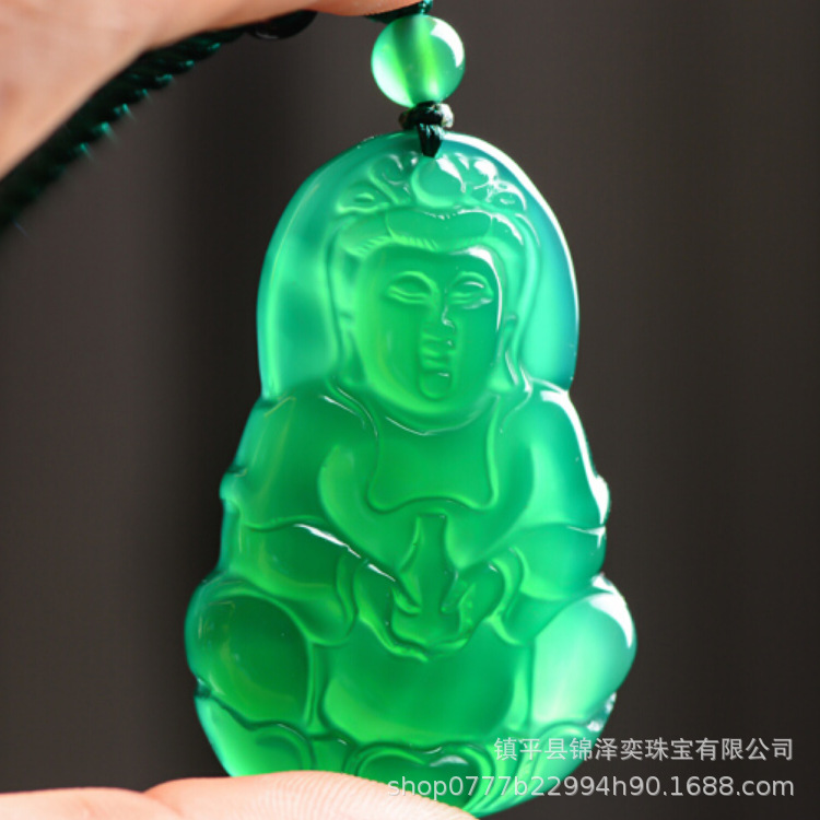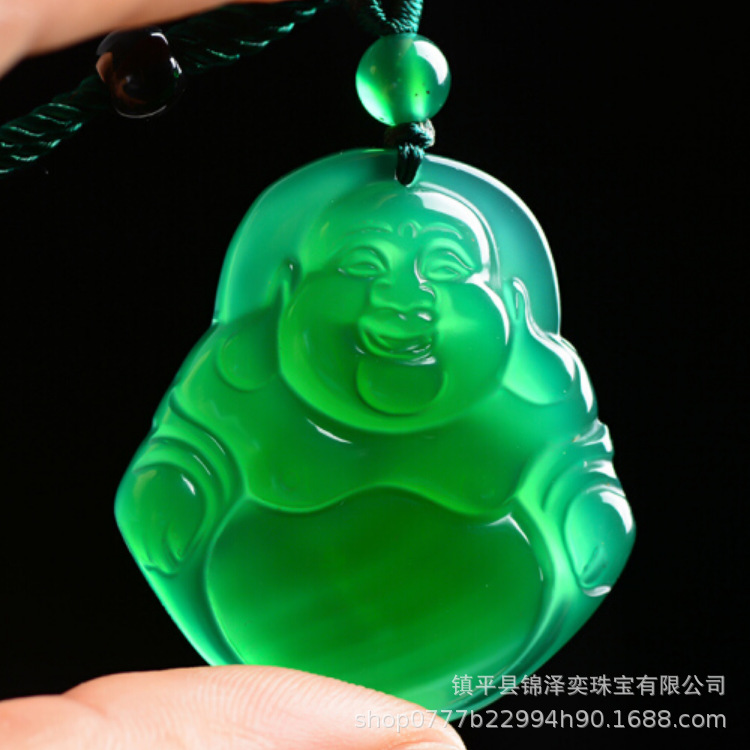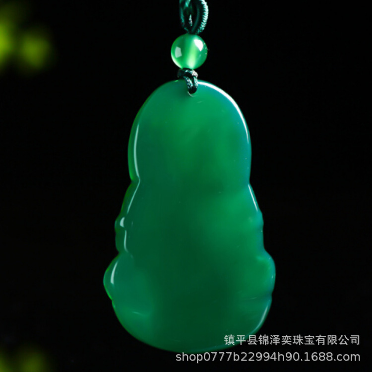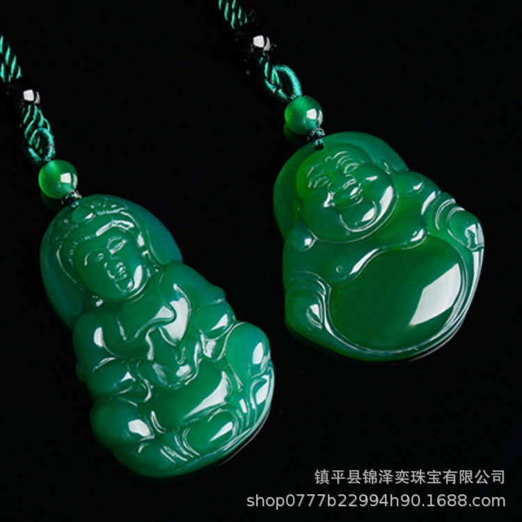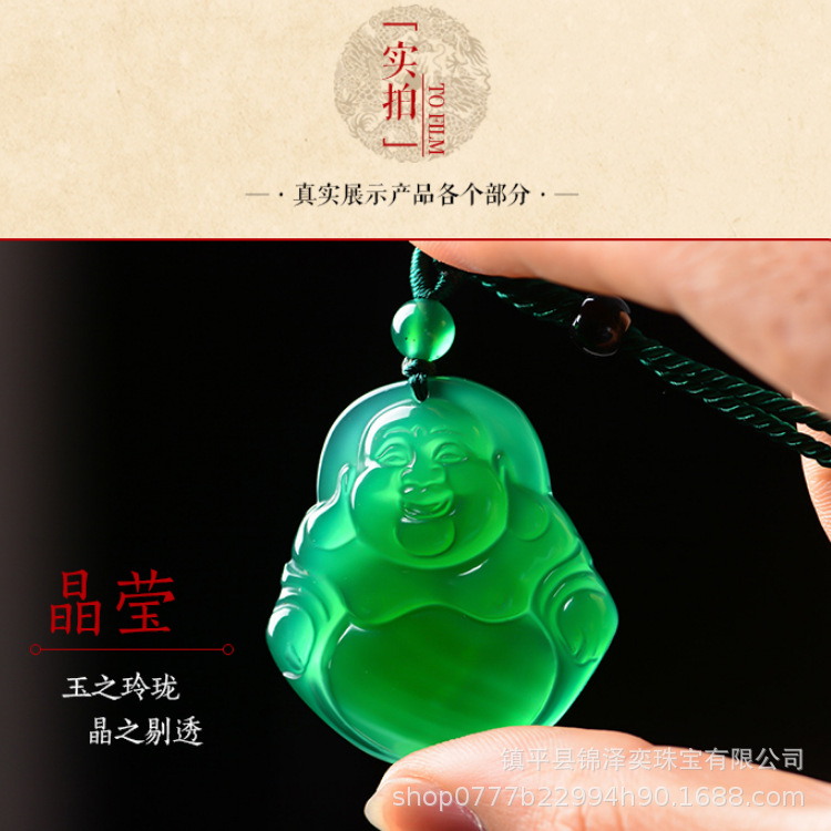 天然绿玛瑙观音吊坠冰绿玉髓挂件男女大款玉弥勒佛玉坠跑江湖热销