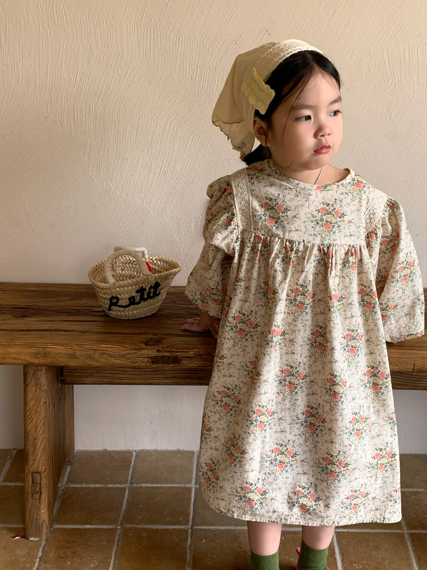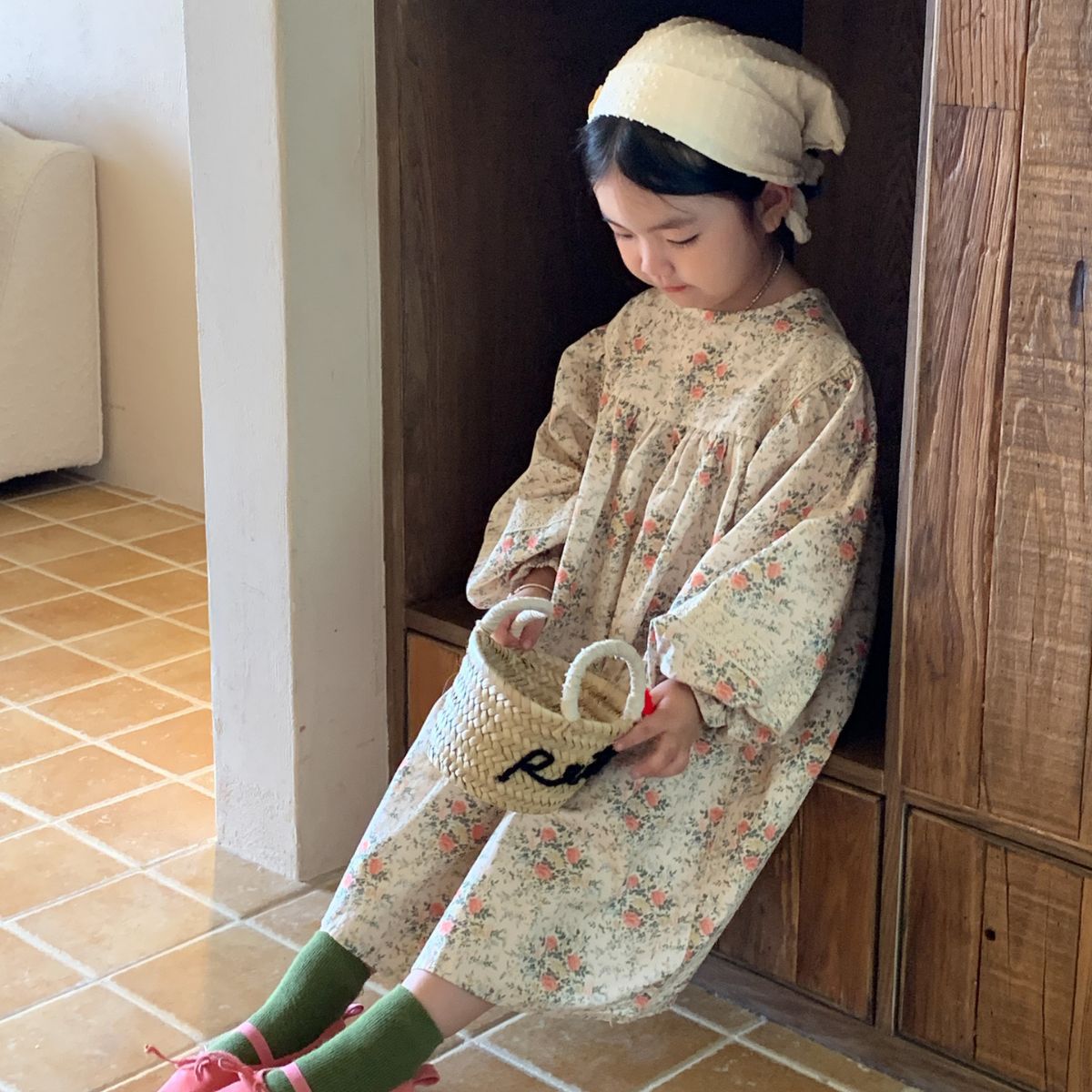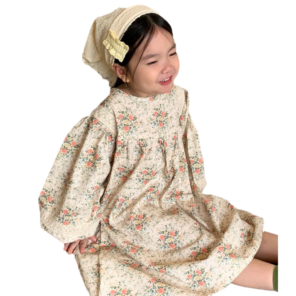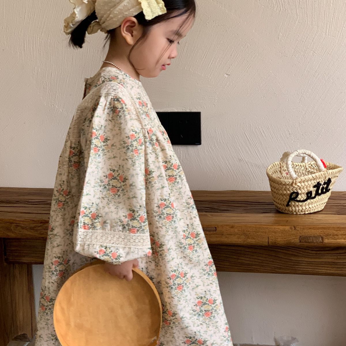 童裙莱抱抱2023秋季新款韩国童装韩版日系碎花蕾丝花边女童连衣裙