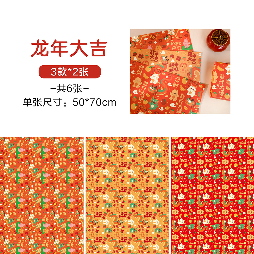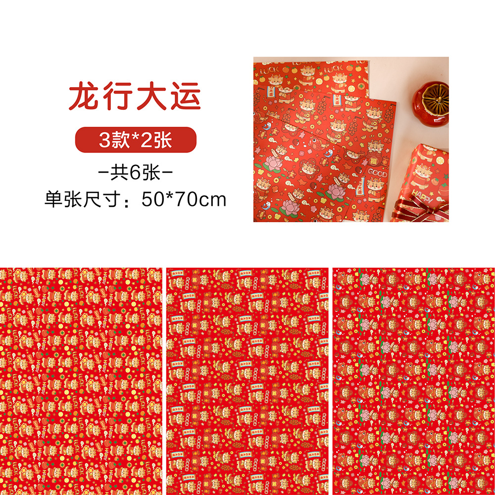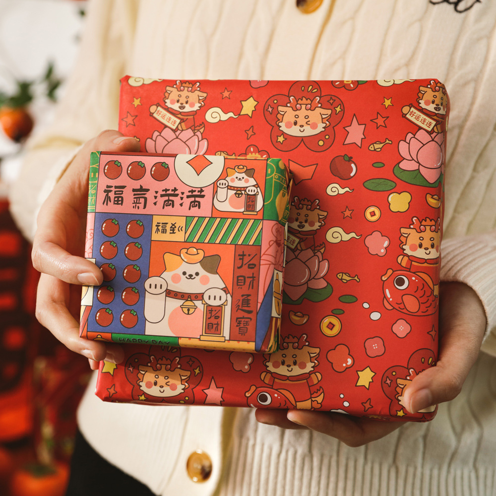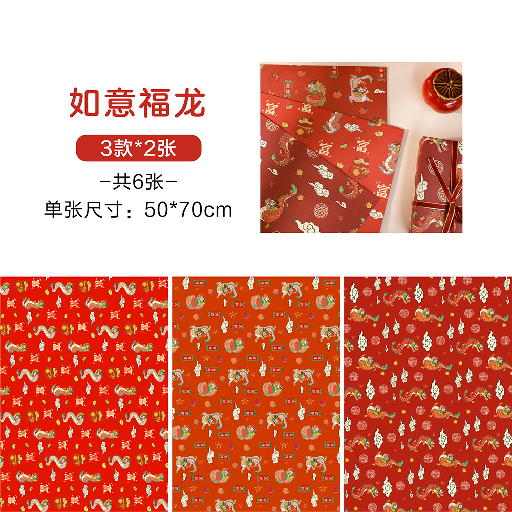 贝祥2024龙年新年春节6张包装纸礼物礼品纸ins风生日情人节花束纸