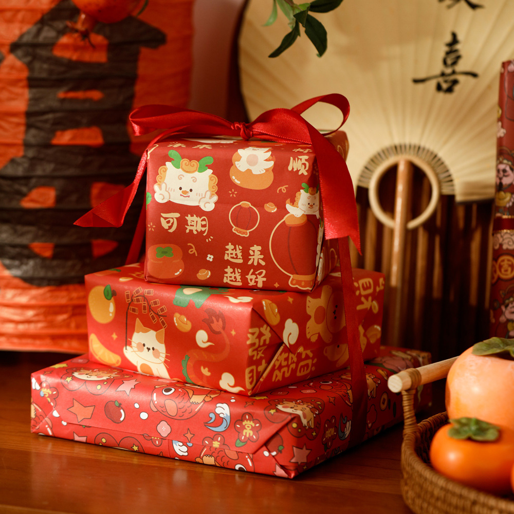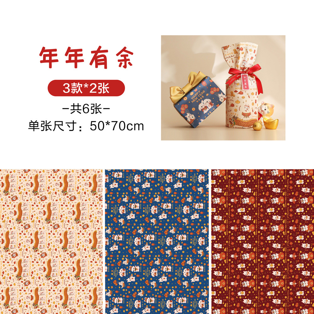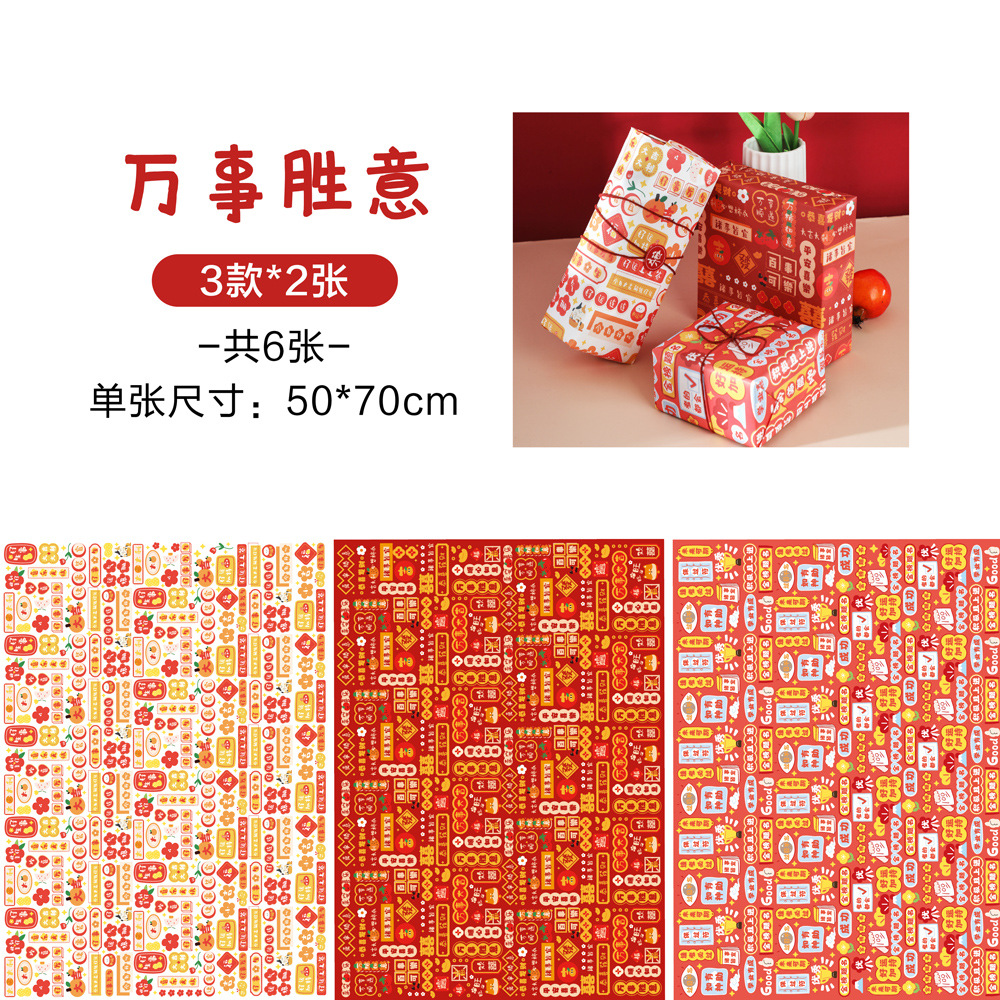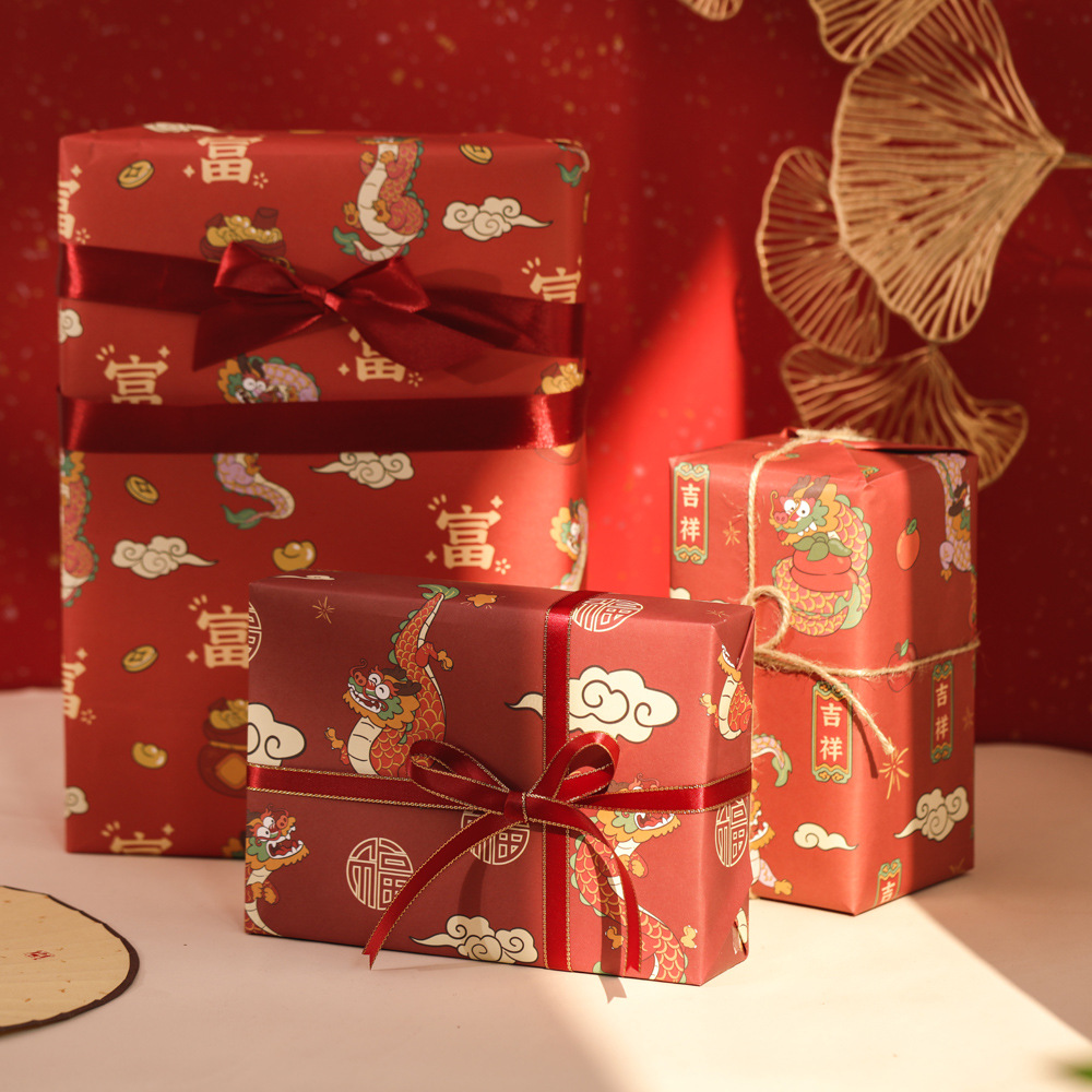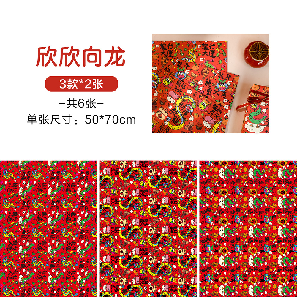 贝祥2024龙年新年春节6张包装纸礼物礼品纸ins风生日情人节花束纸