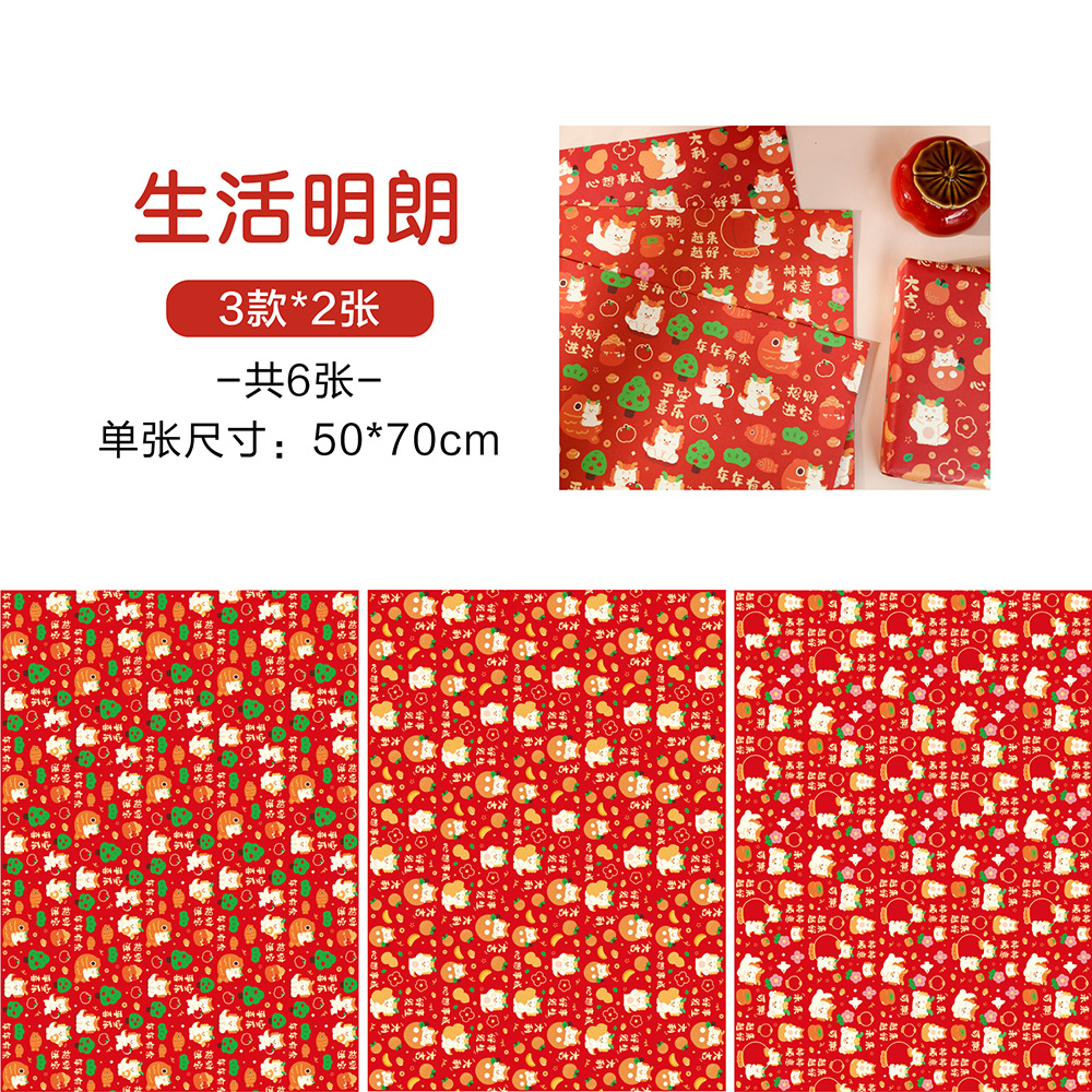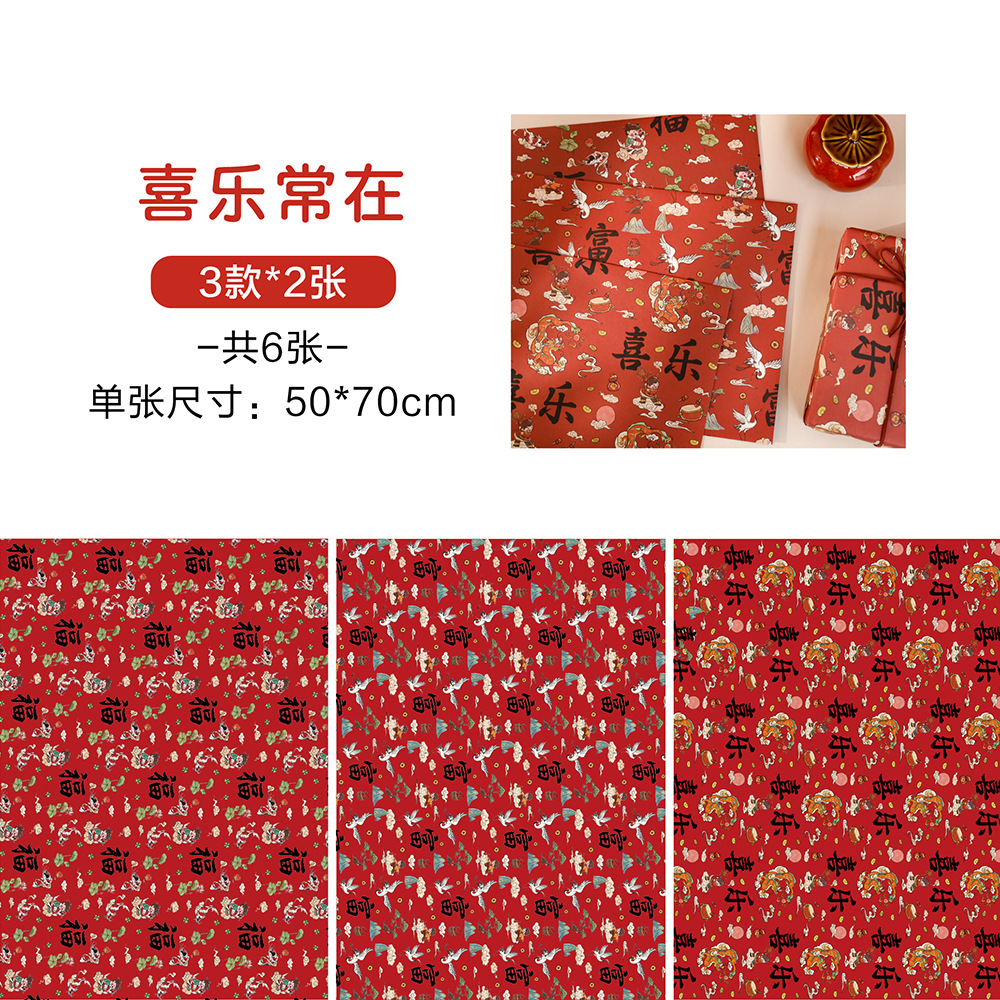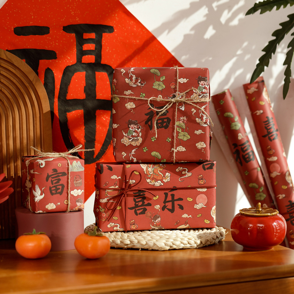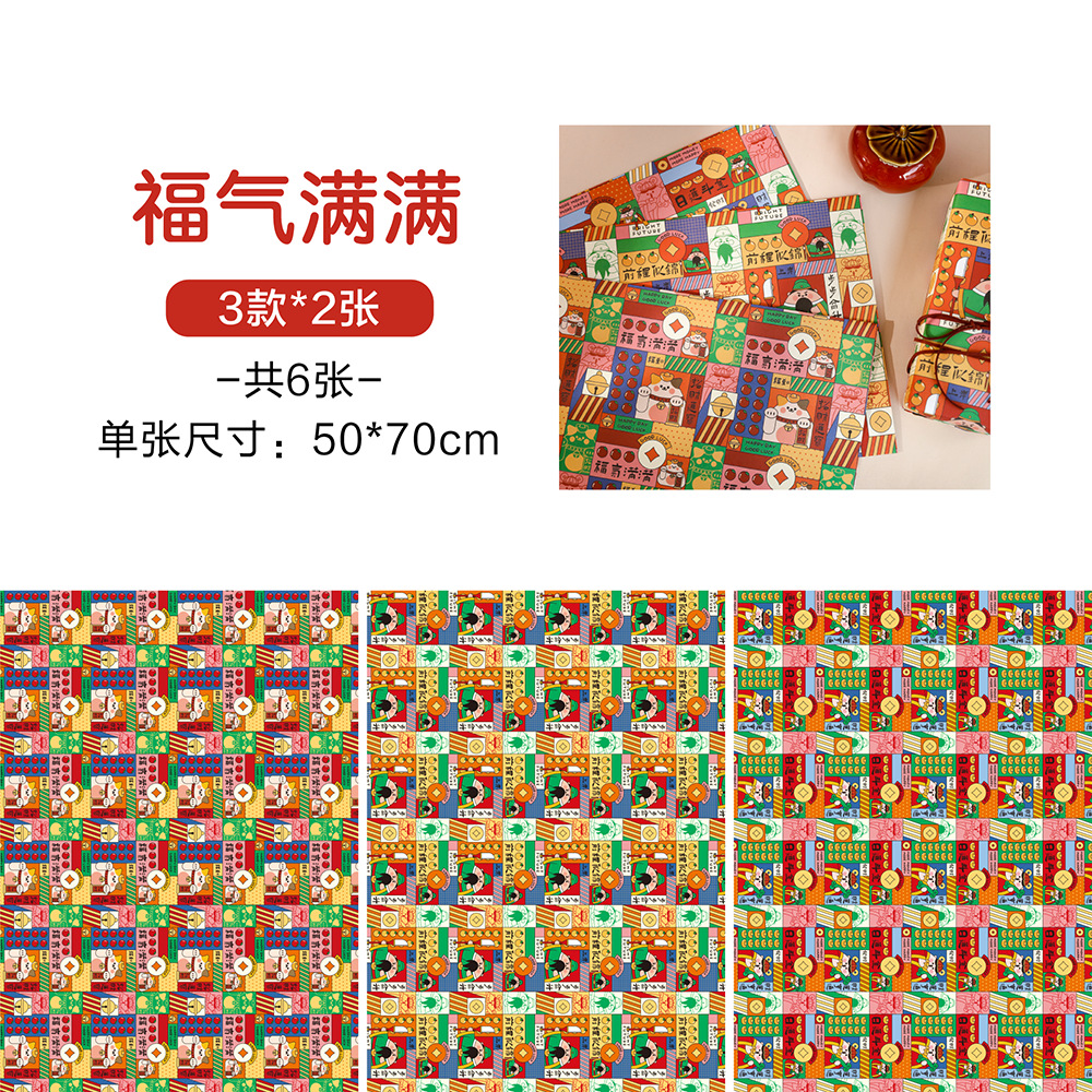 贝祥2024龙年新年春节6张包装纸礼物礼品纸ins风生日情人节花束纸