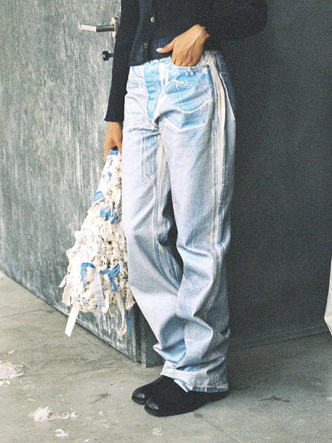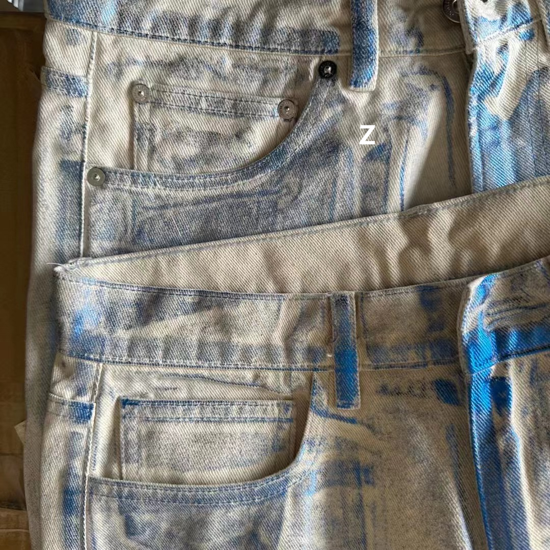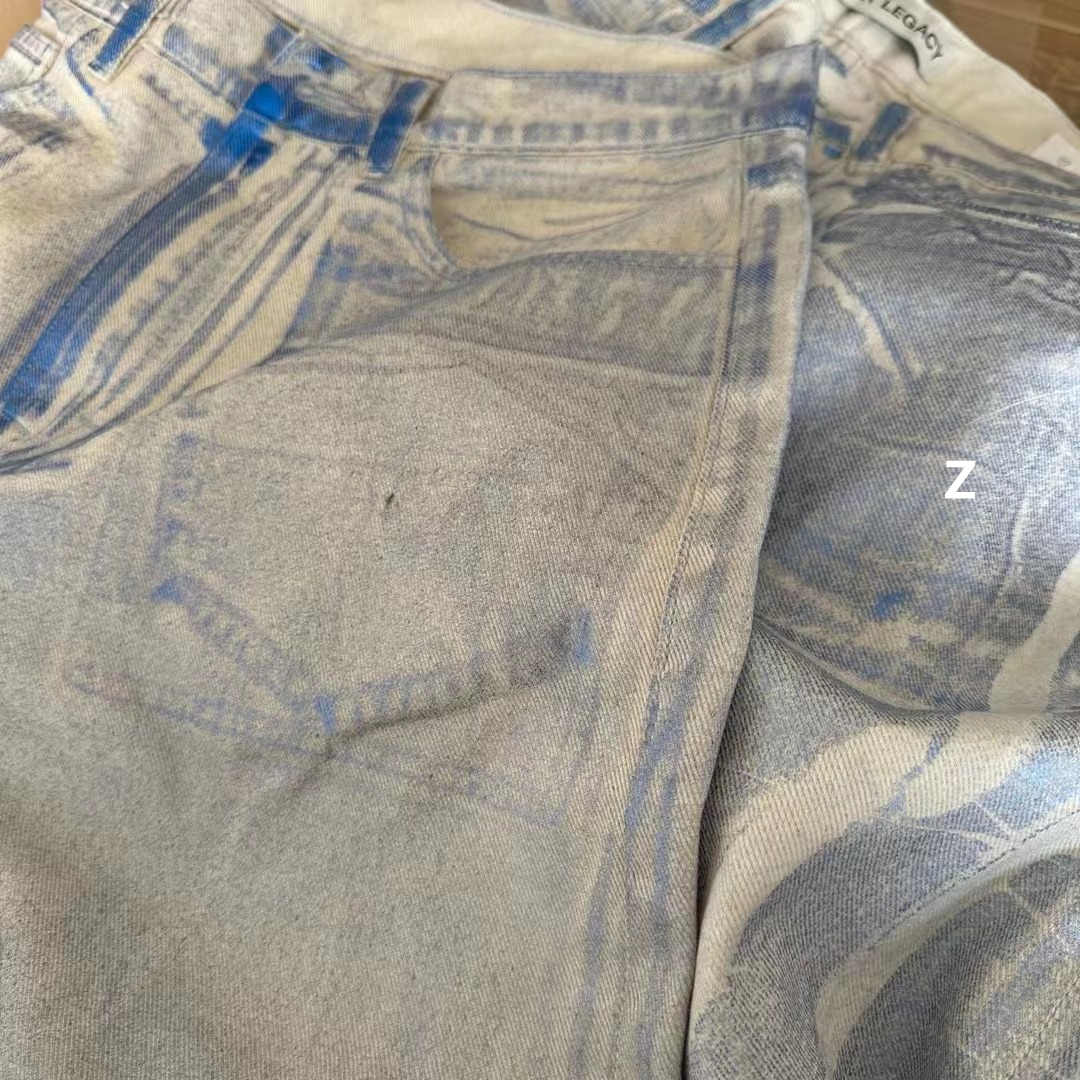 Our Legacy 藍色燙金印花做舊長褲 寬鬆小眾直筒水洗男女休閒褲