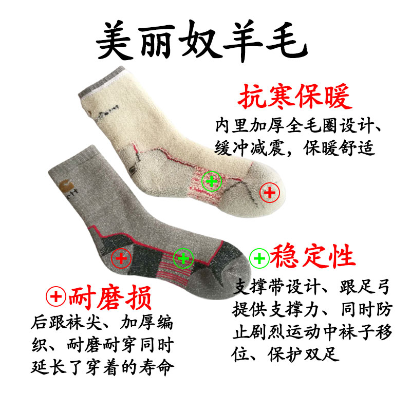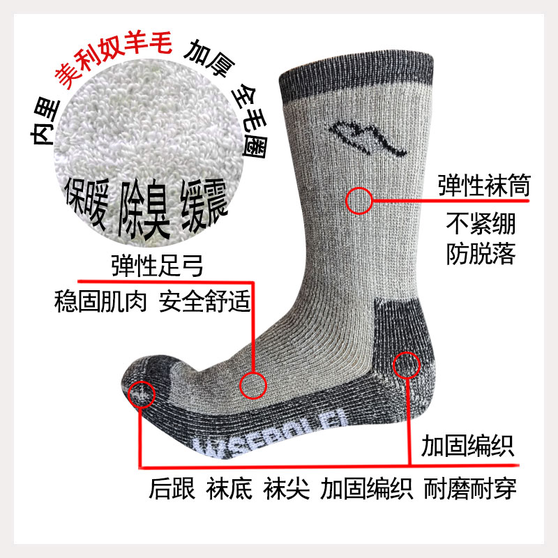 85%美麗奴羊毛加厚全毛圈登雪山男女戶外登山露營滑雪徒步襪子