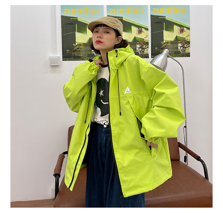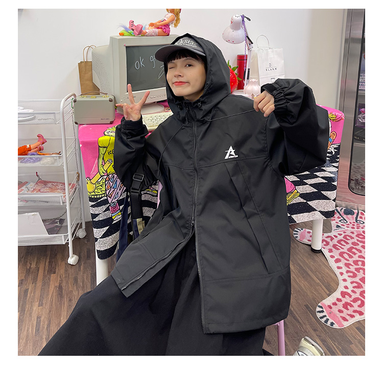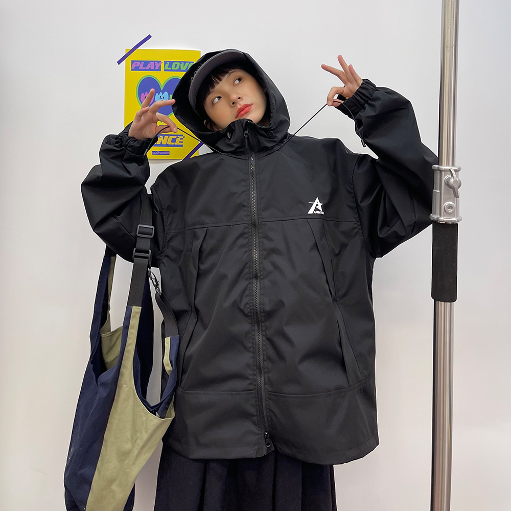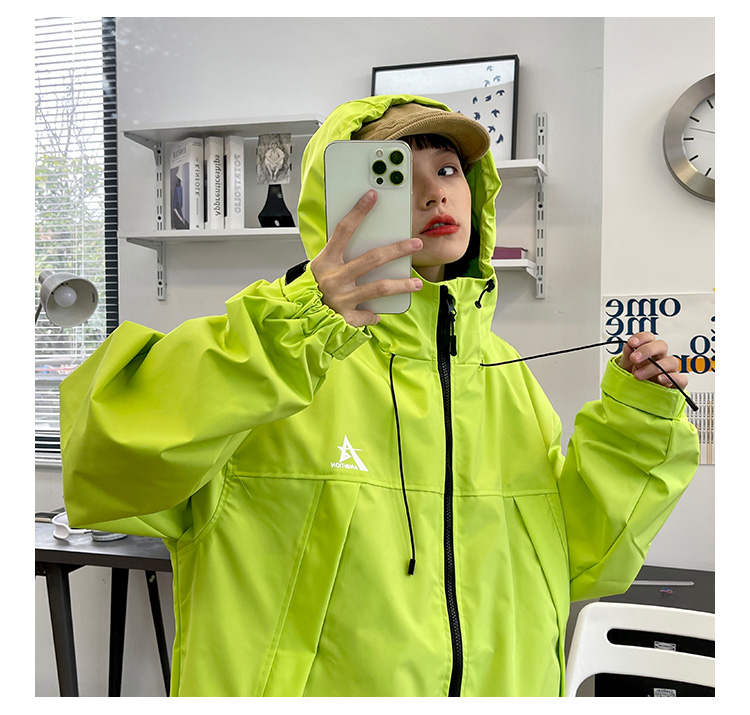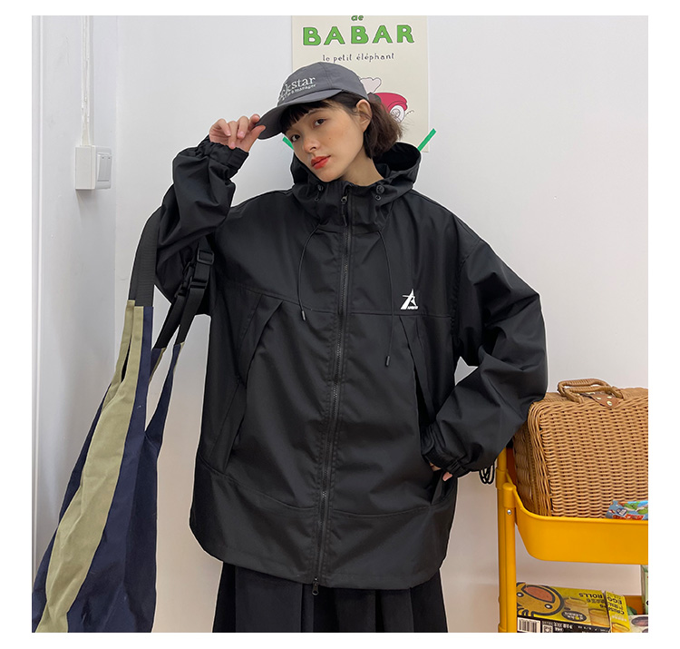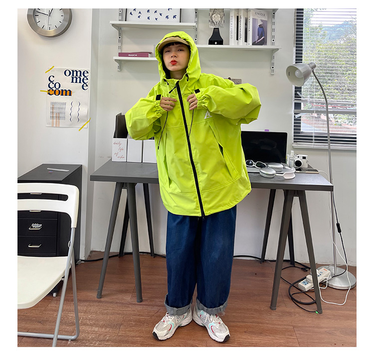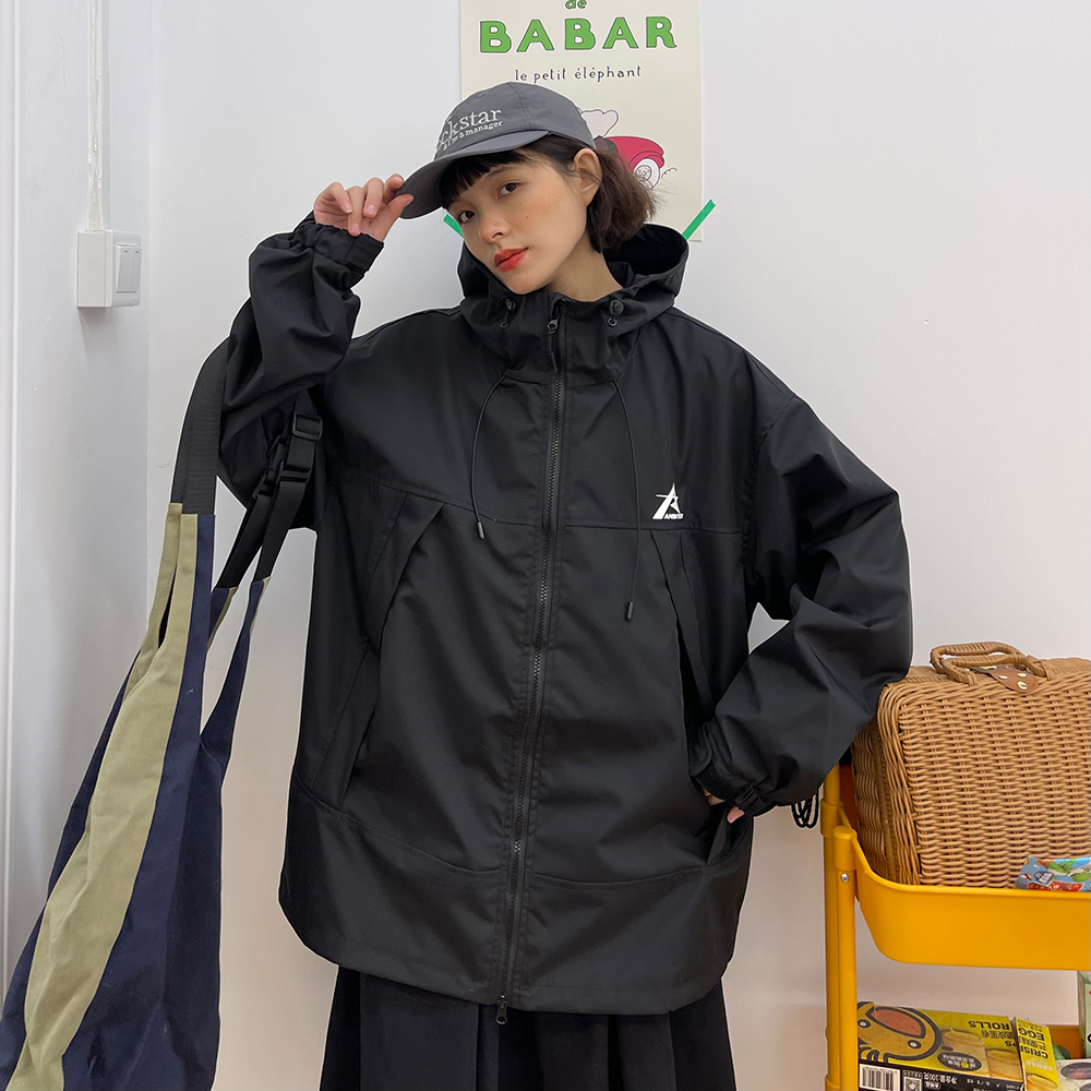怕麻煩連帽衝鋒衣外套女2023春季新款寬鬆bf美式潮牌百搭機能夾克
