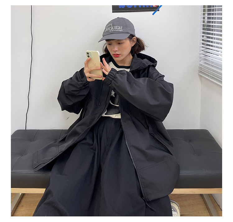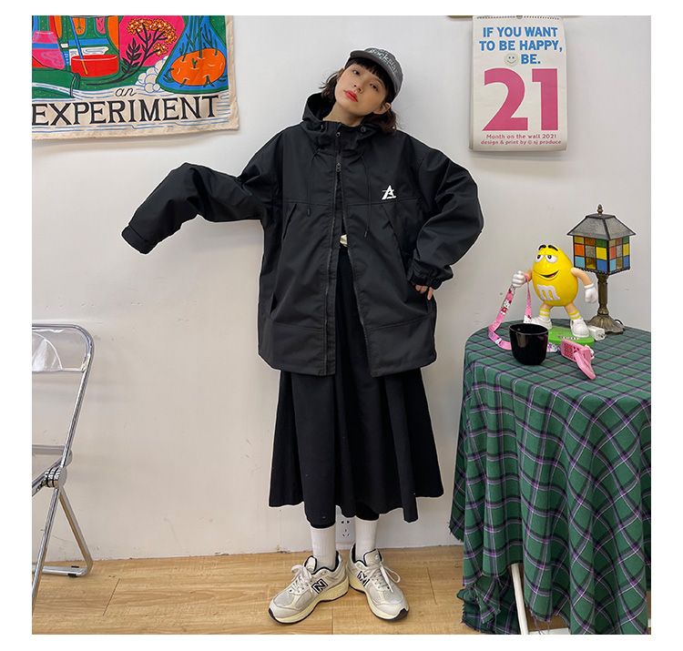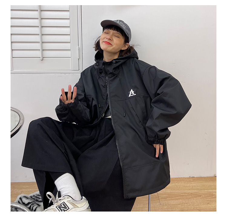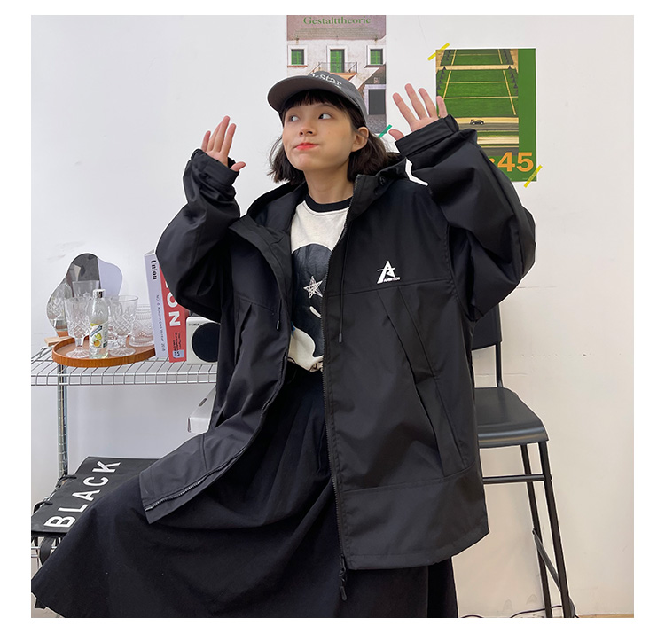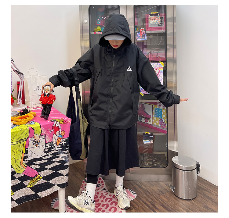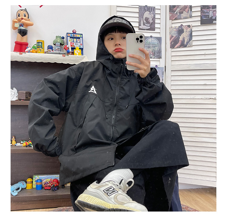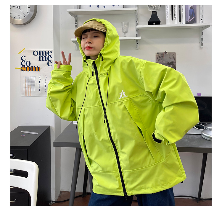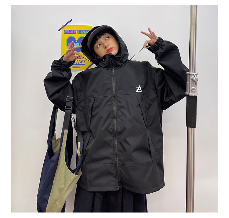 怕麻煩連帽衝鋒衣外套女2023春季新款寬鬆bf美式潮牌百搭機能夾克