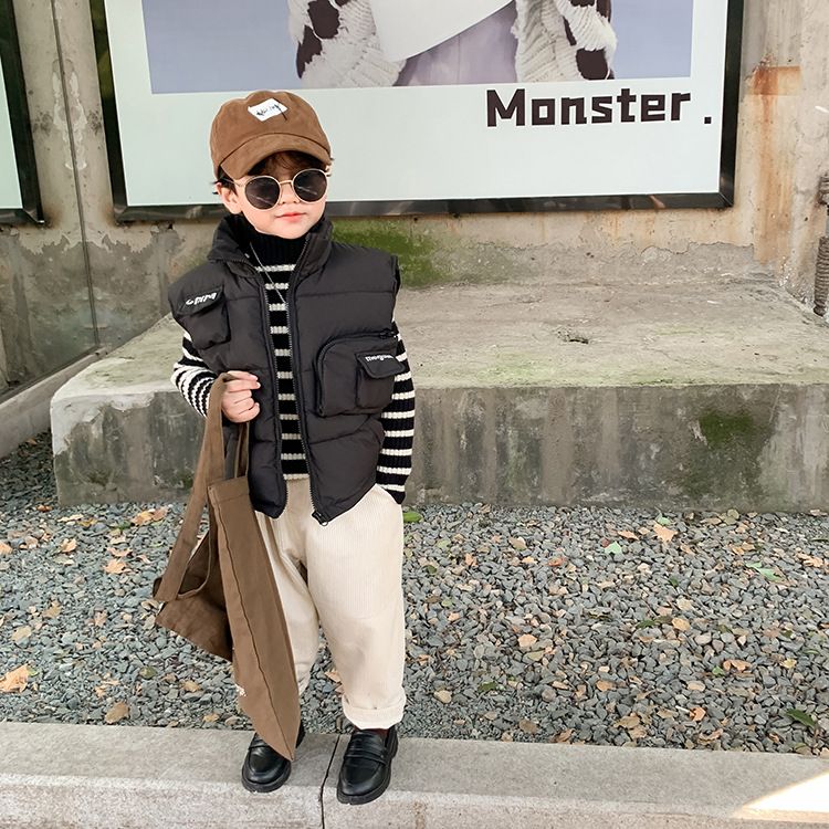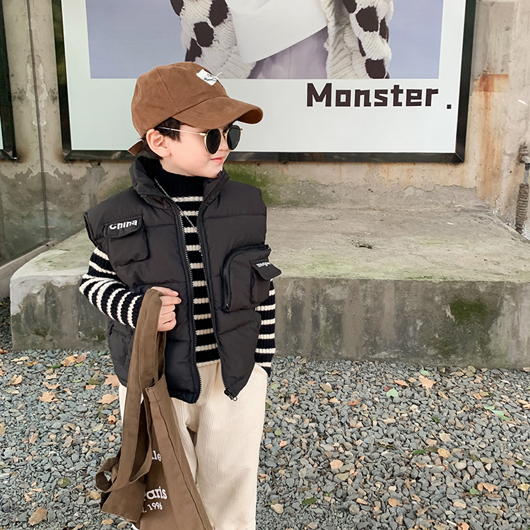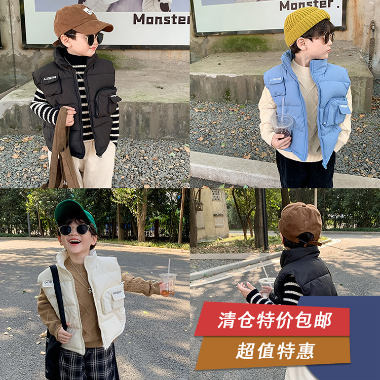 【清仓特惠】儿童加厚棉马甲潮装男女童宝宝帅气无袖立领外套