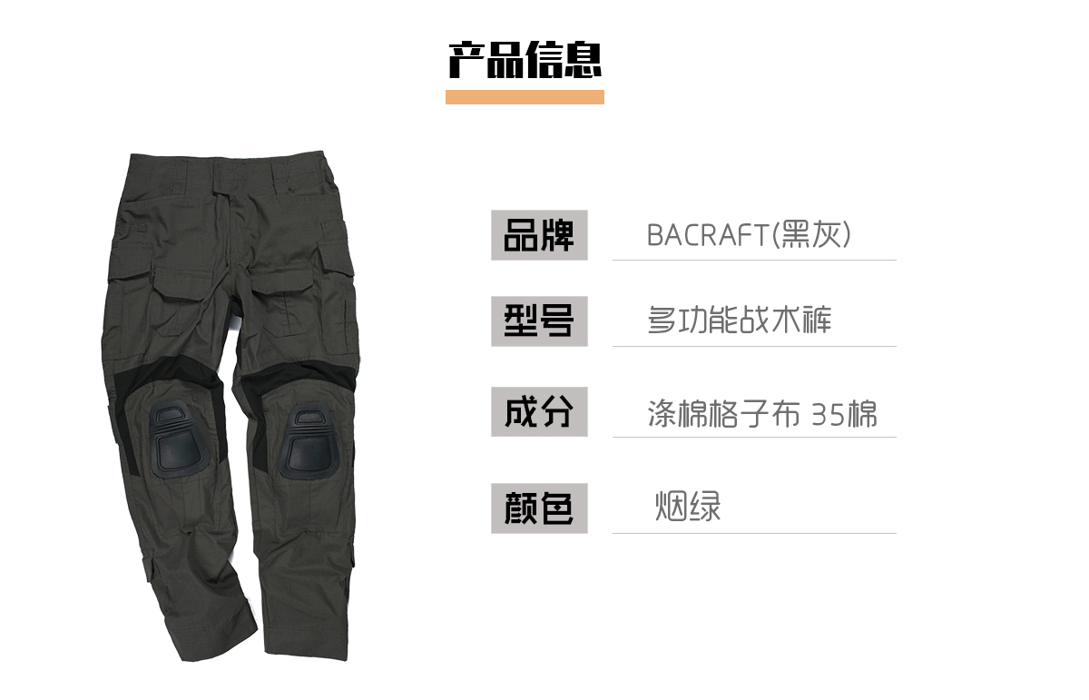 [TRN]BACRAFT黑灰工業強襲煙綠碳灰G3多功能戰術褲作訓褲男士戶外