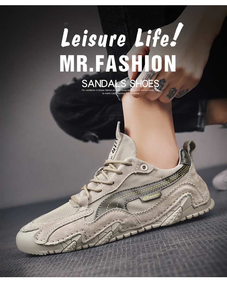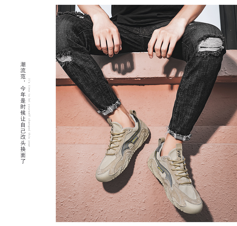 男鞋2023新款夏季透氣網面運動休閒男士戶外旅遊工作勞保登山潮鞋