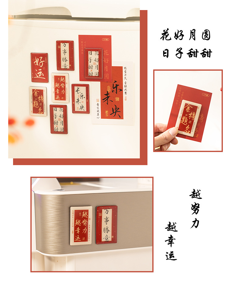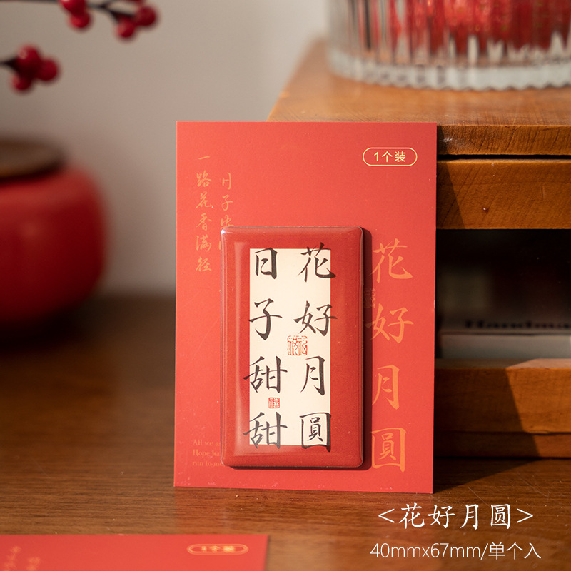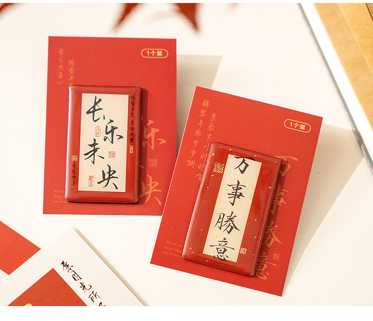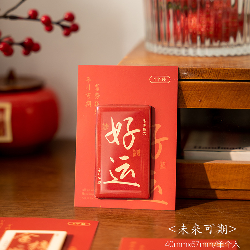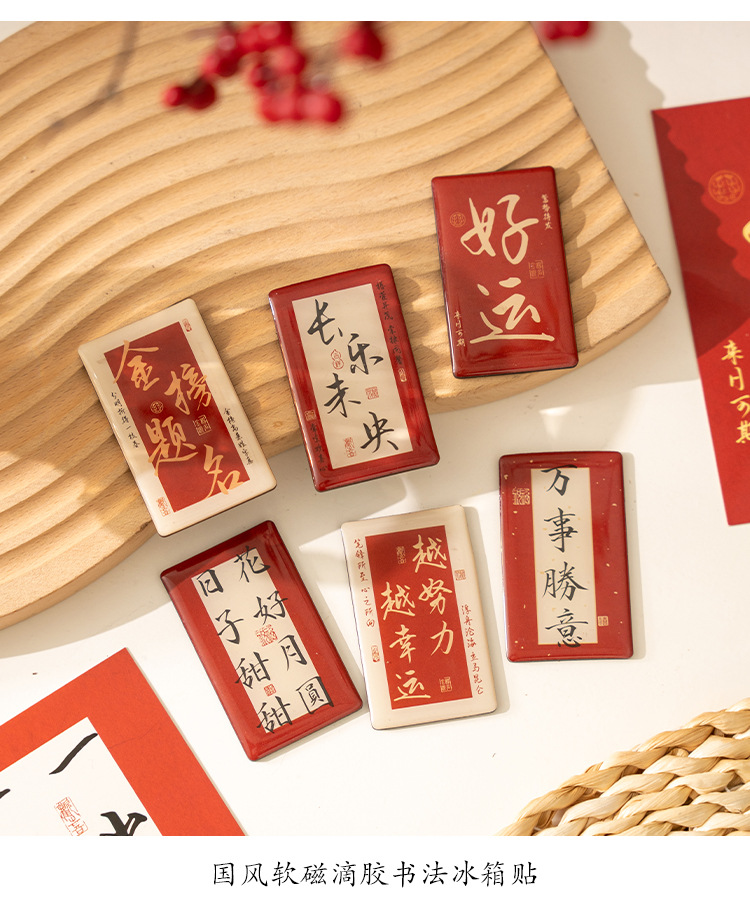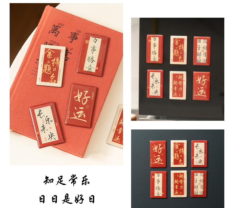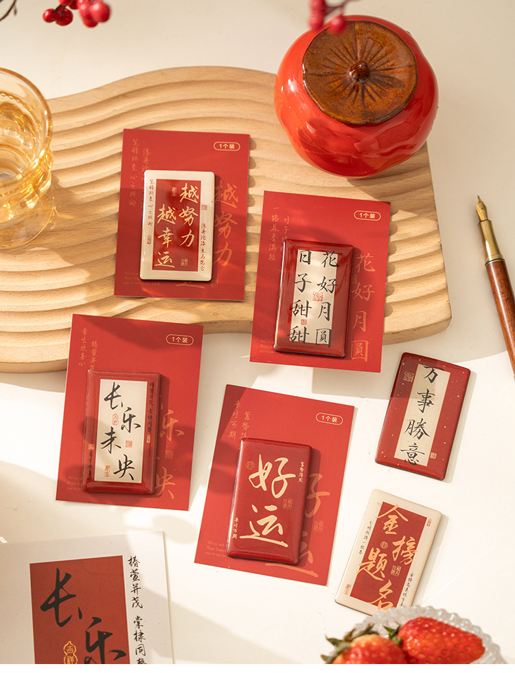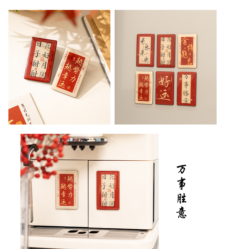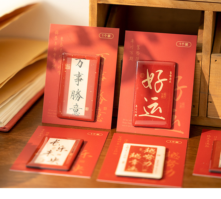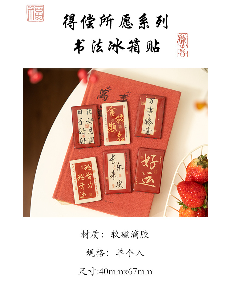 早沫磁吸冰箱贴 得偿所愿系列 创意新年中国风书法喜庆磁贴 6款