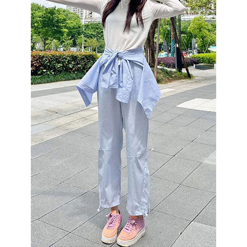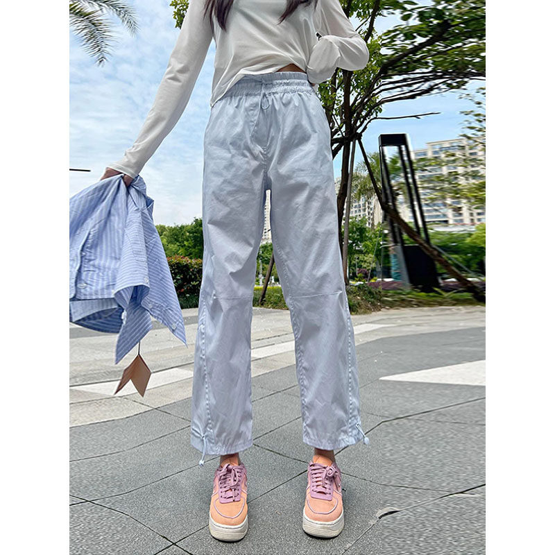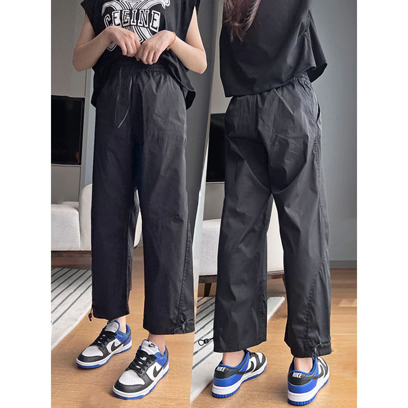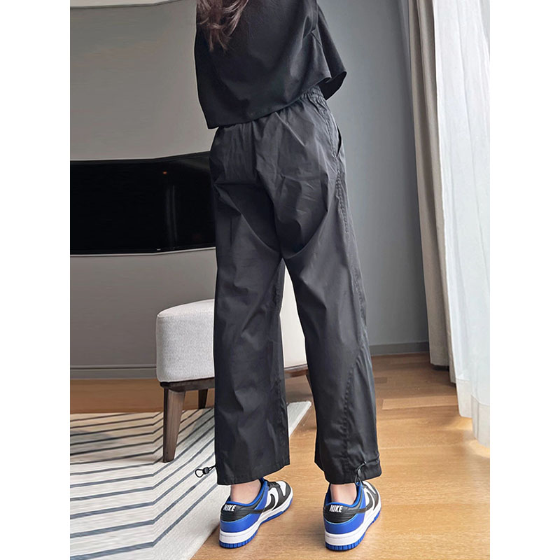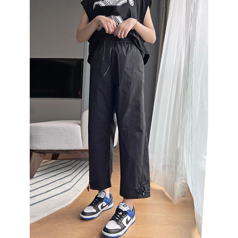 vibe風黑色工裝褲女2023新款夏季薄休閒高腰寬鬆束腳小個子九分褲