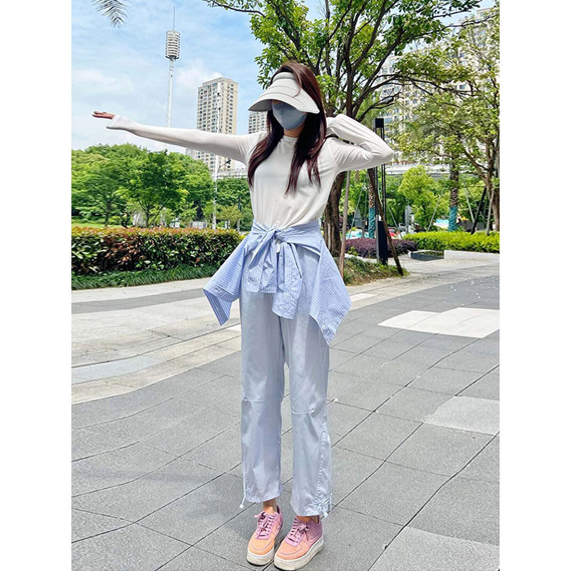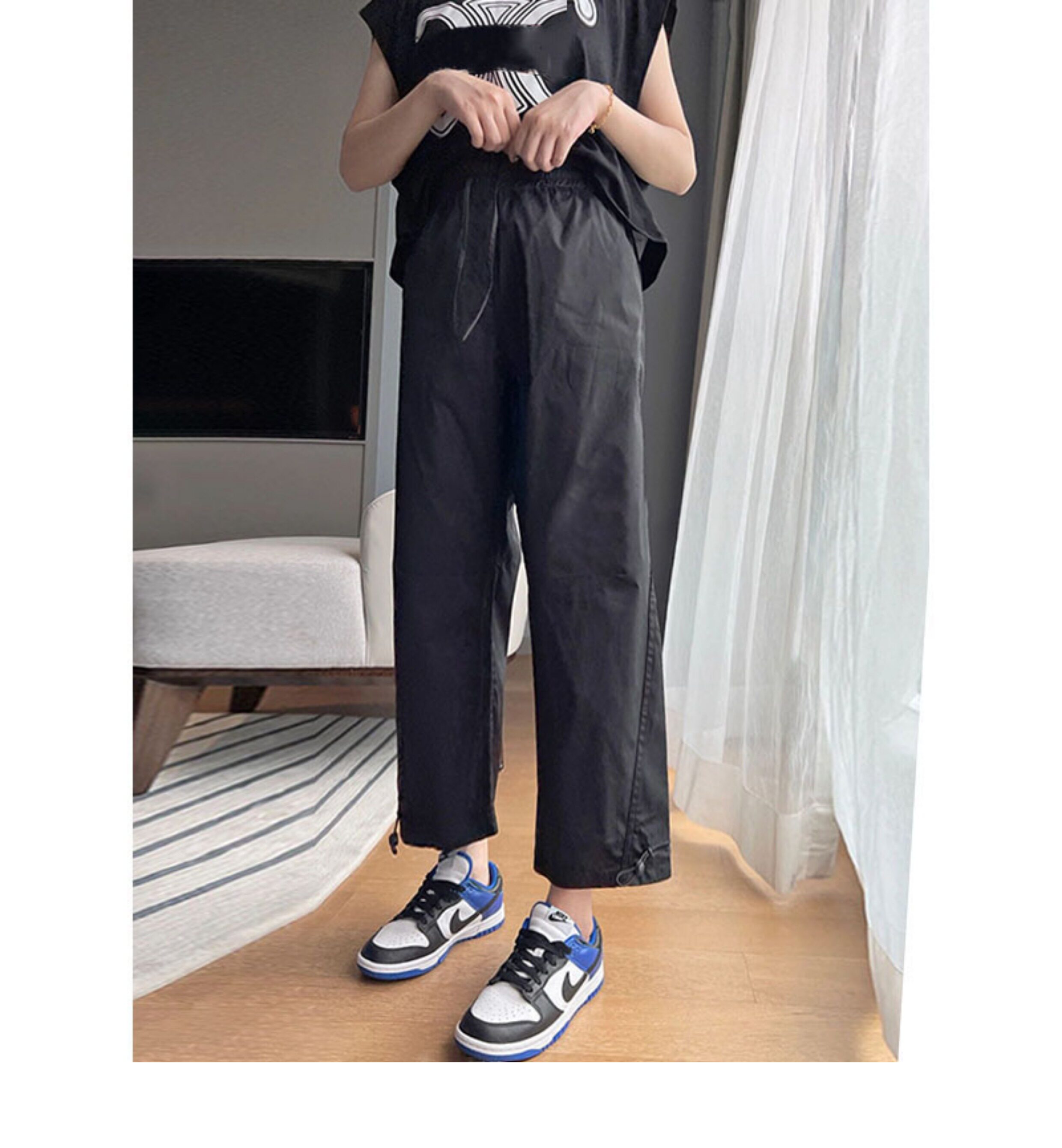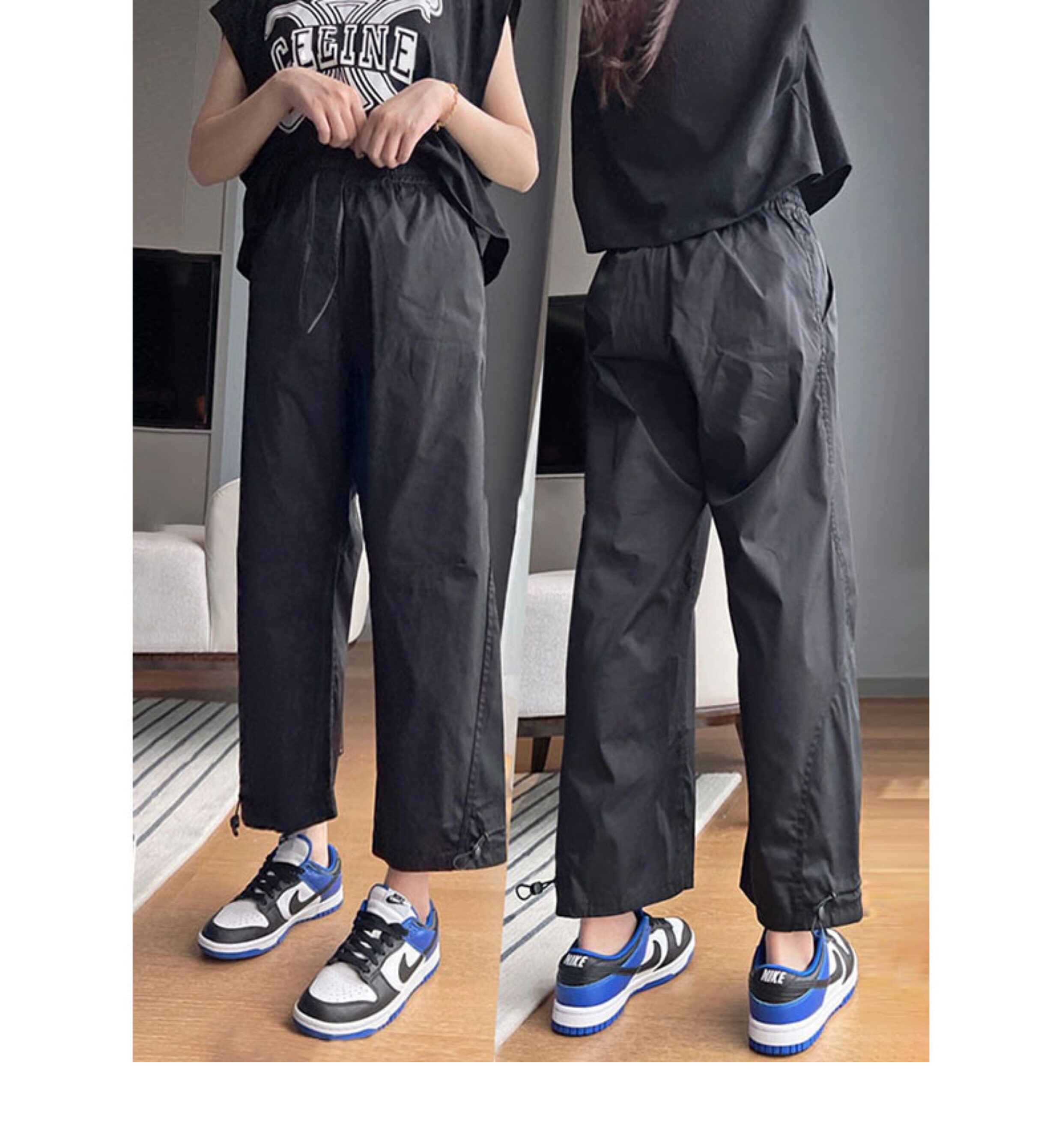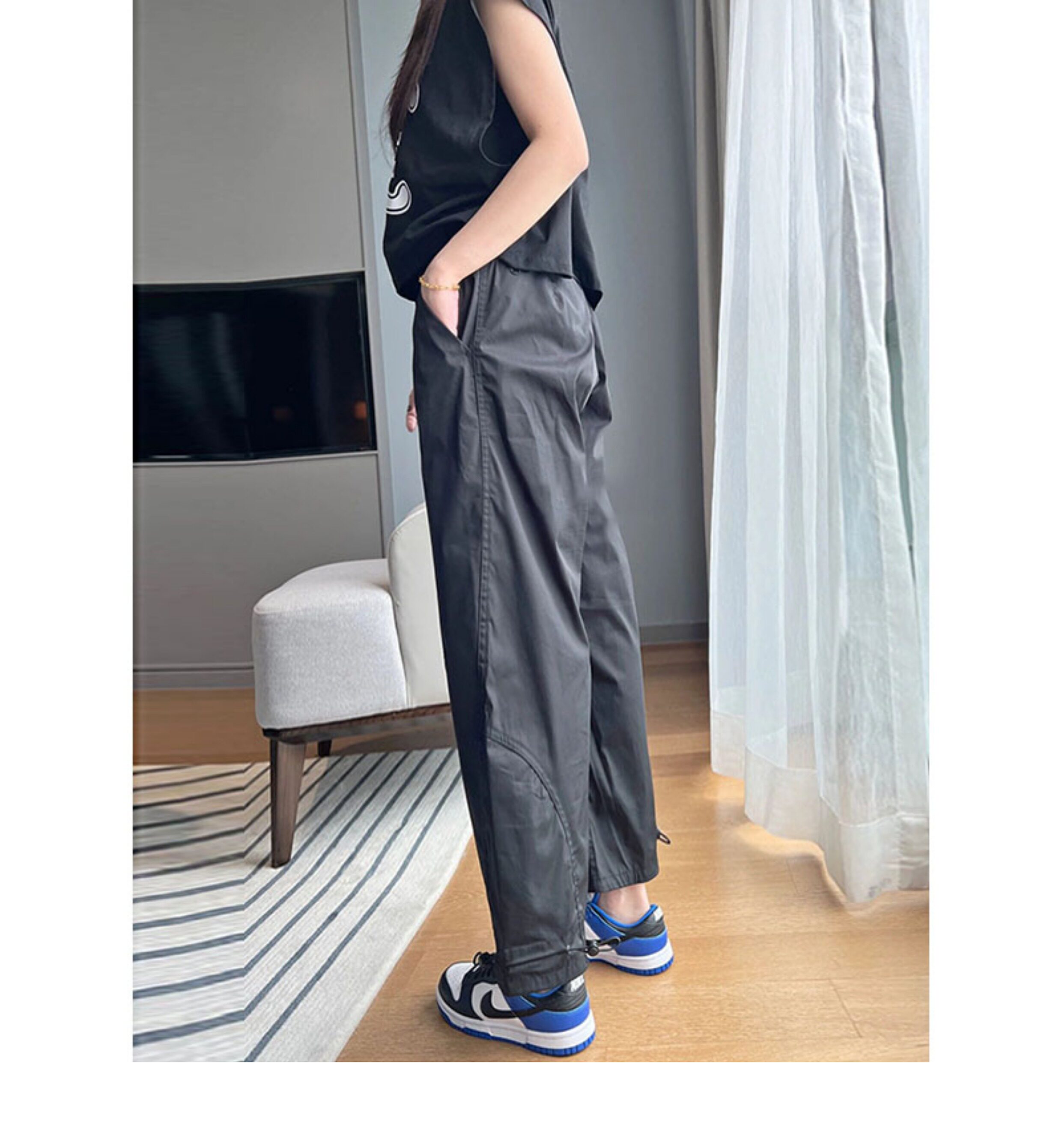 vibe風黑色工裝褲女2023新款夏季薄休閒高腰寬鬆束腳小個子九分褲
