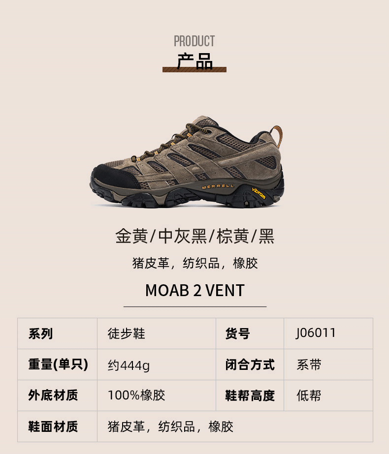 MERRELL邁樂戶外徒步鞋男女MOAB2經典低幫防滑耐磨減震專業登山鞋