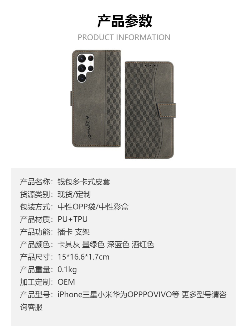 工厂定制适用三星S24ultra手机壳S23插卡皮套A55翻盖格菱纹case
