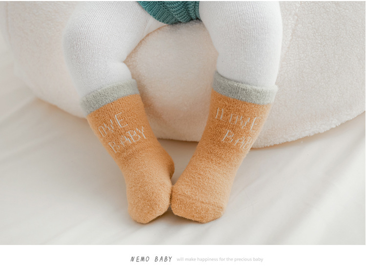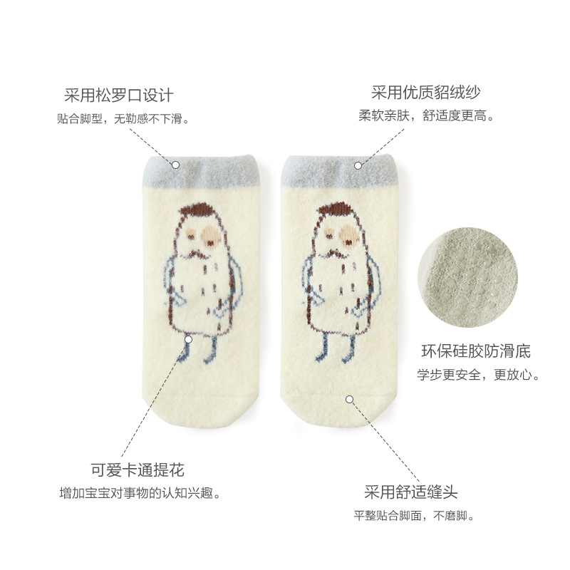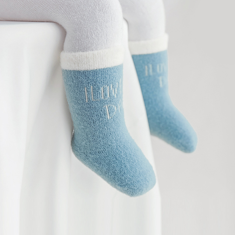 20年新款宝宝袜子秋冬季加厚保暖仿貂绒新生婴儿中通袜卡通儿童袜