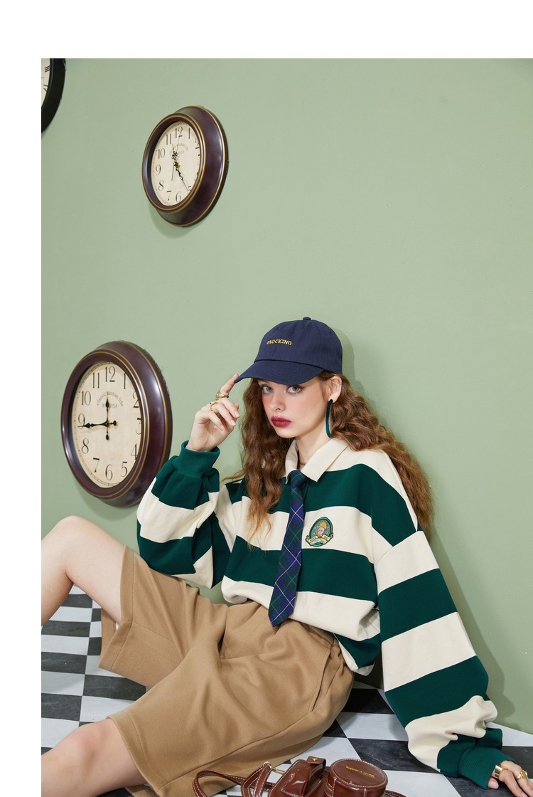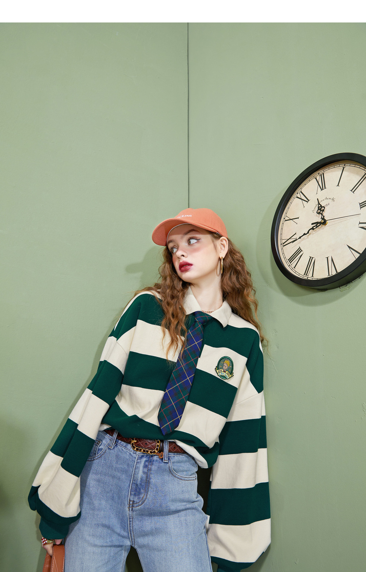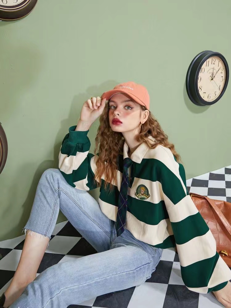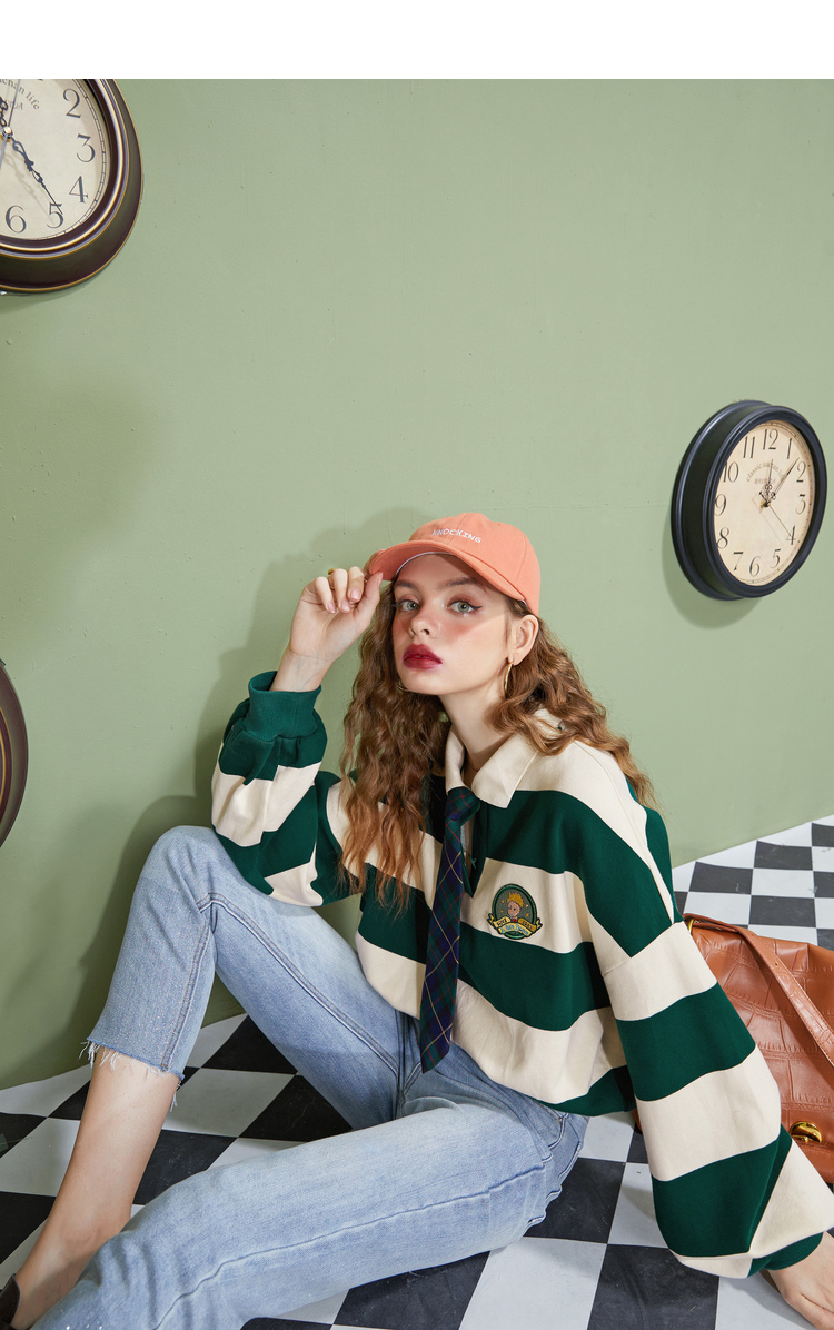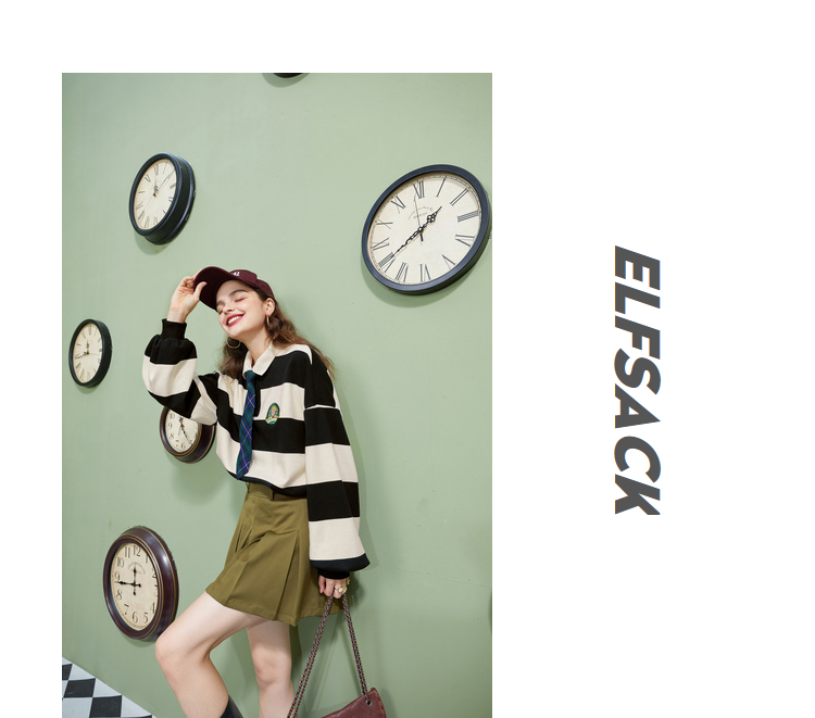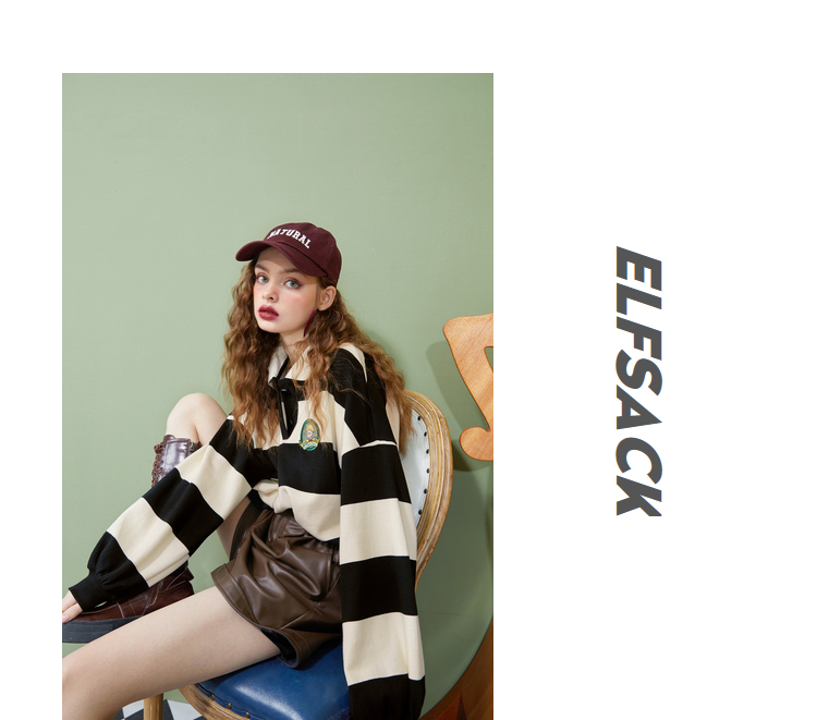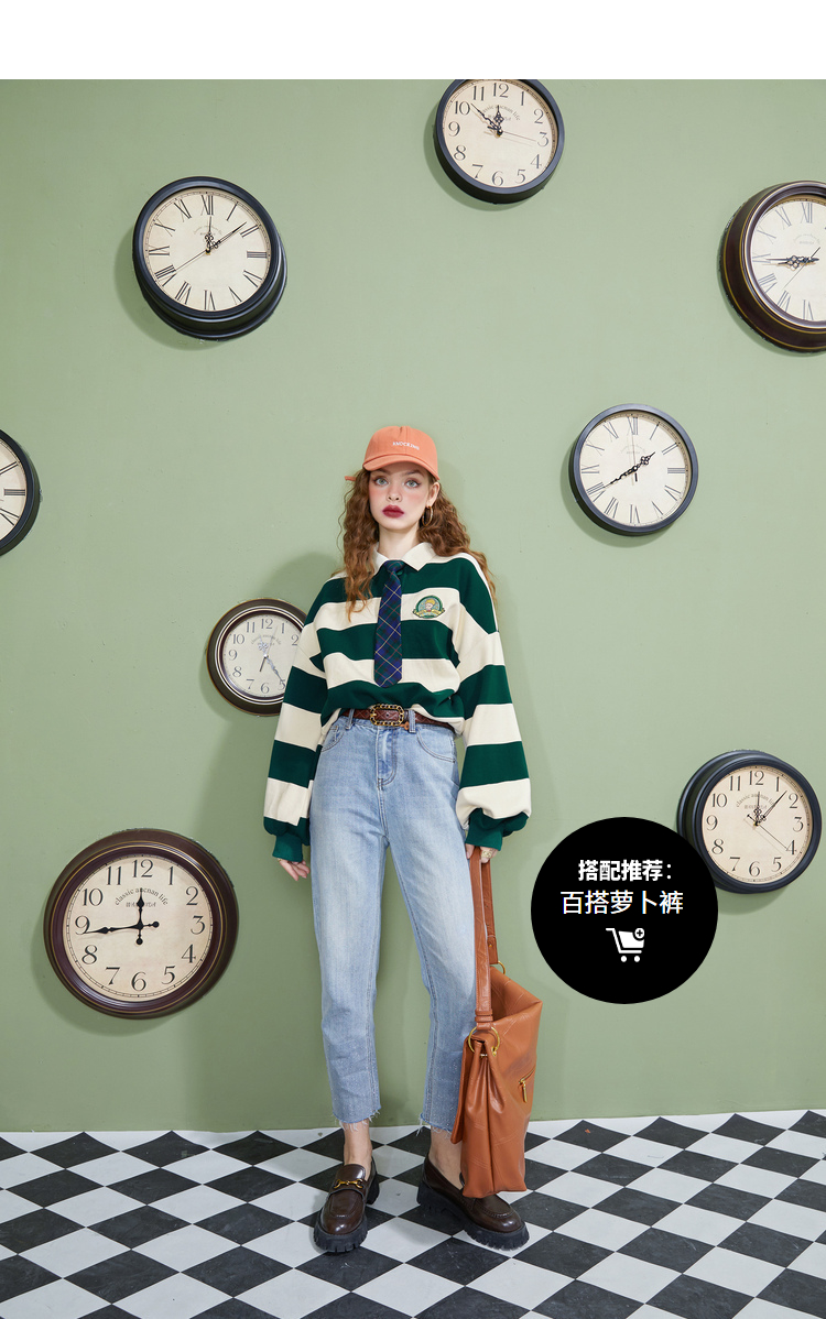 【小王子聯名】妖精的學院風條紋短版衛衣女2023秋季新款韓版上衣