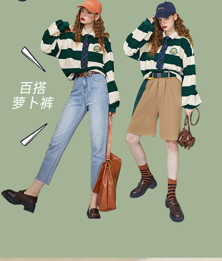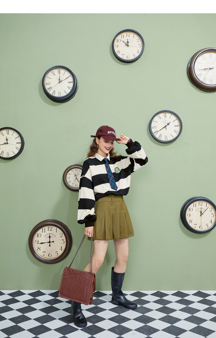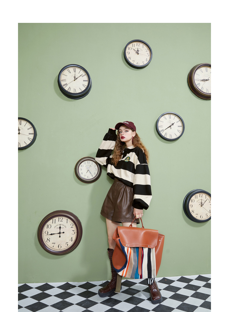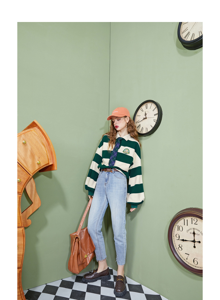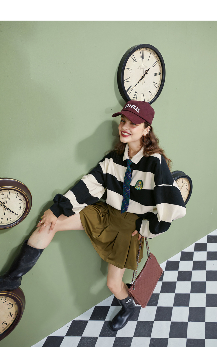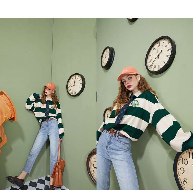 【小王子聯名】妖精的學院風條紋短版衛衣女2023秋季新款韓版上衣