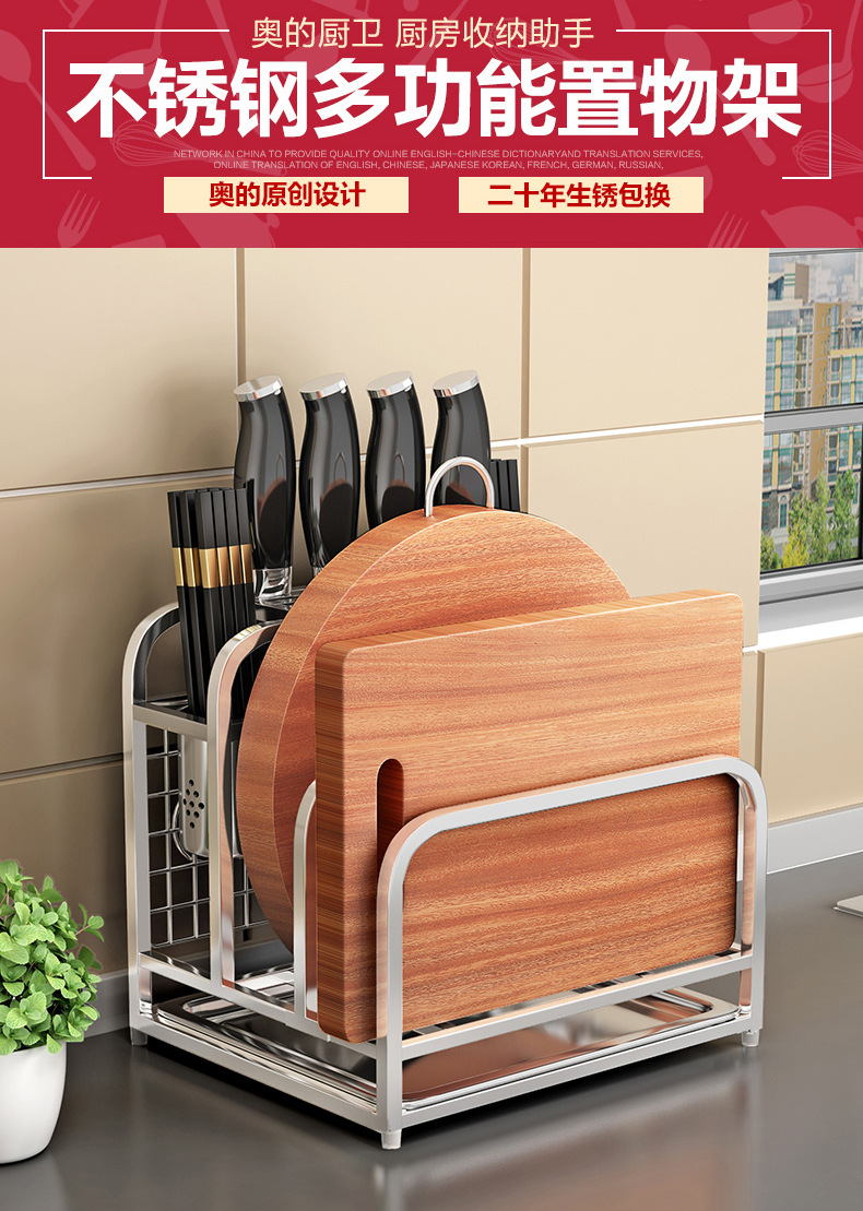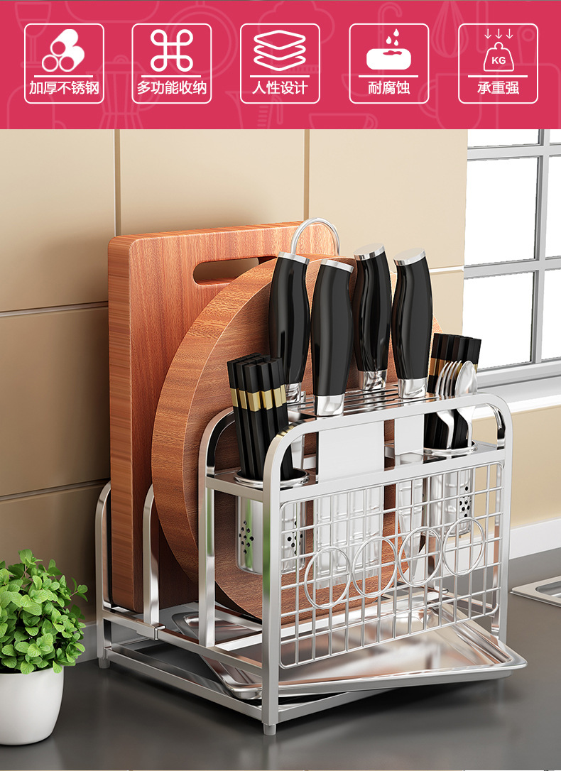 奥的不锈钢刀架厨房用品砧板菜刀架菜板刀具架刀座置物架一件代发