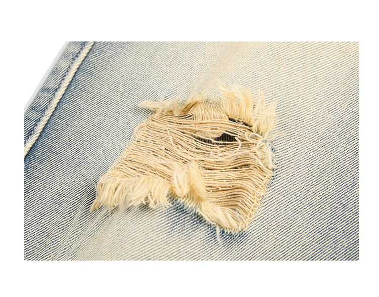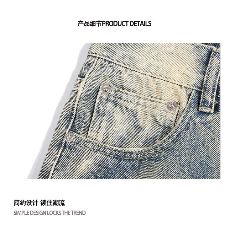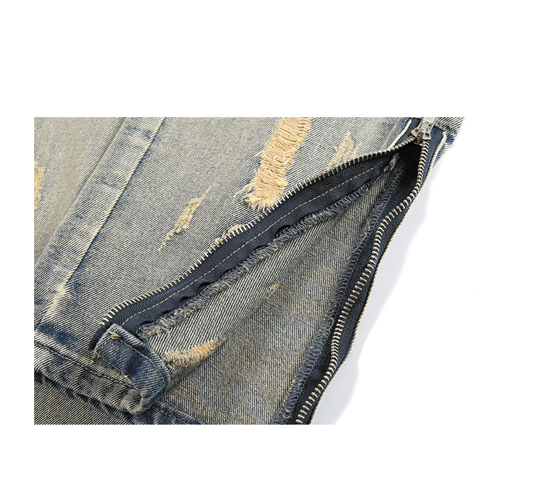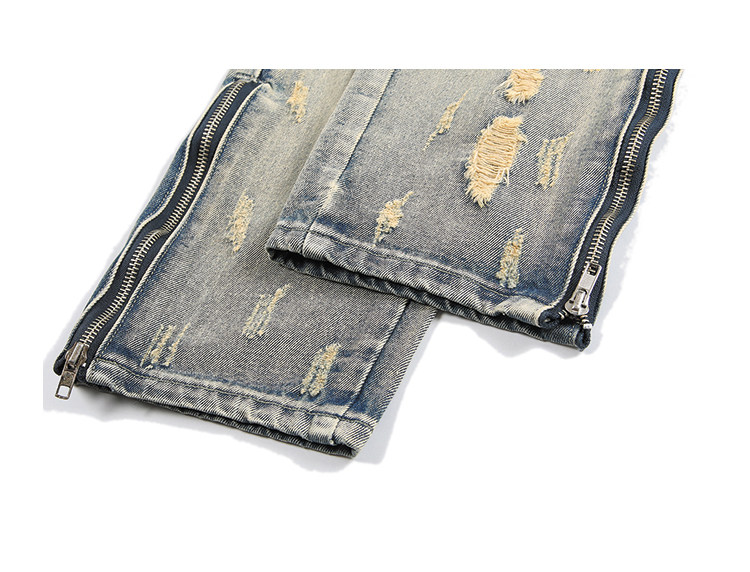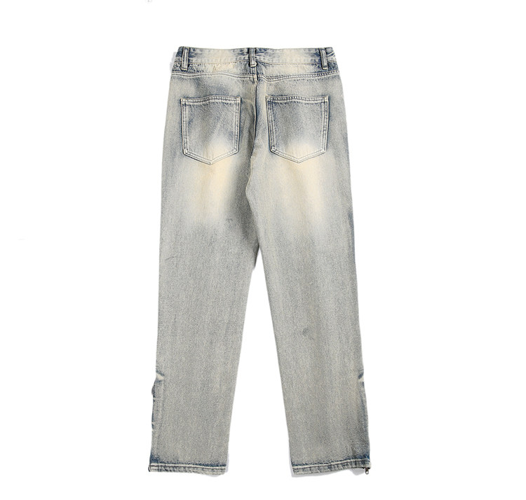 夏季新款牛仔褲男直筒寬鬆做舊復古水洗褲腳拉鍊fog高街破洞褲子