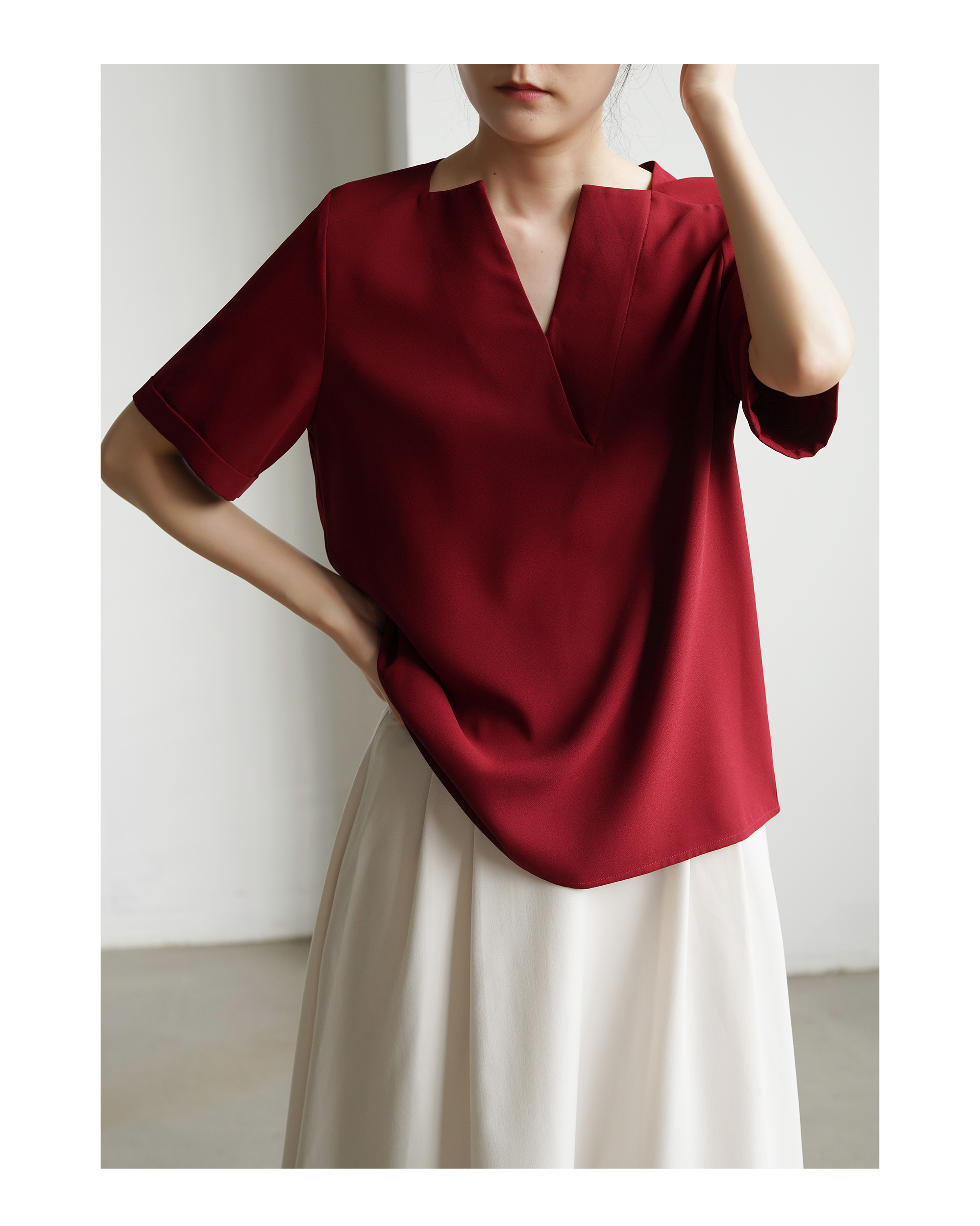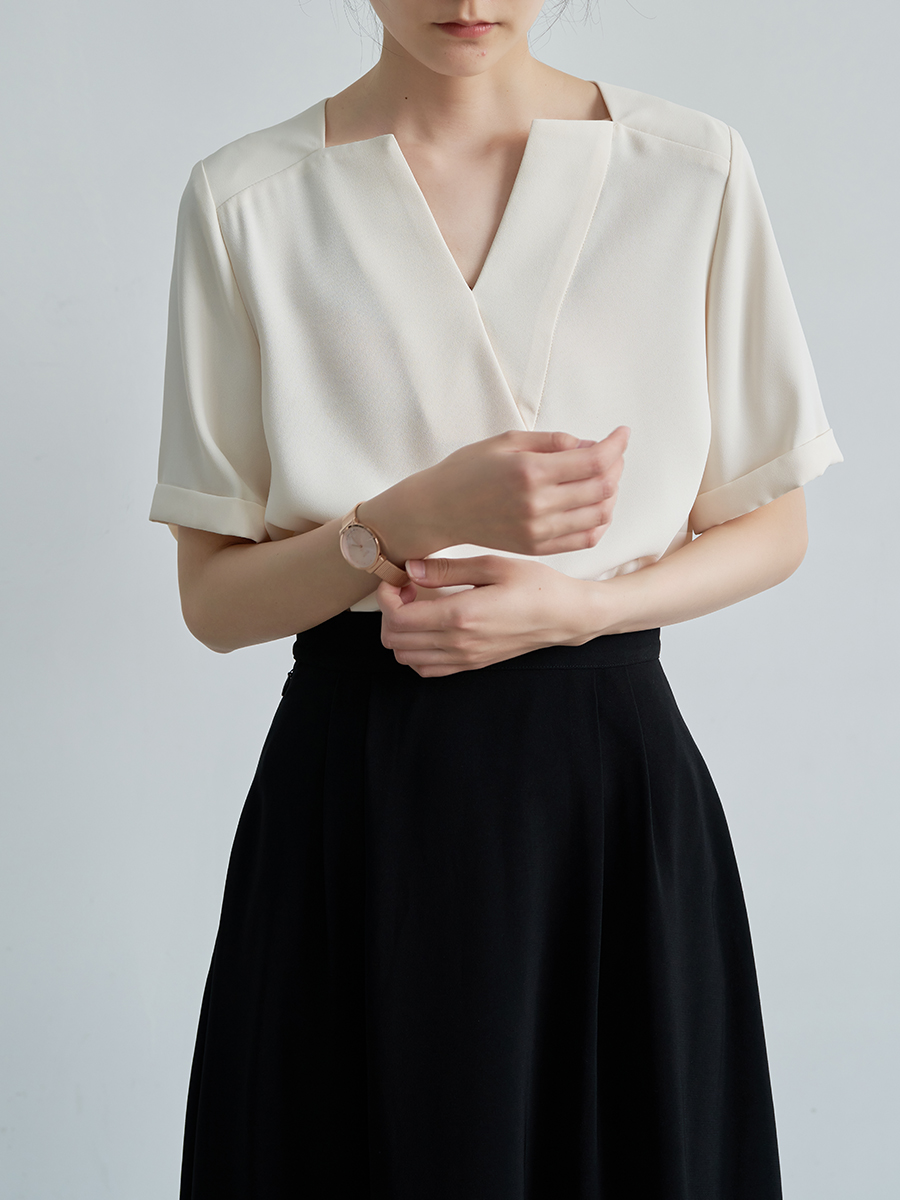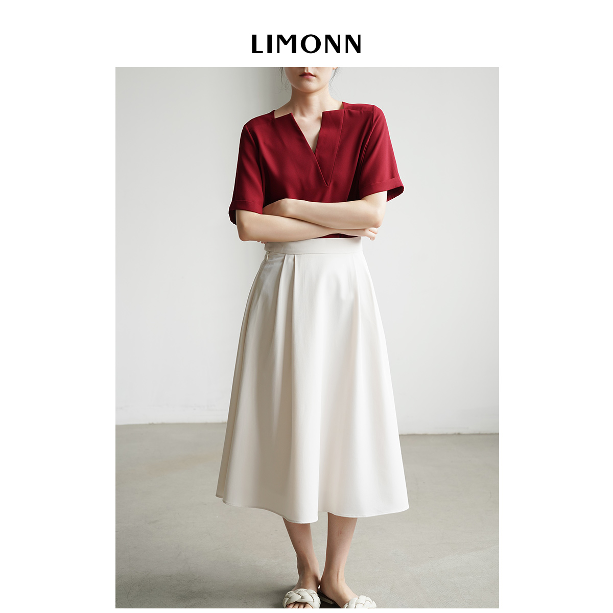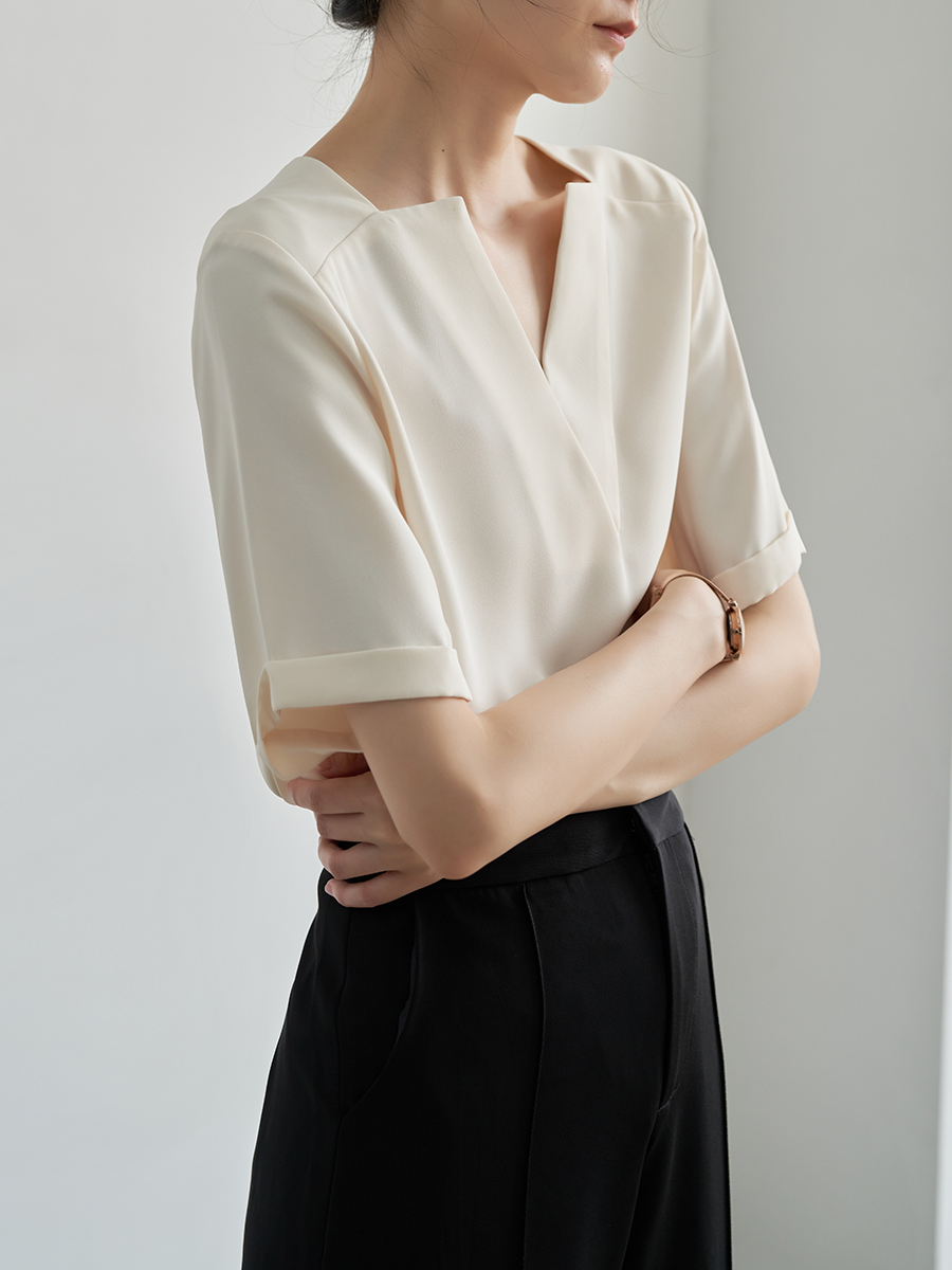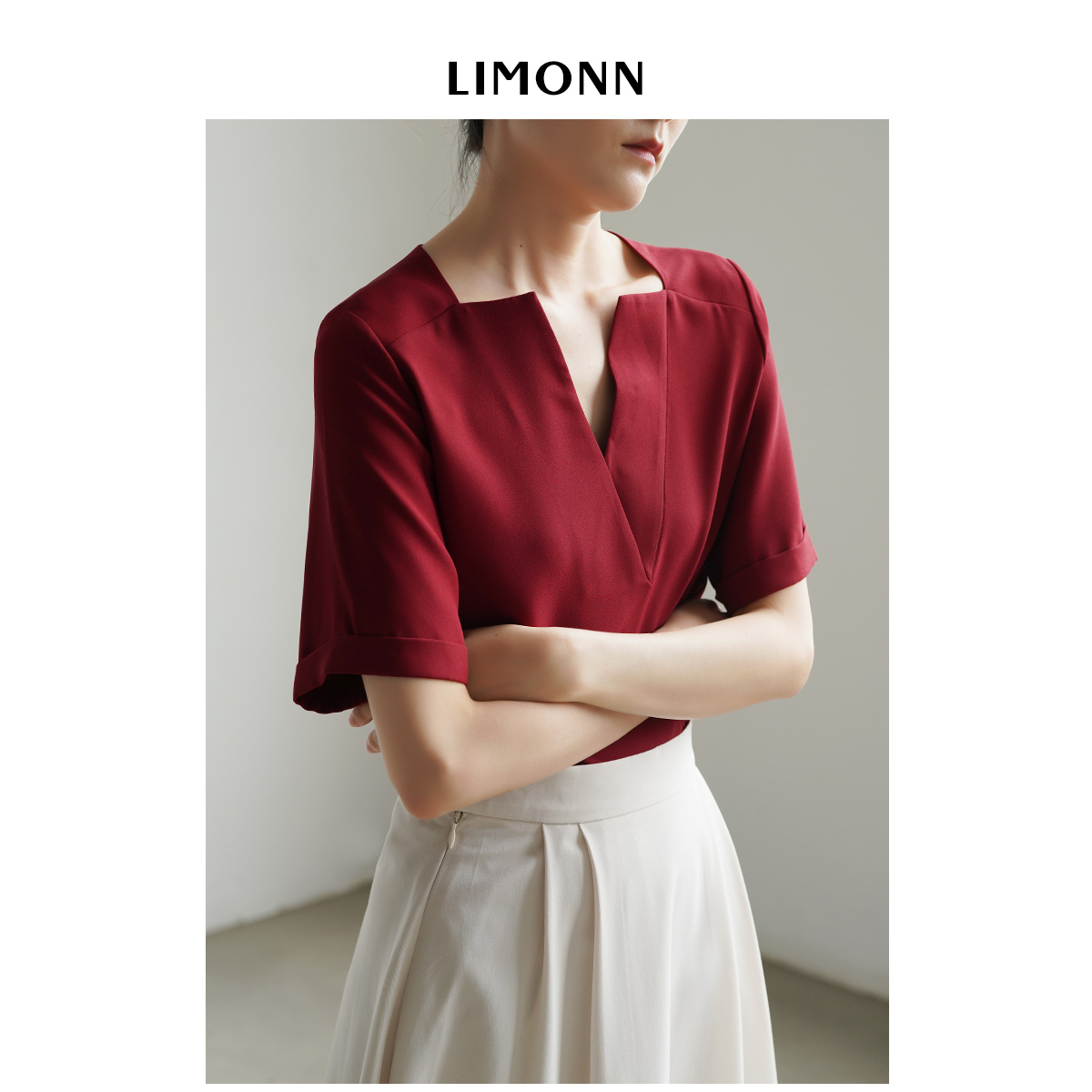 LIMONN 法式復古簡約通勤V領短袖襯衫女設計感上衣極簡職業上衣