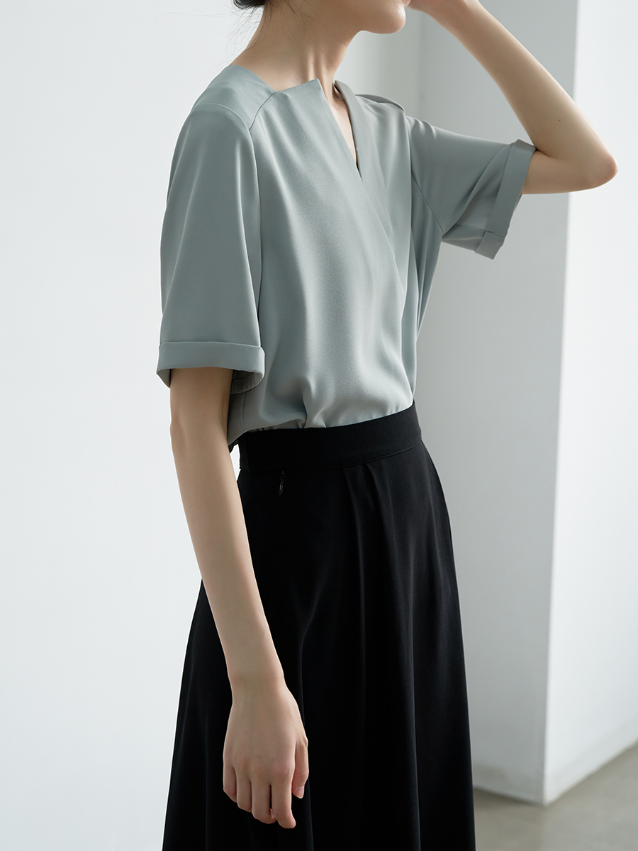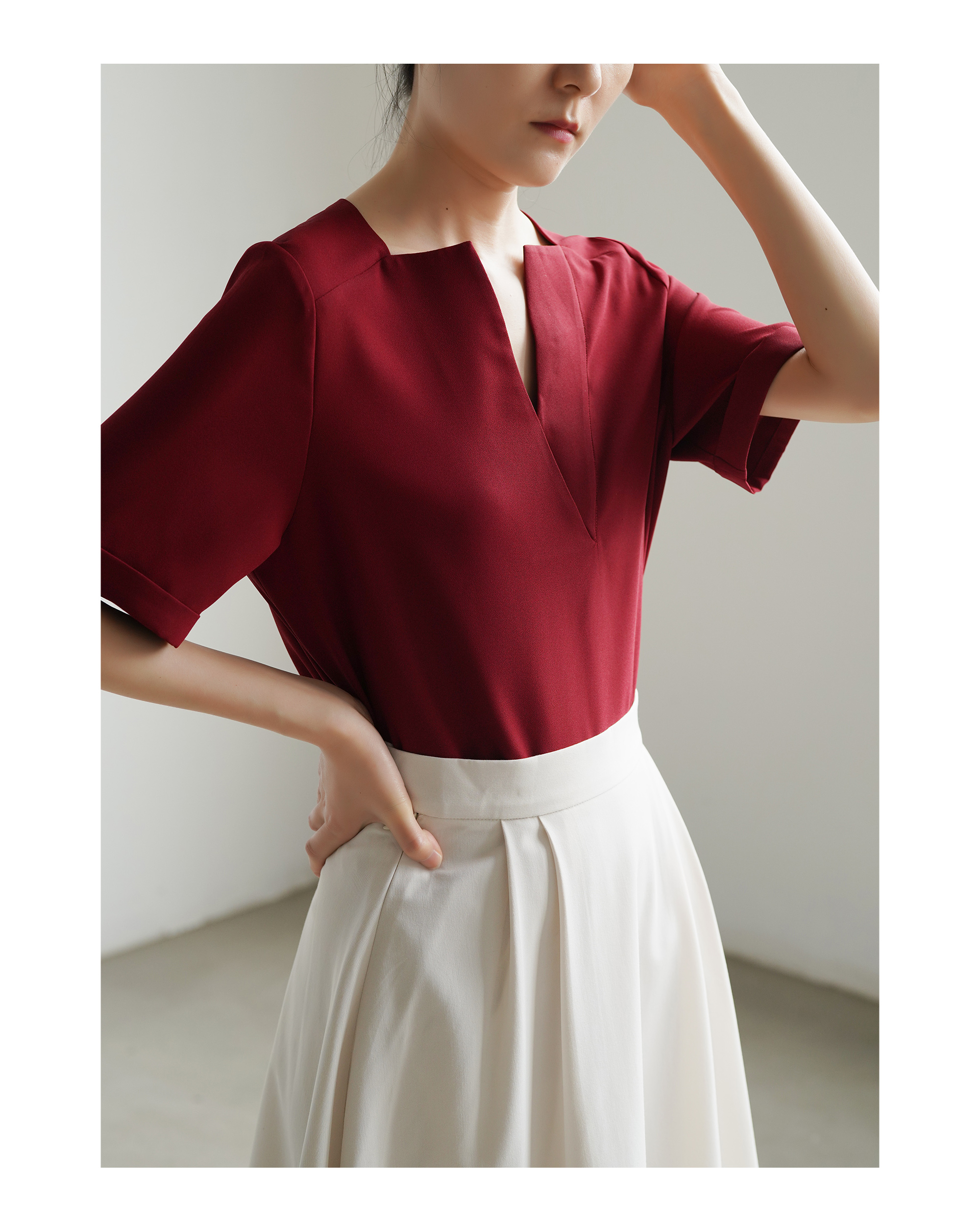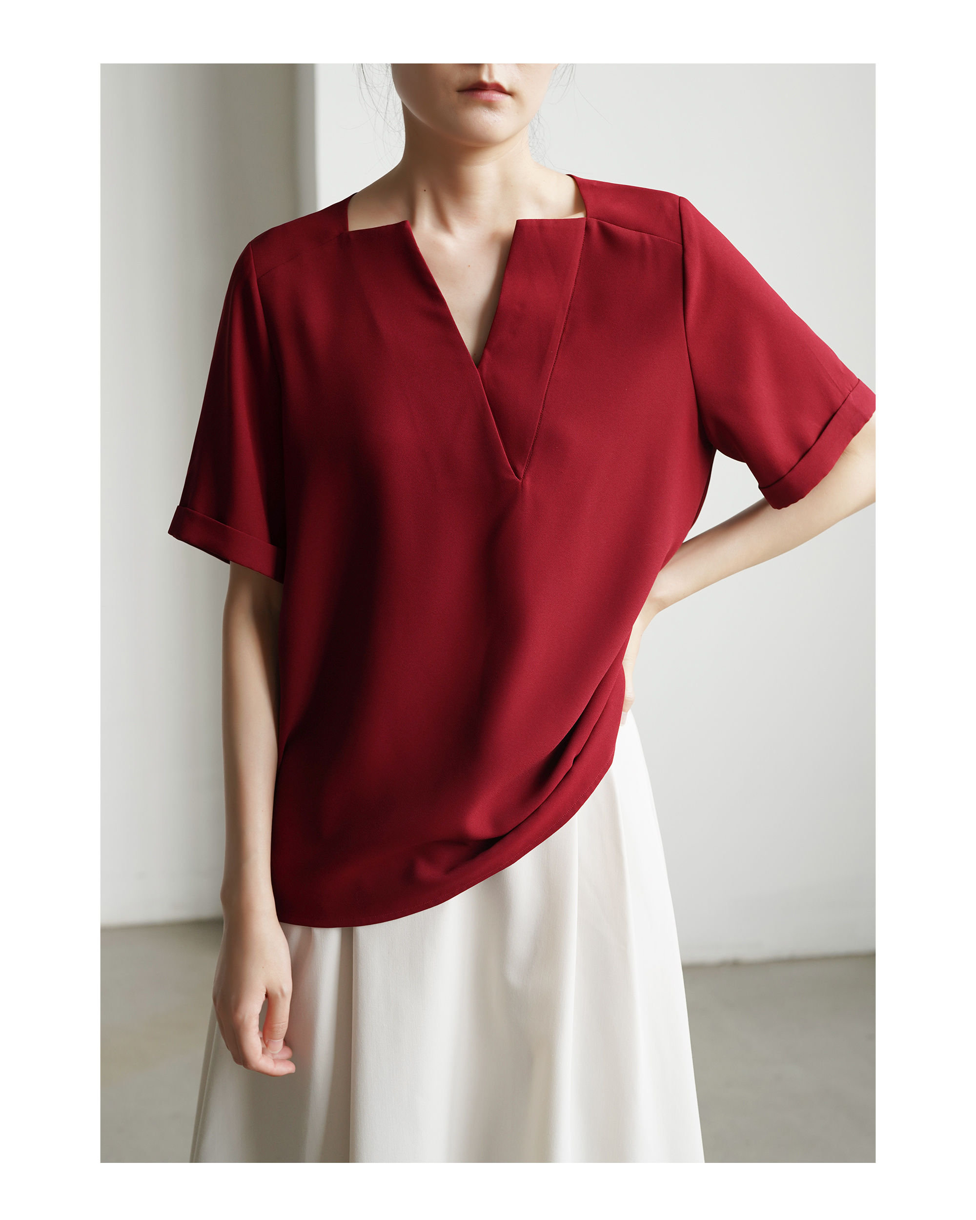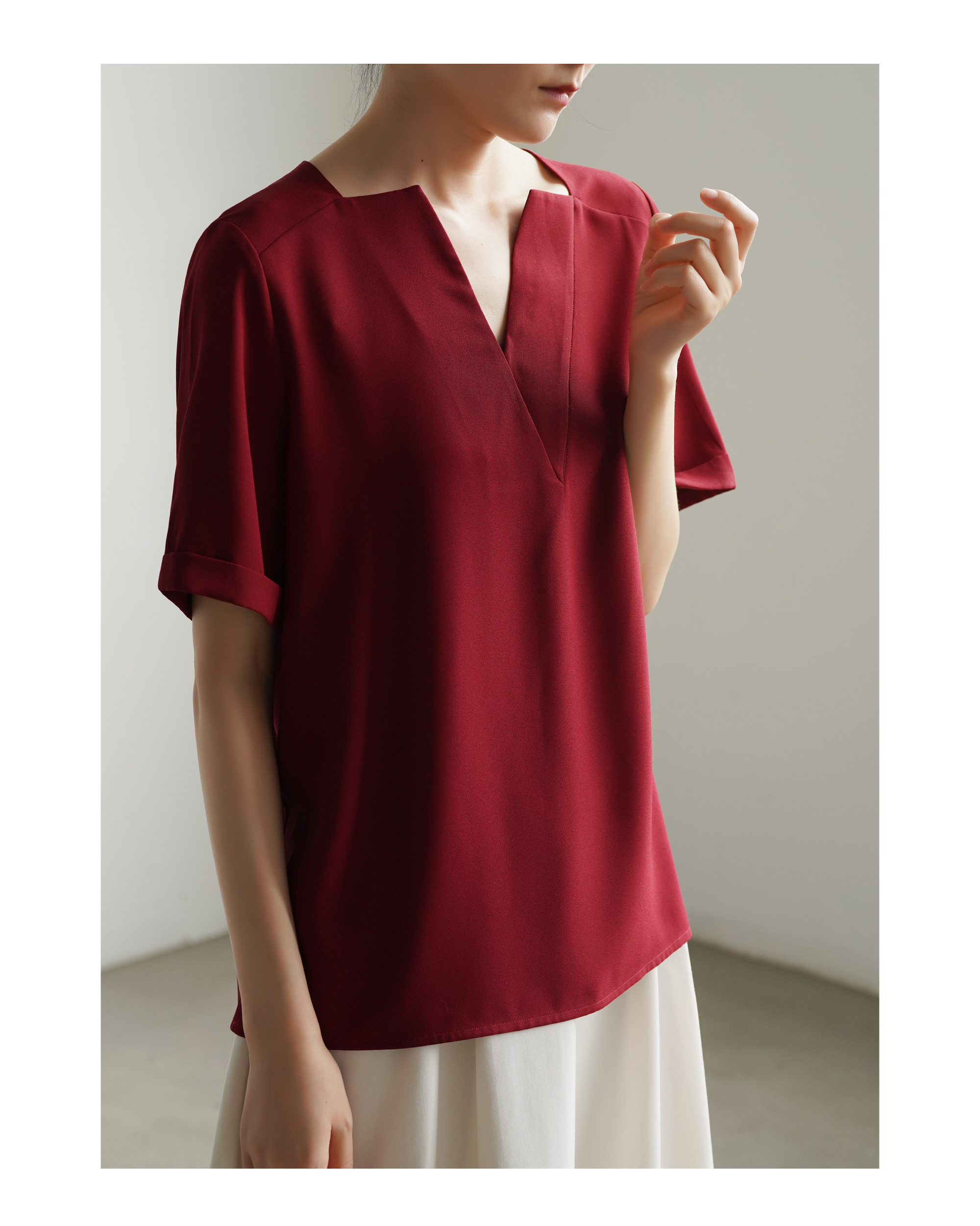 LIMONN 法式復古簡約通勤V領短袖襯衫女設計感上衣極簡職業上衣