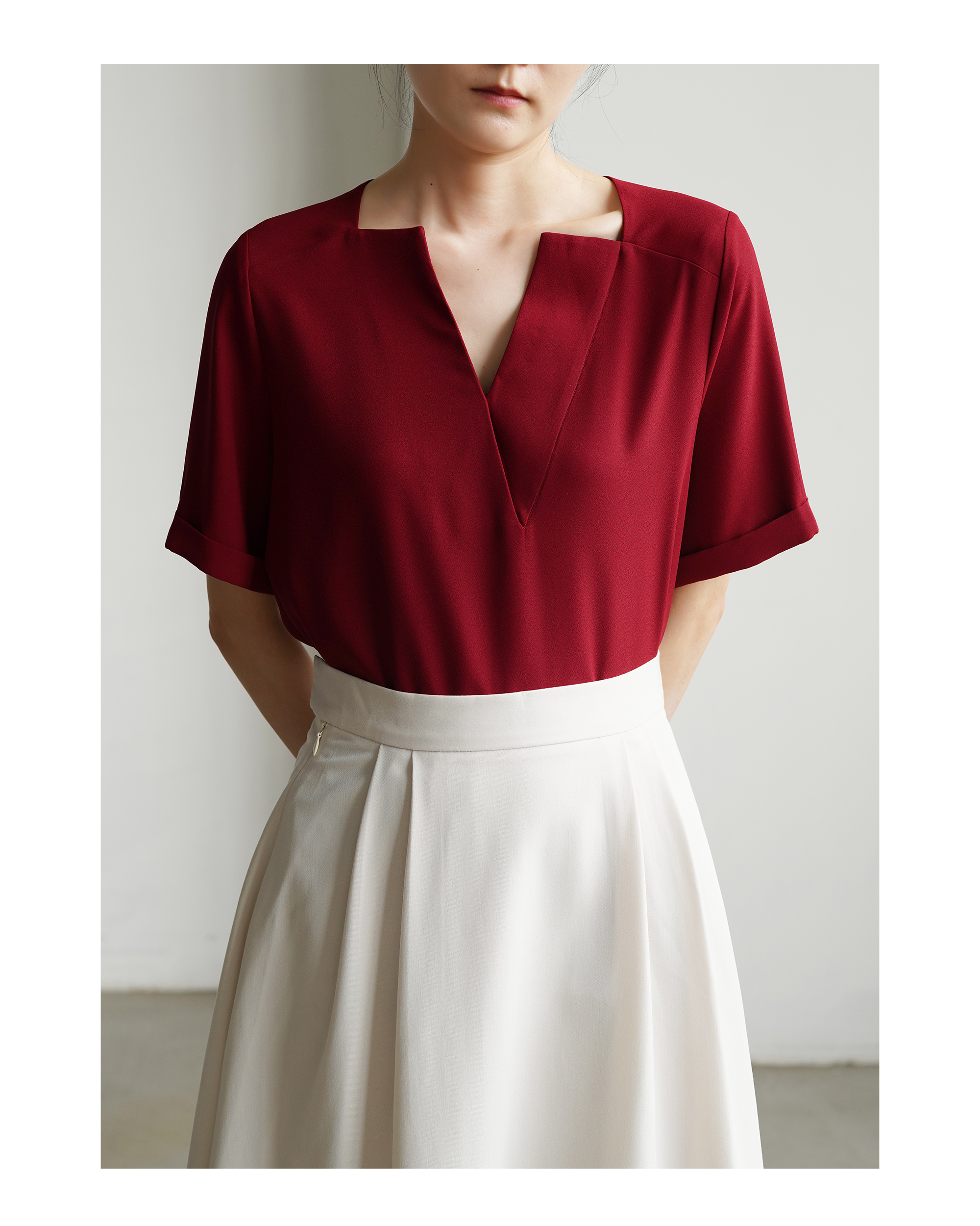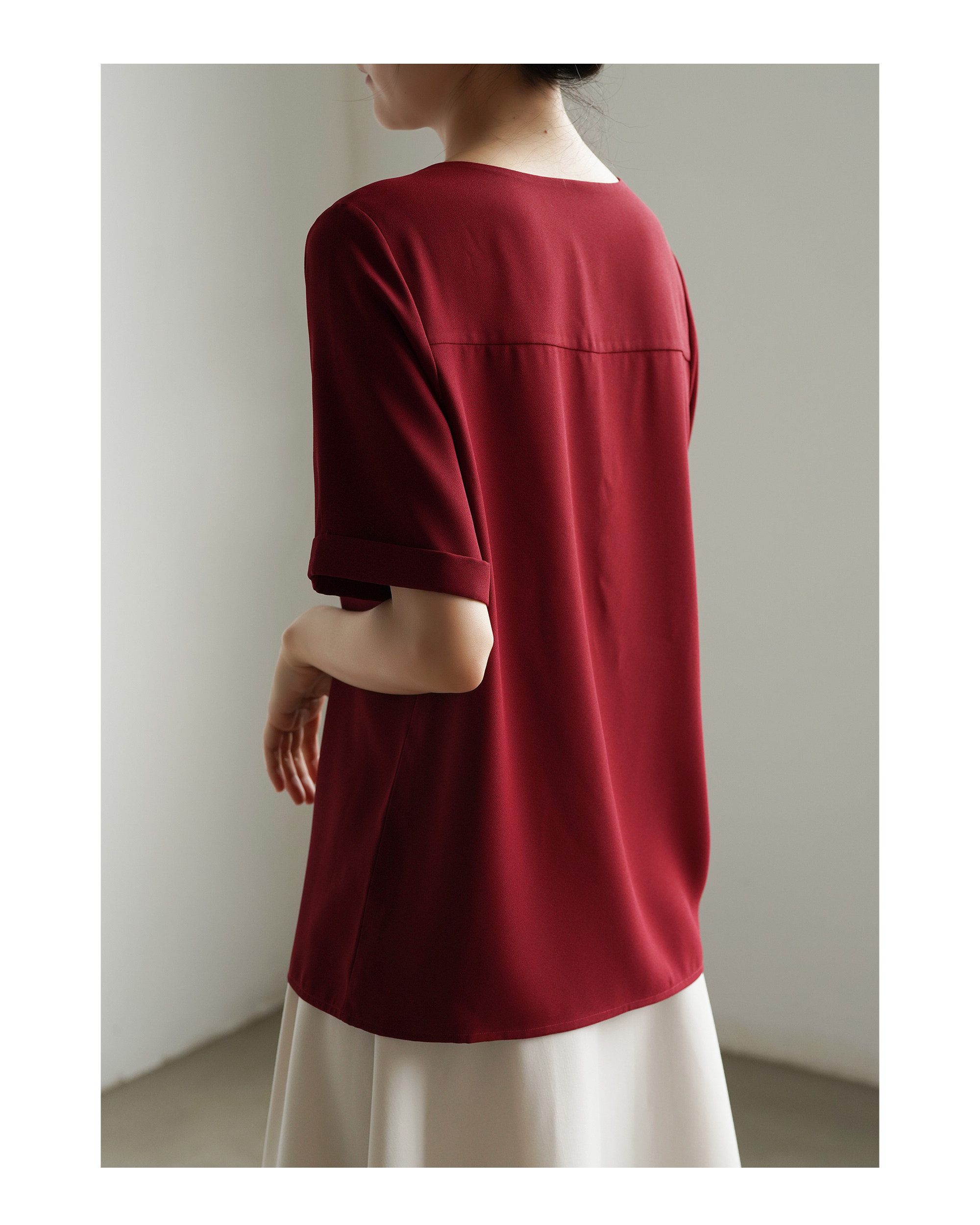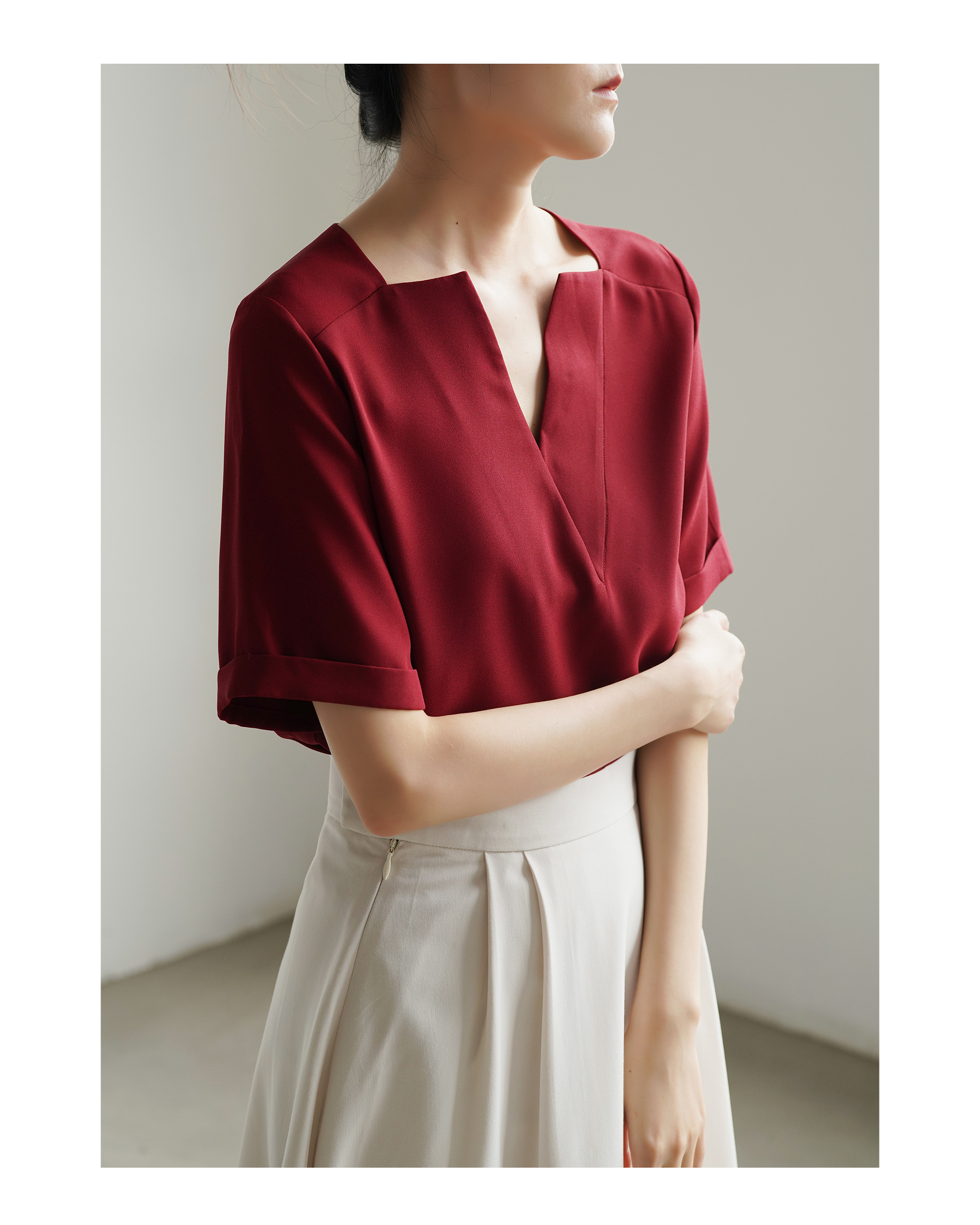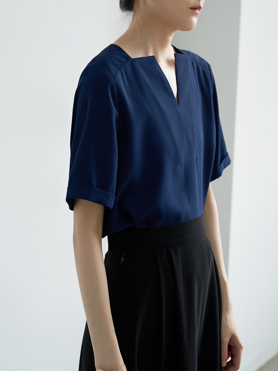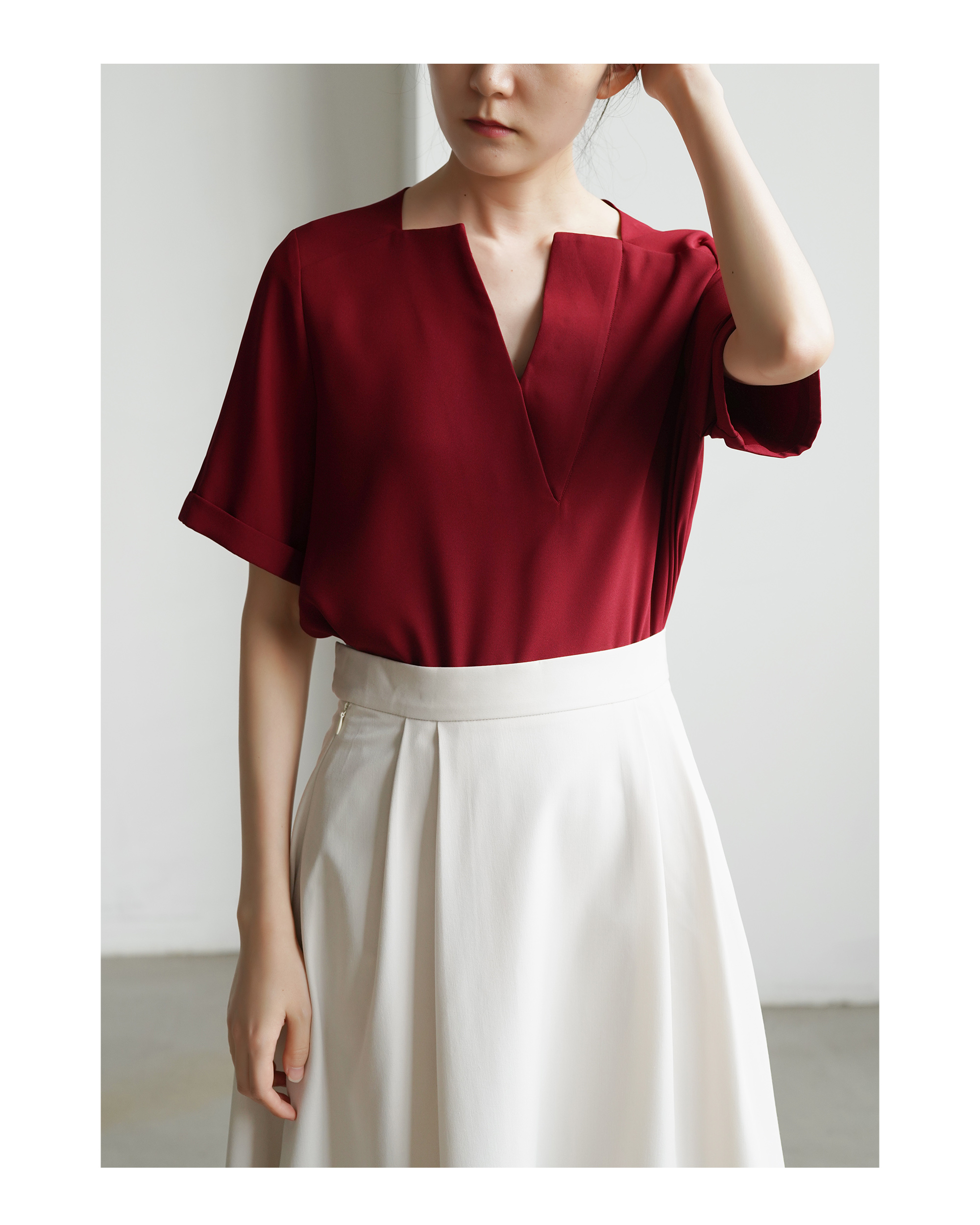 LIMONN 法式復古簡約通勤V領短袖襯衫女設計感上衣極簡職業上衣