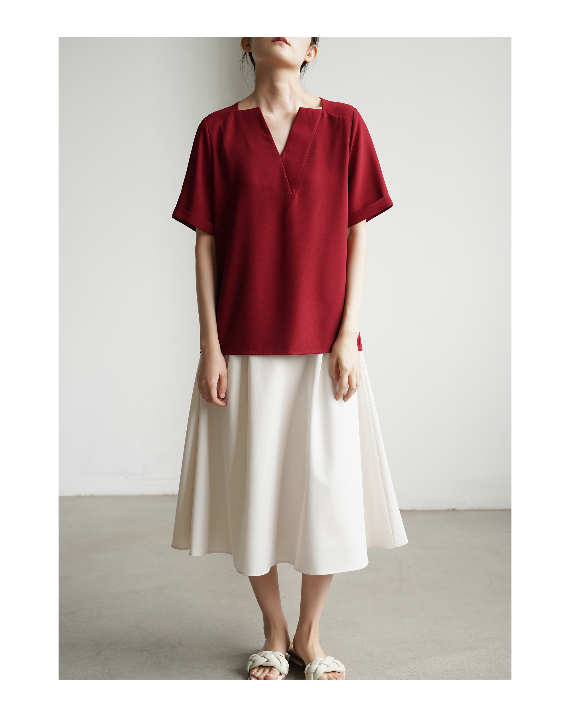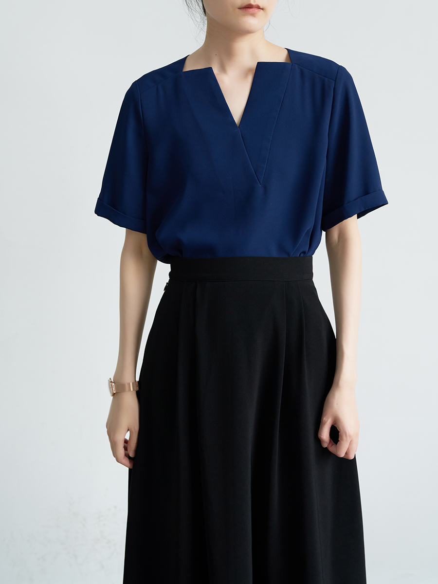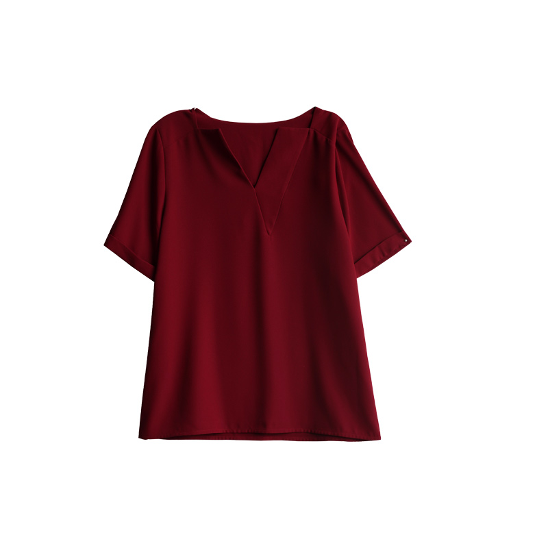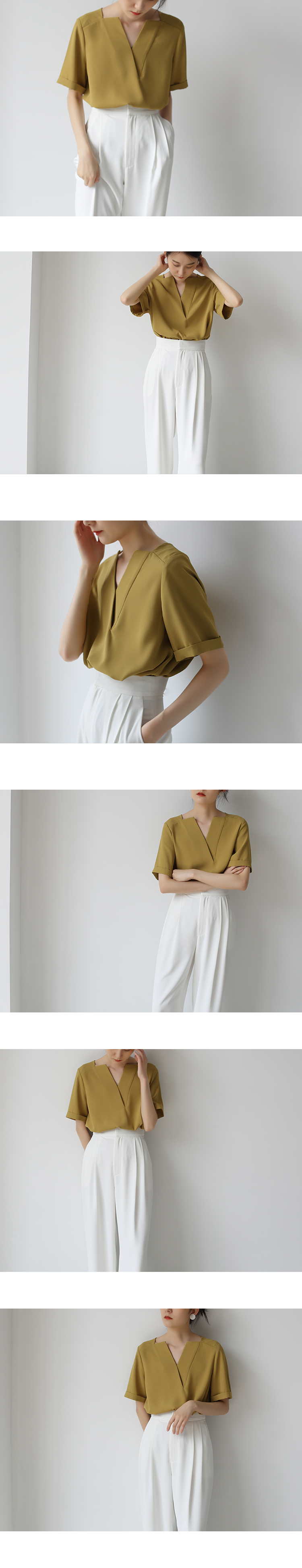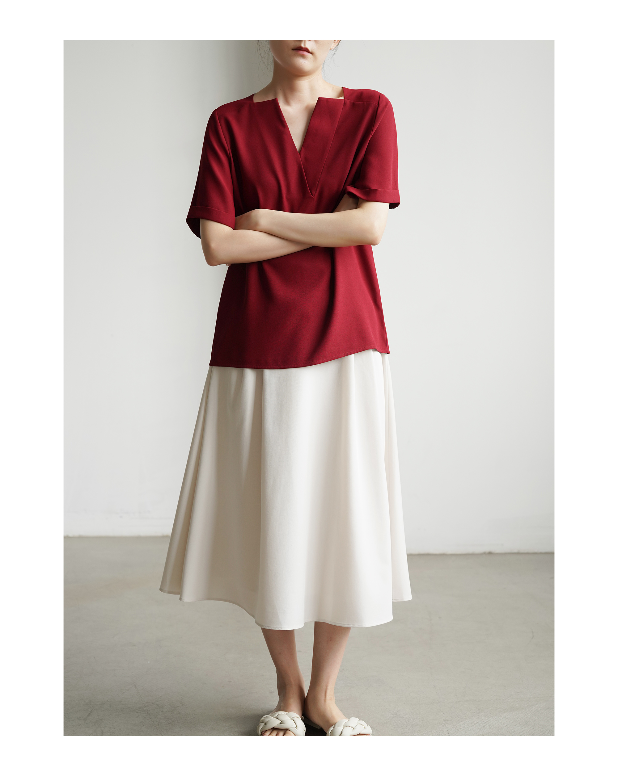LIMONN 法式復古簡約通勤V領短袖襯衫女設計感上衣極簡職業上衣