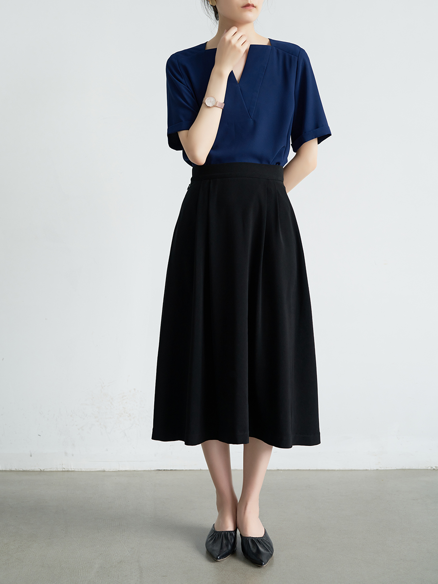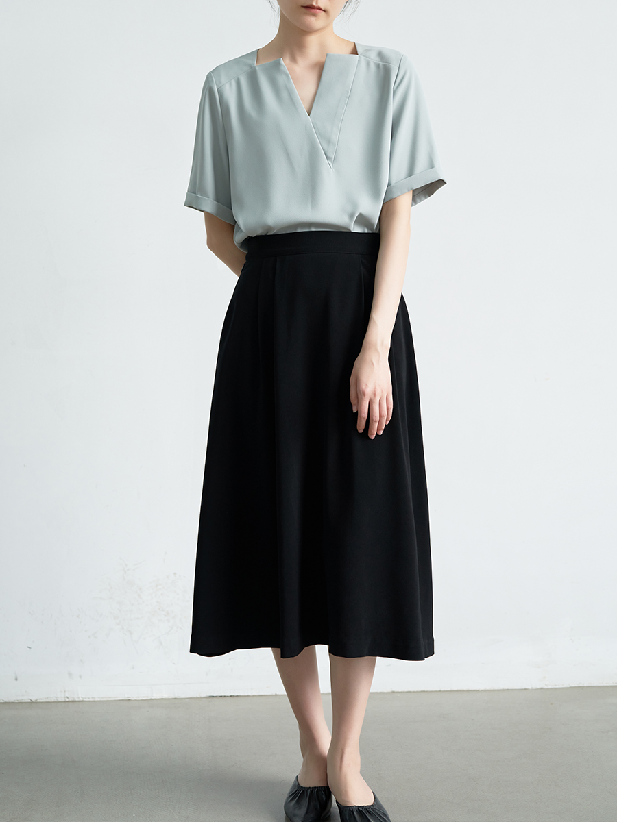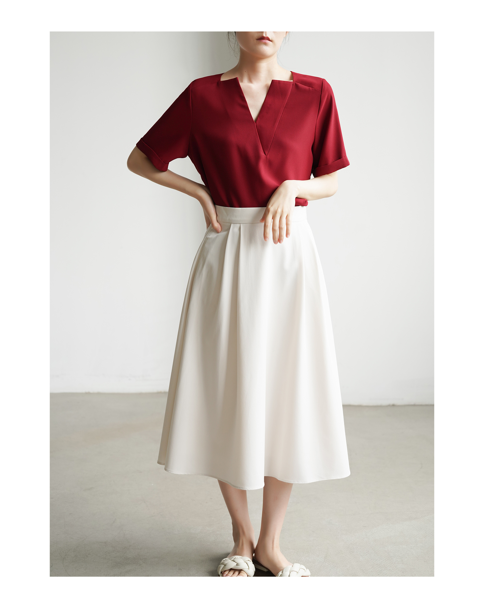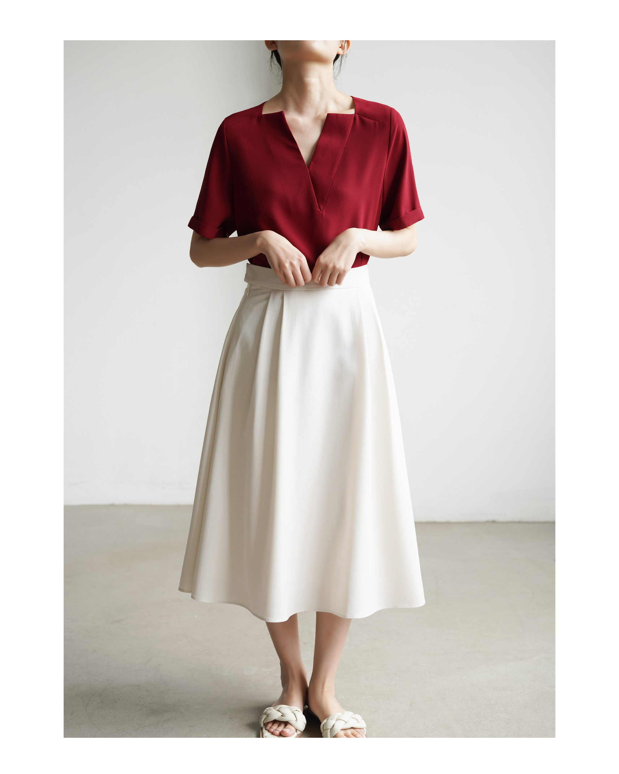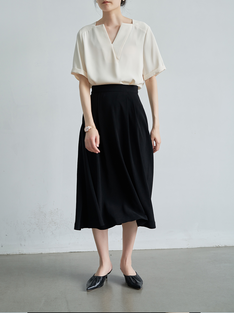 LIMONN 法式復古簡約通勤V領短袖襯衫女設計感上衣極簡職業上衣