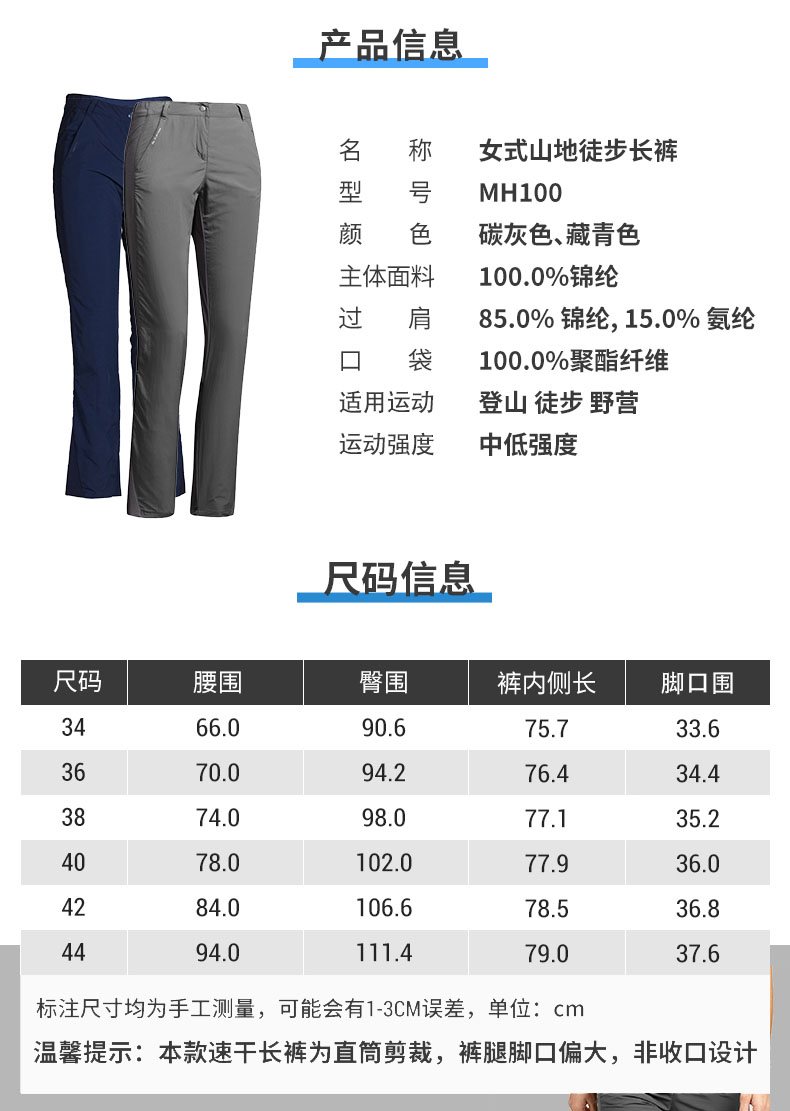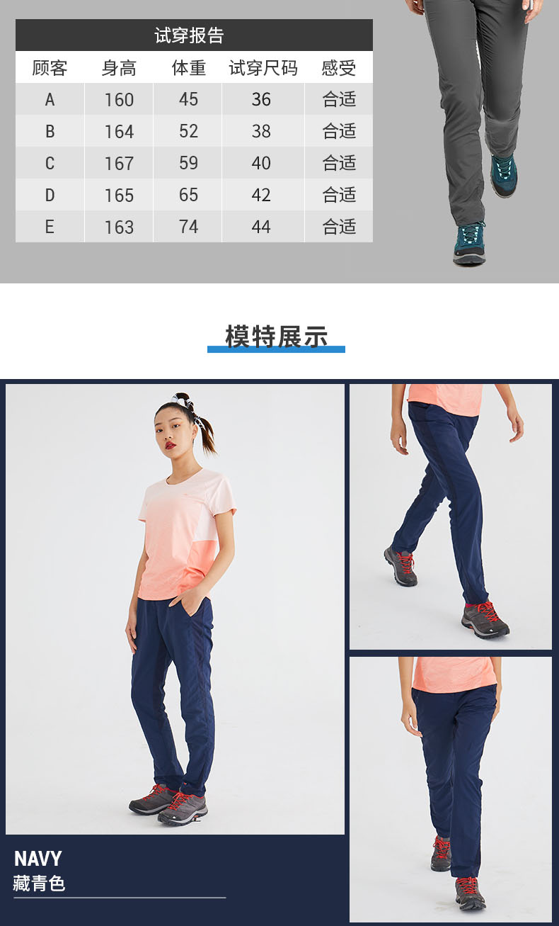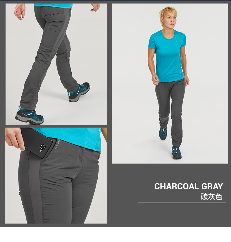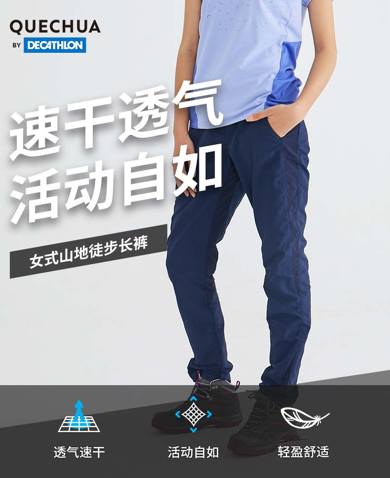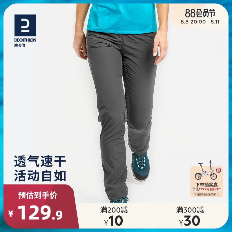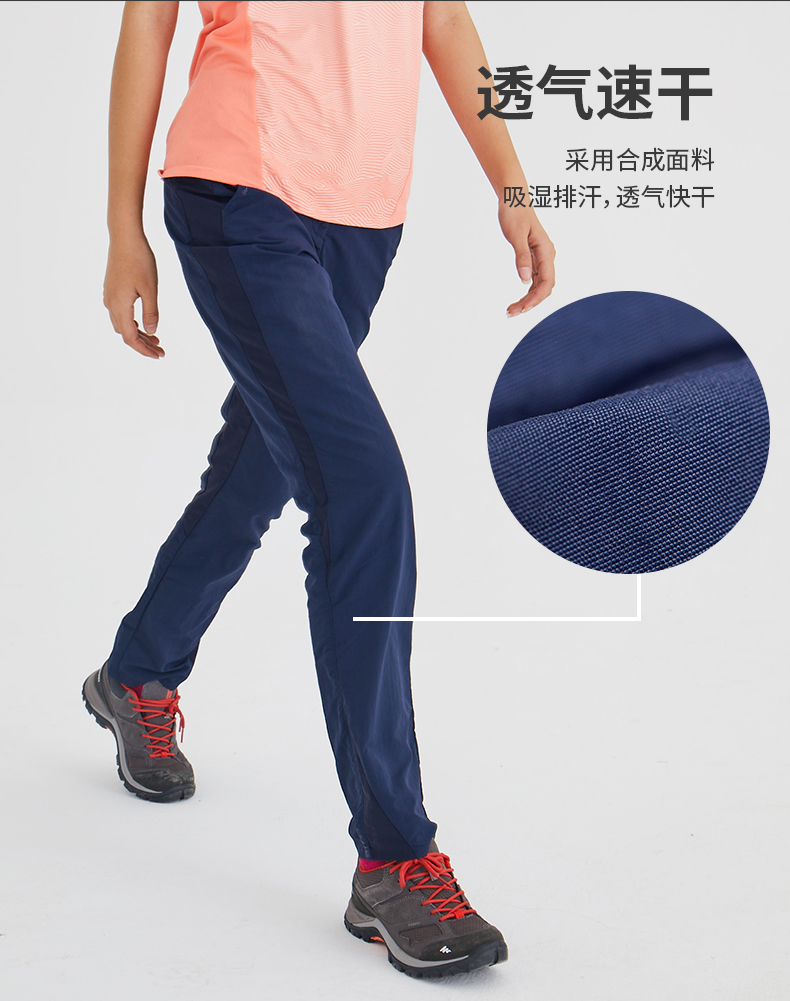 迪卡儂速乾褲女夏季薄款戶外徒步春秋褲休閒運動登山寬鬆長褲ODT1