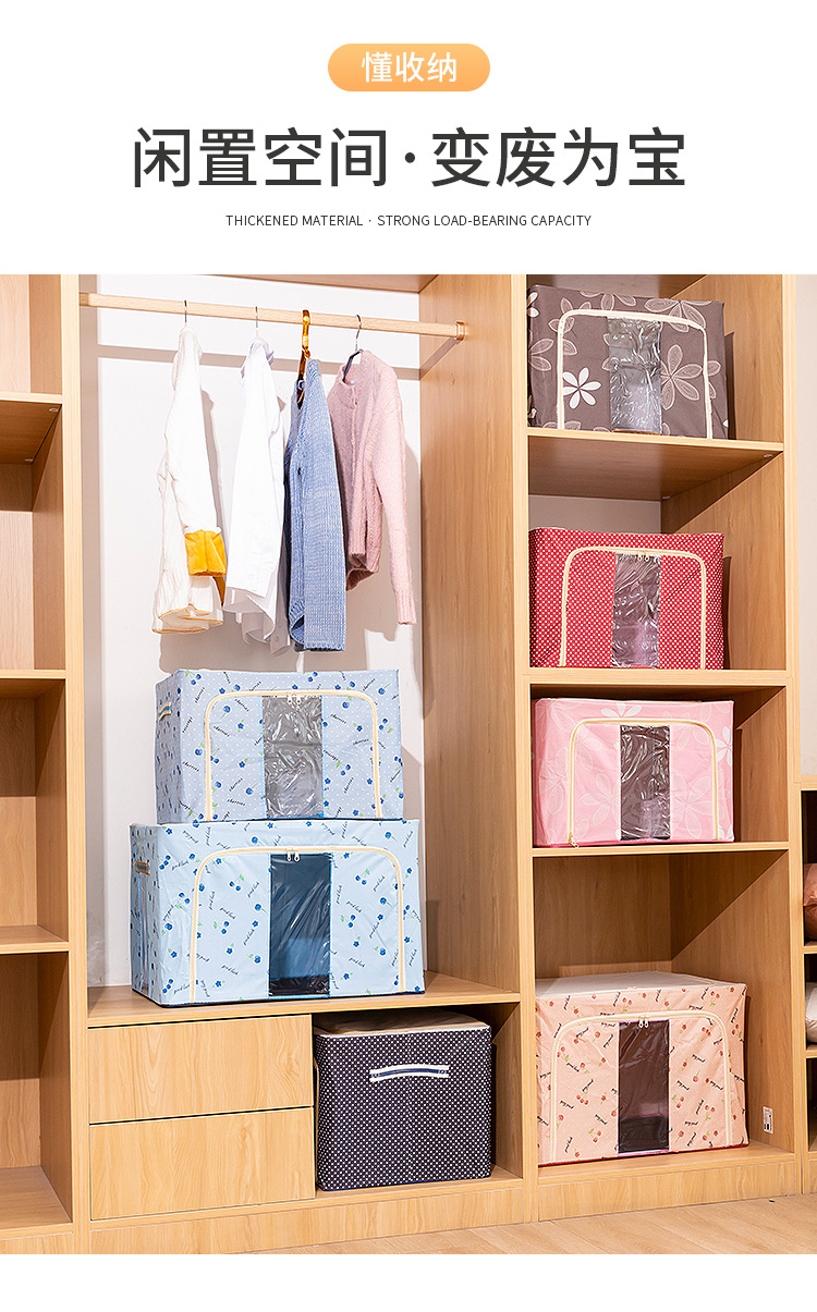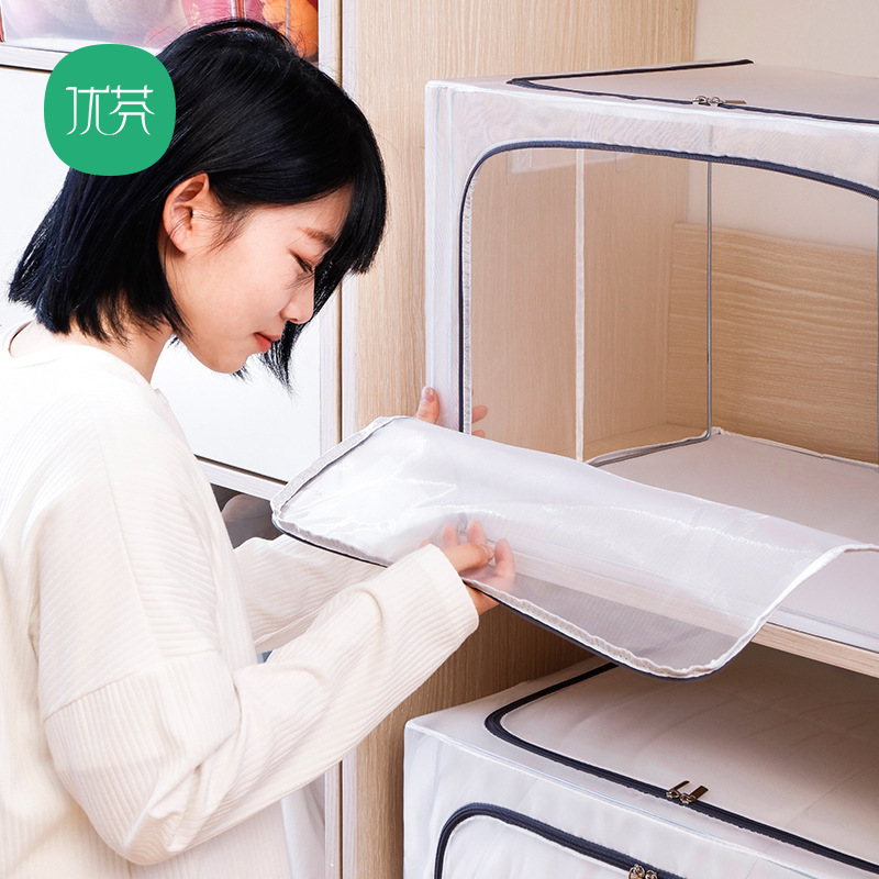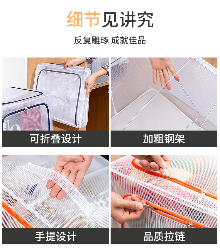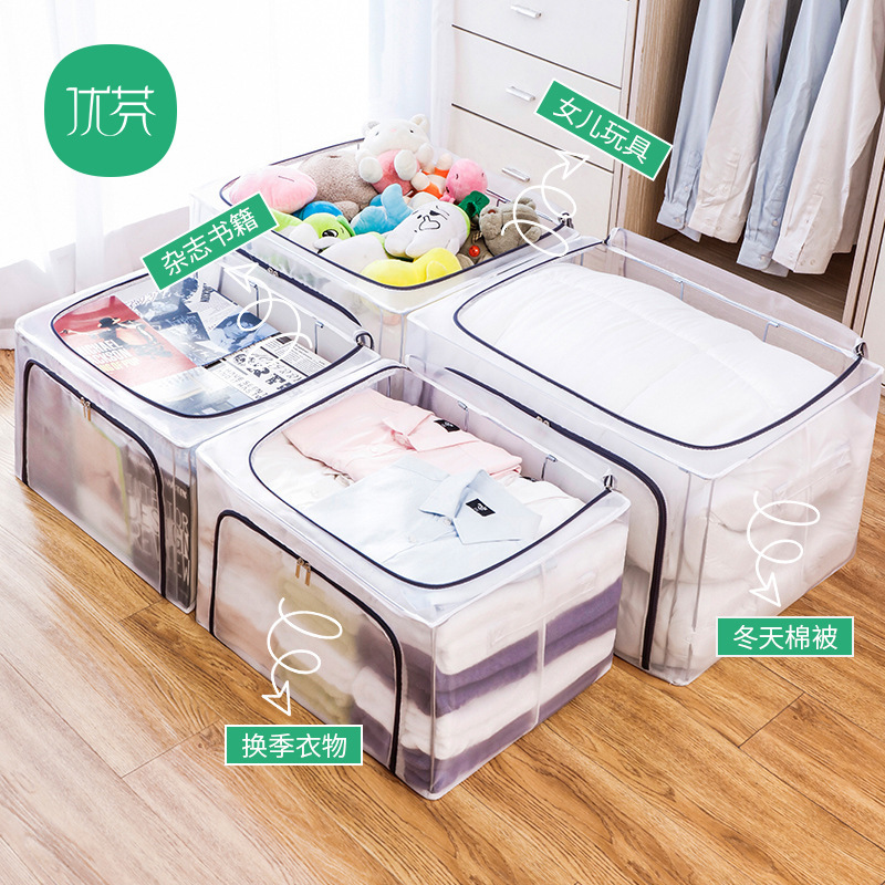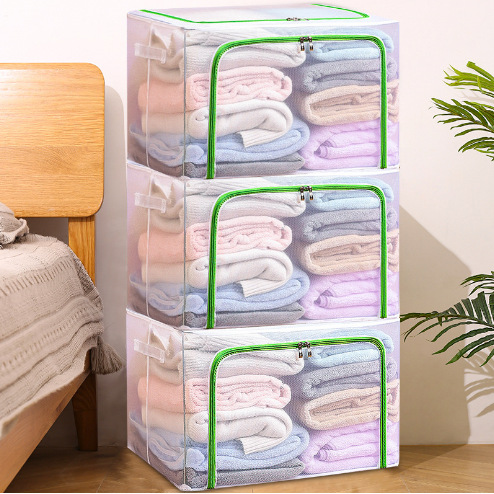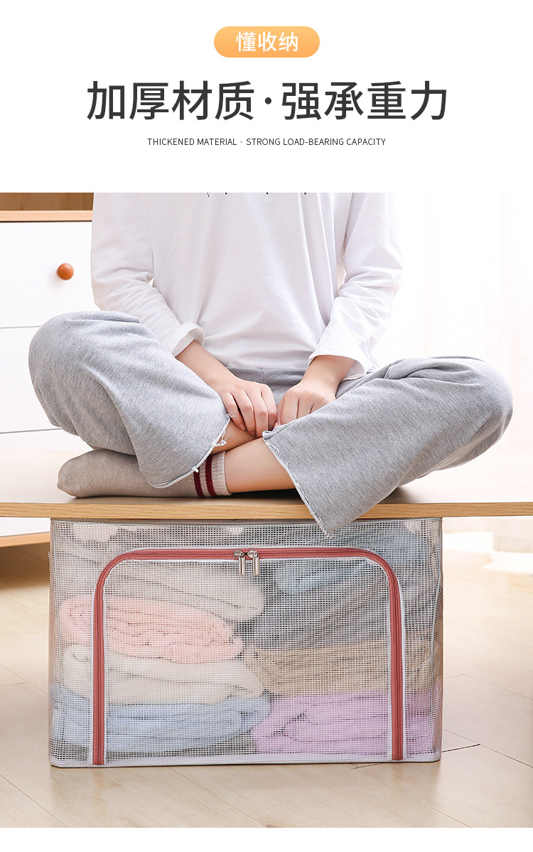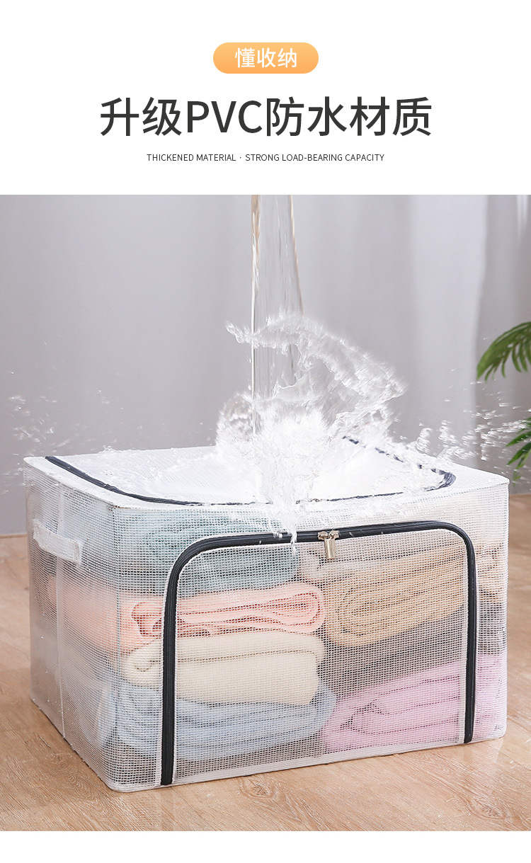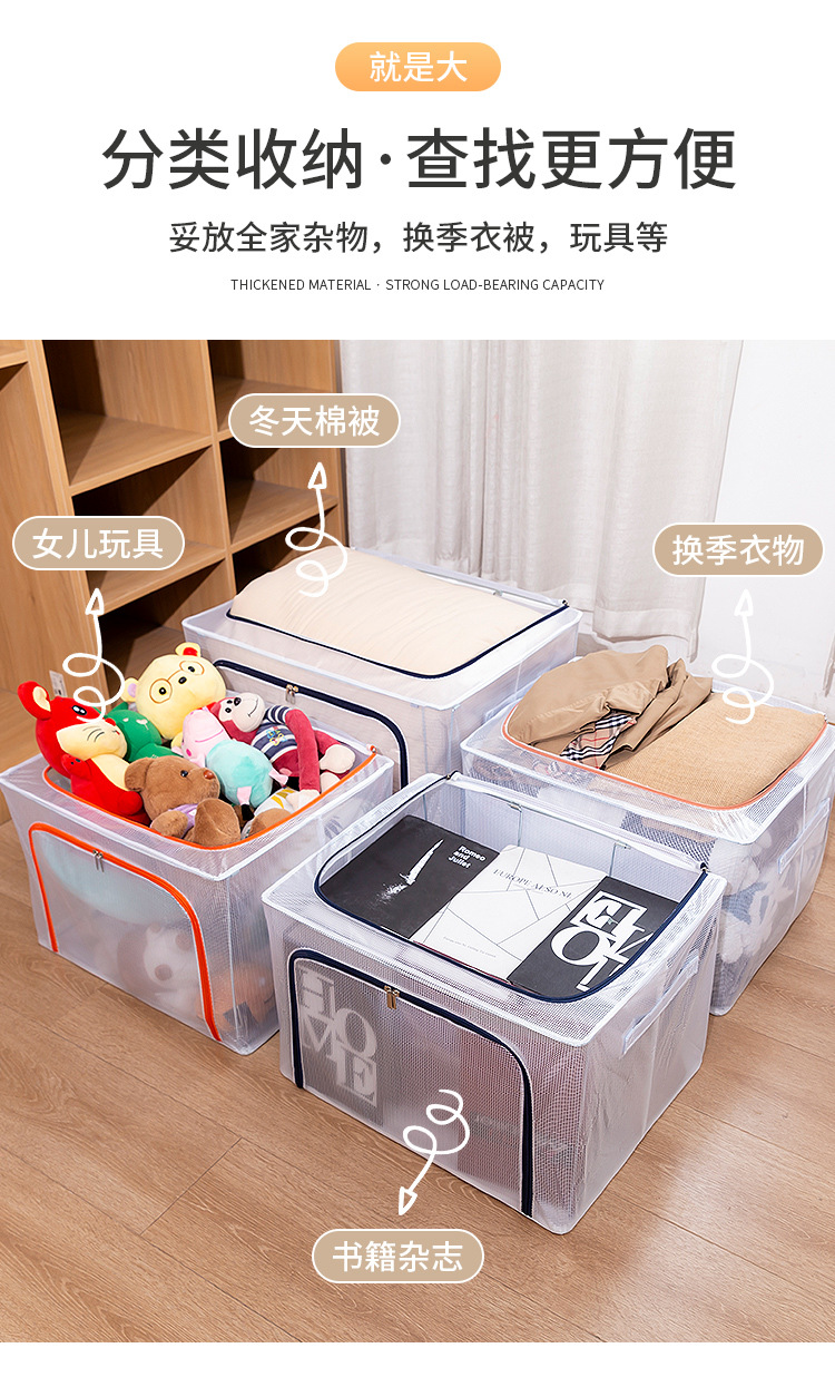 可折叠尼龙透明防水衣物钢架收纳箱整理箱大号棉被衣服玩具收纳箱