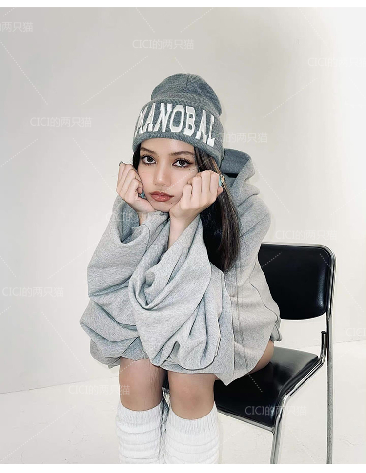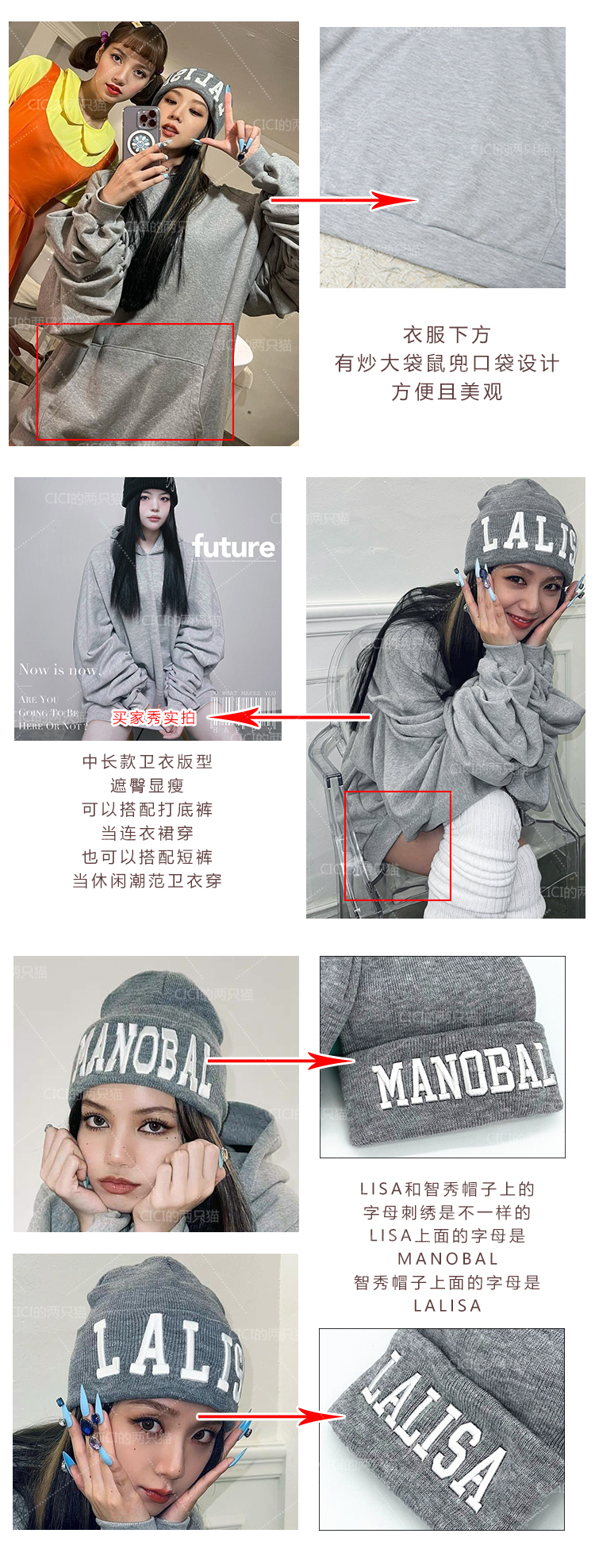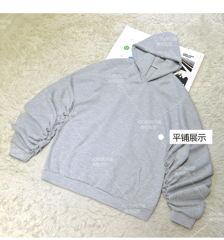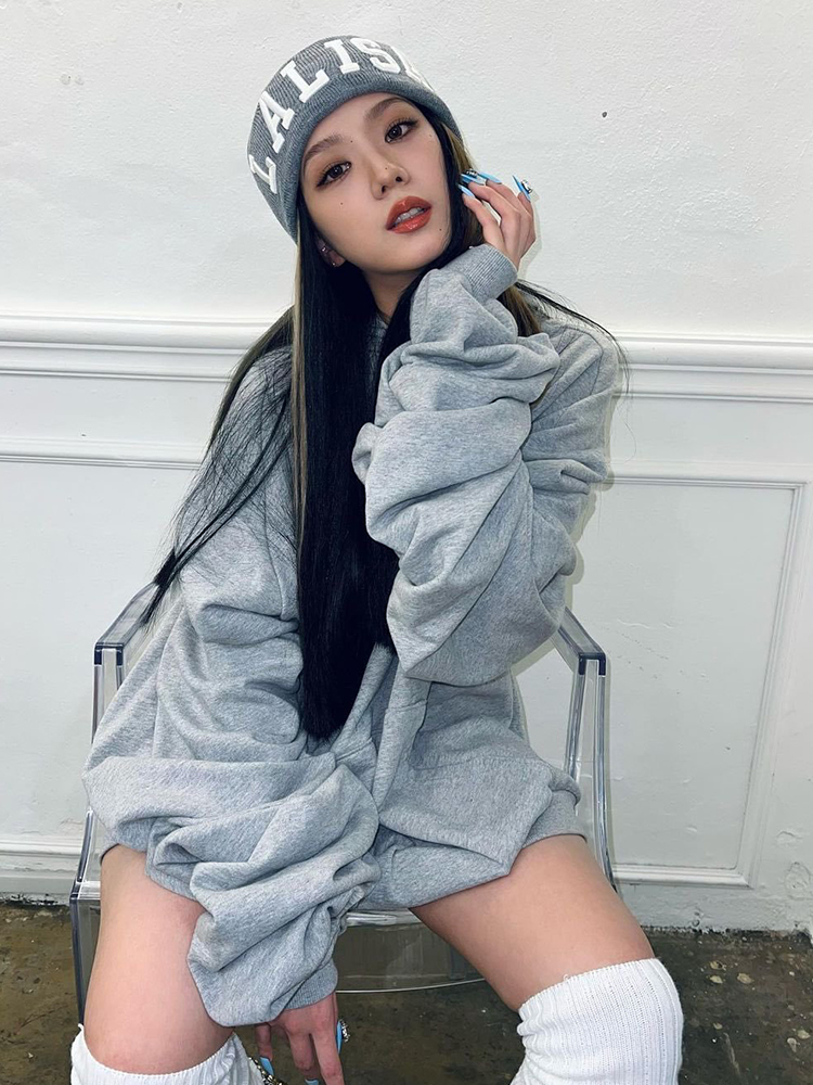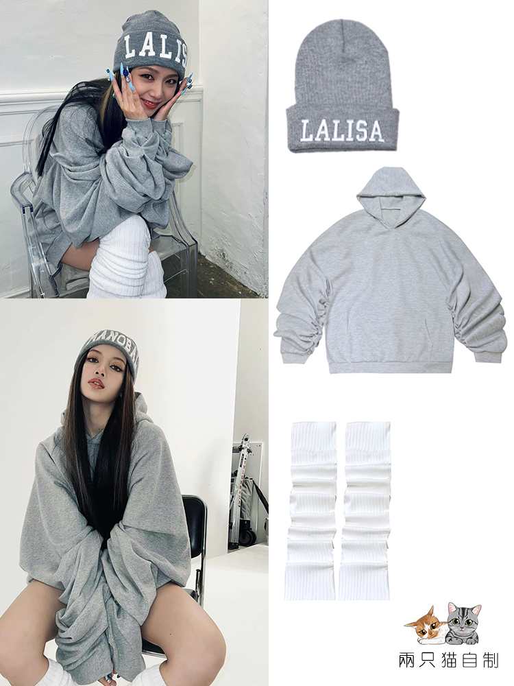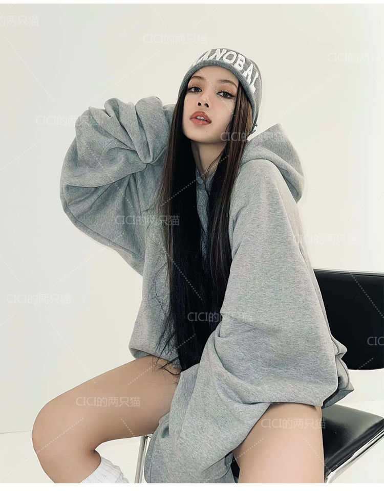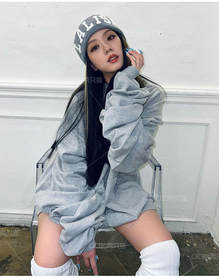 blackpink金智秀lisa同款打歌服連帽運動衫寬鬆抽褶灰色個性小眾長