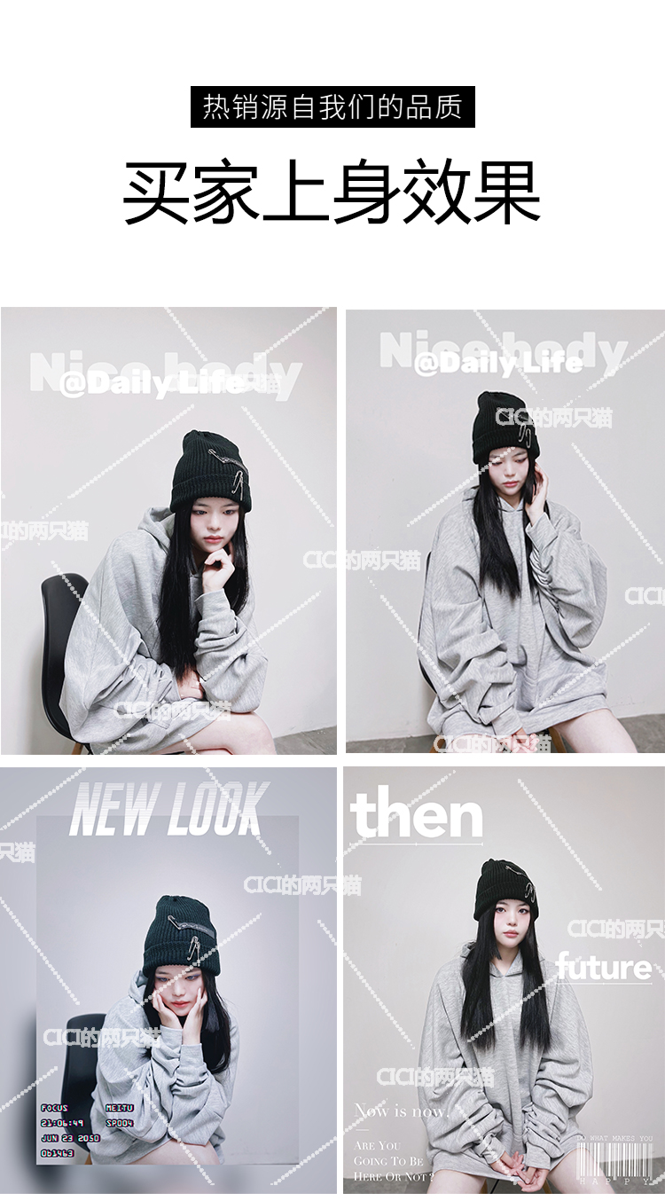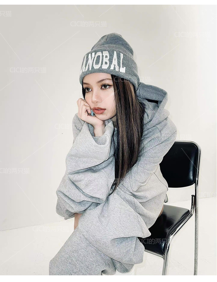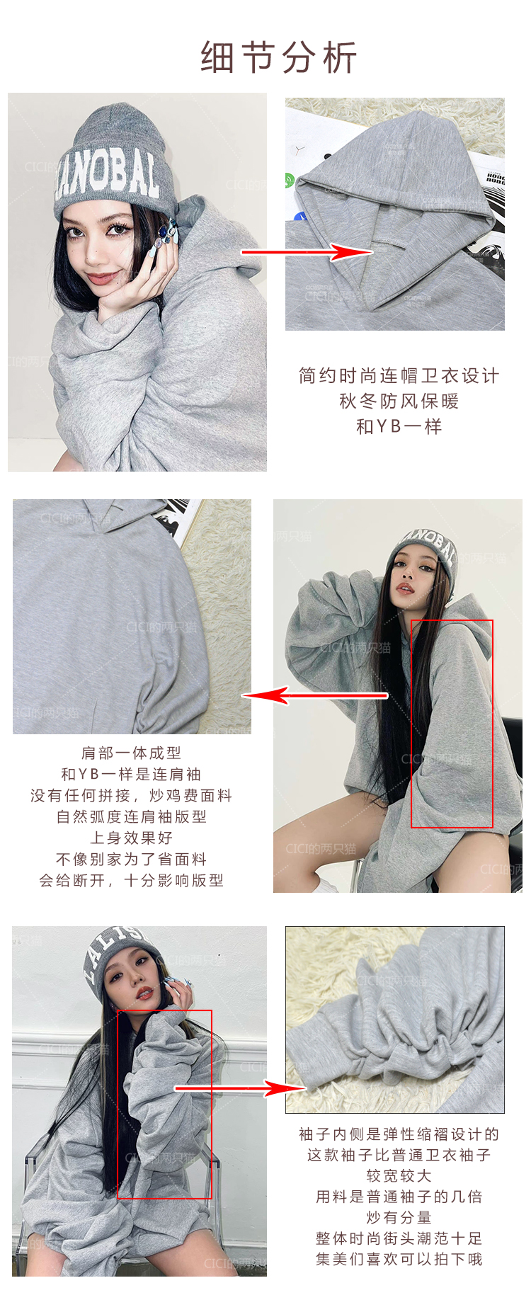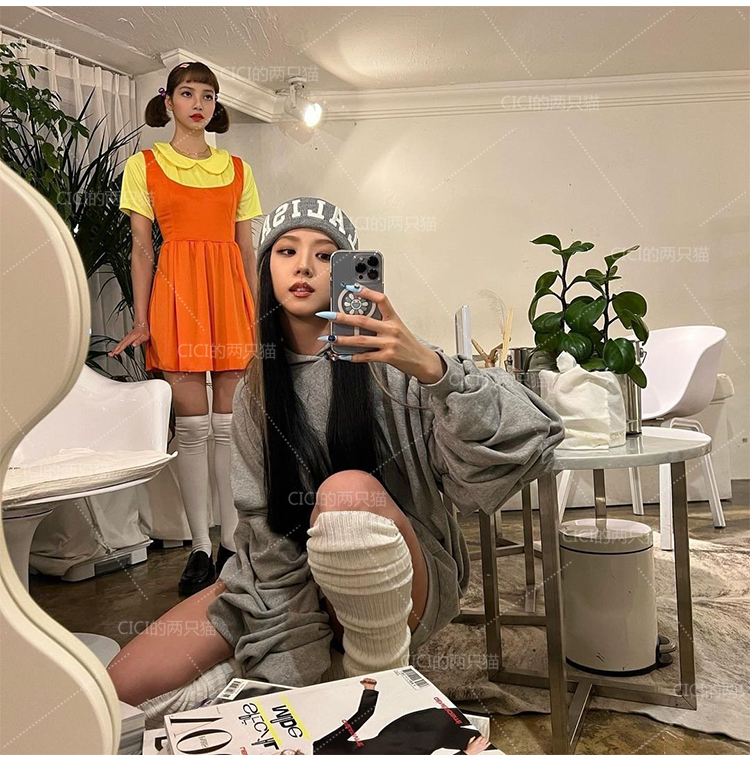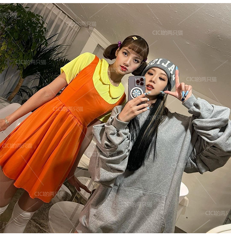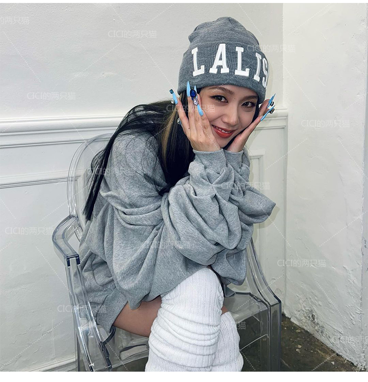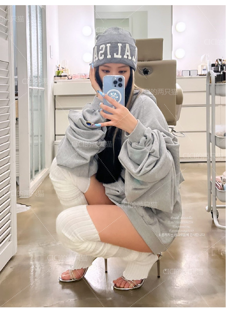 blackpink金智秀lisa同款打歌服連帽運動衫寬鬆抽褶灰色個性小眾長