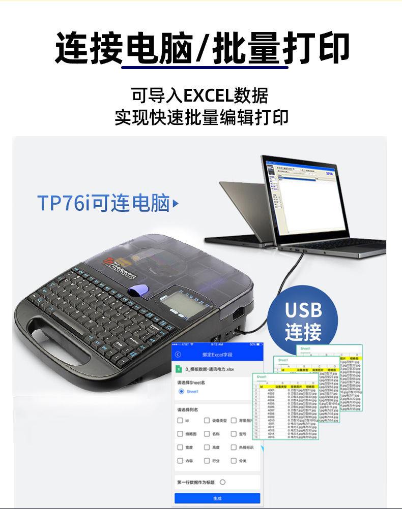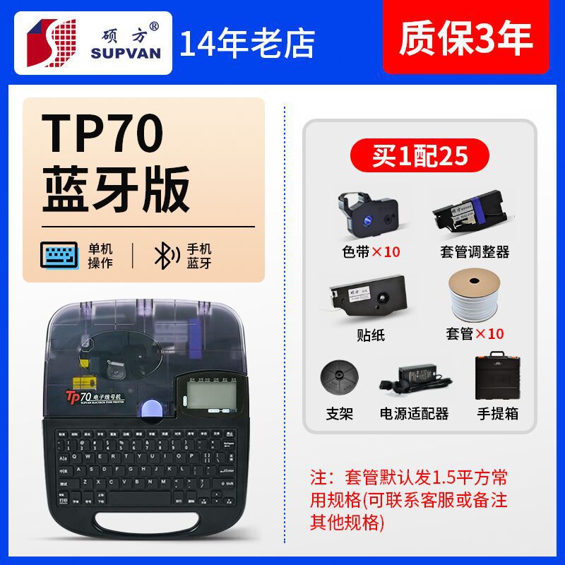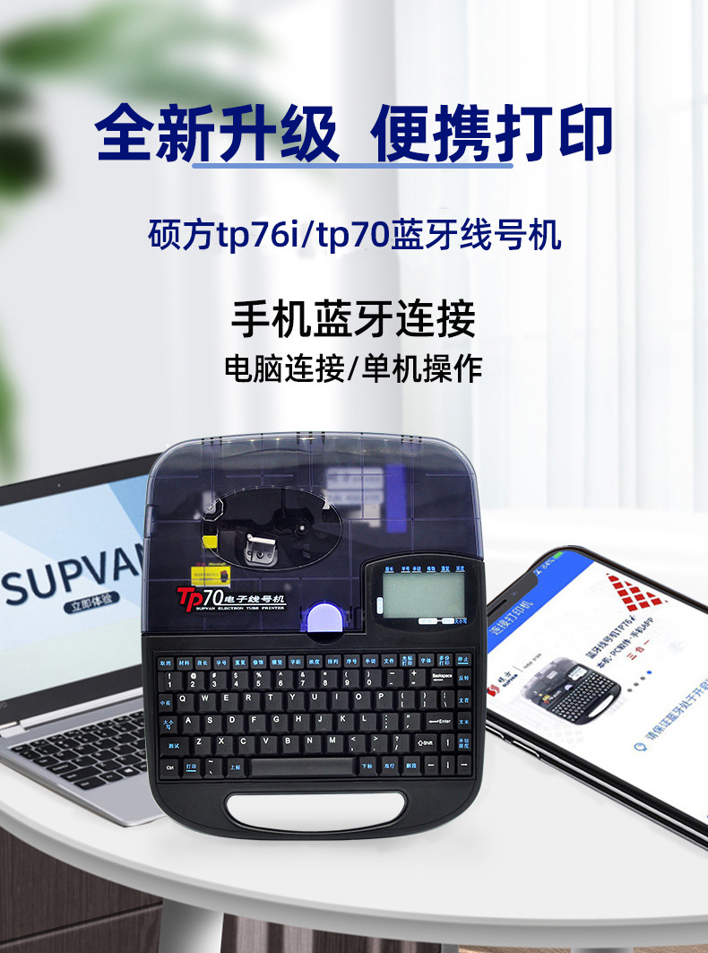 蓝牙硕方线号机tp76i号码管打印机打号打码机tp70电子线号打印机