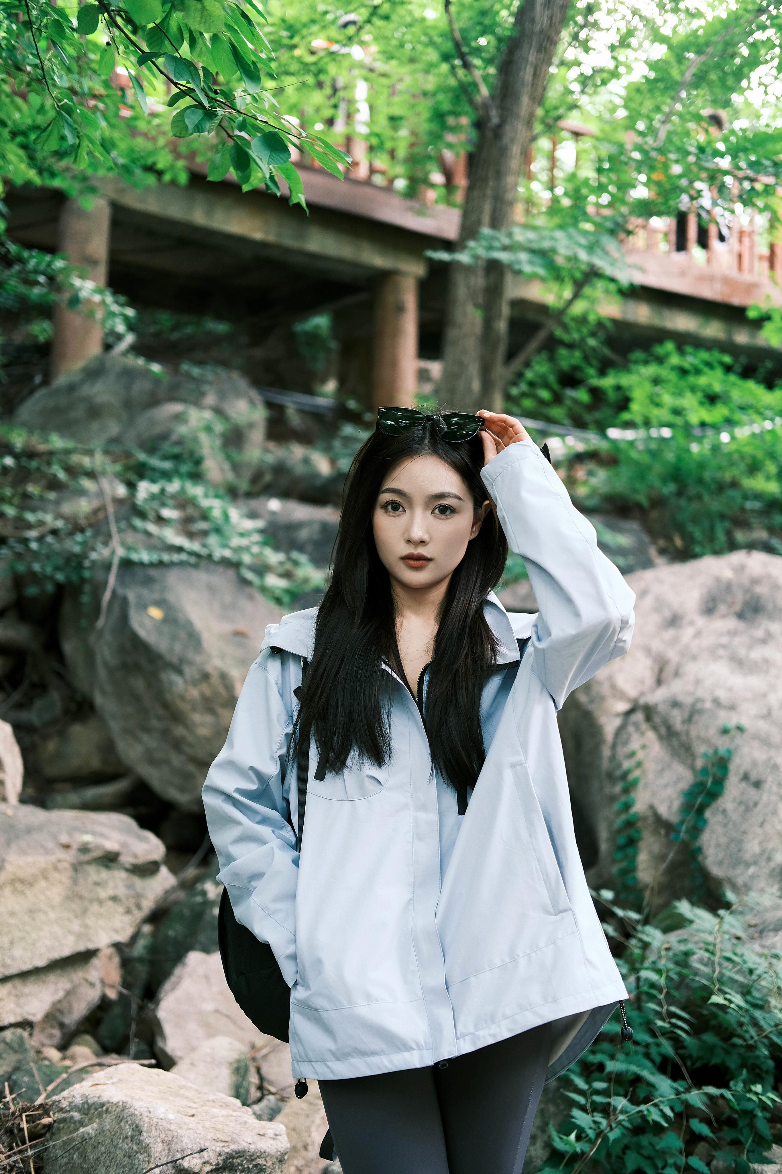 灰色衝鋒衣女款小個子運動爬山登山服2023新款女三合一外套套裝薄