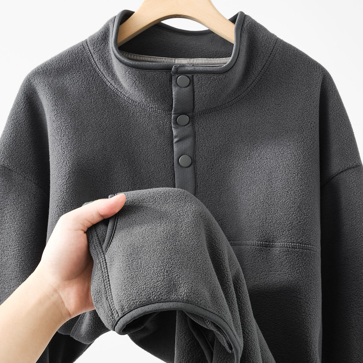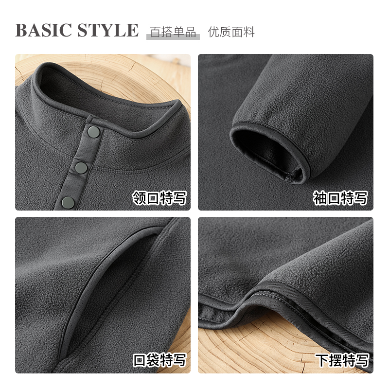 暖糯重磅羊羔絨加絨加厚半開領衛衣男士秋冬季休閒深灰色上衣男裝