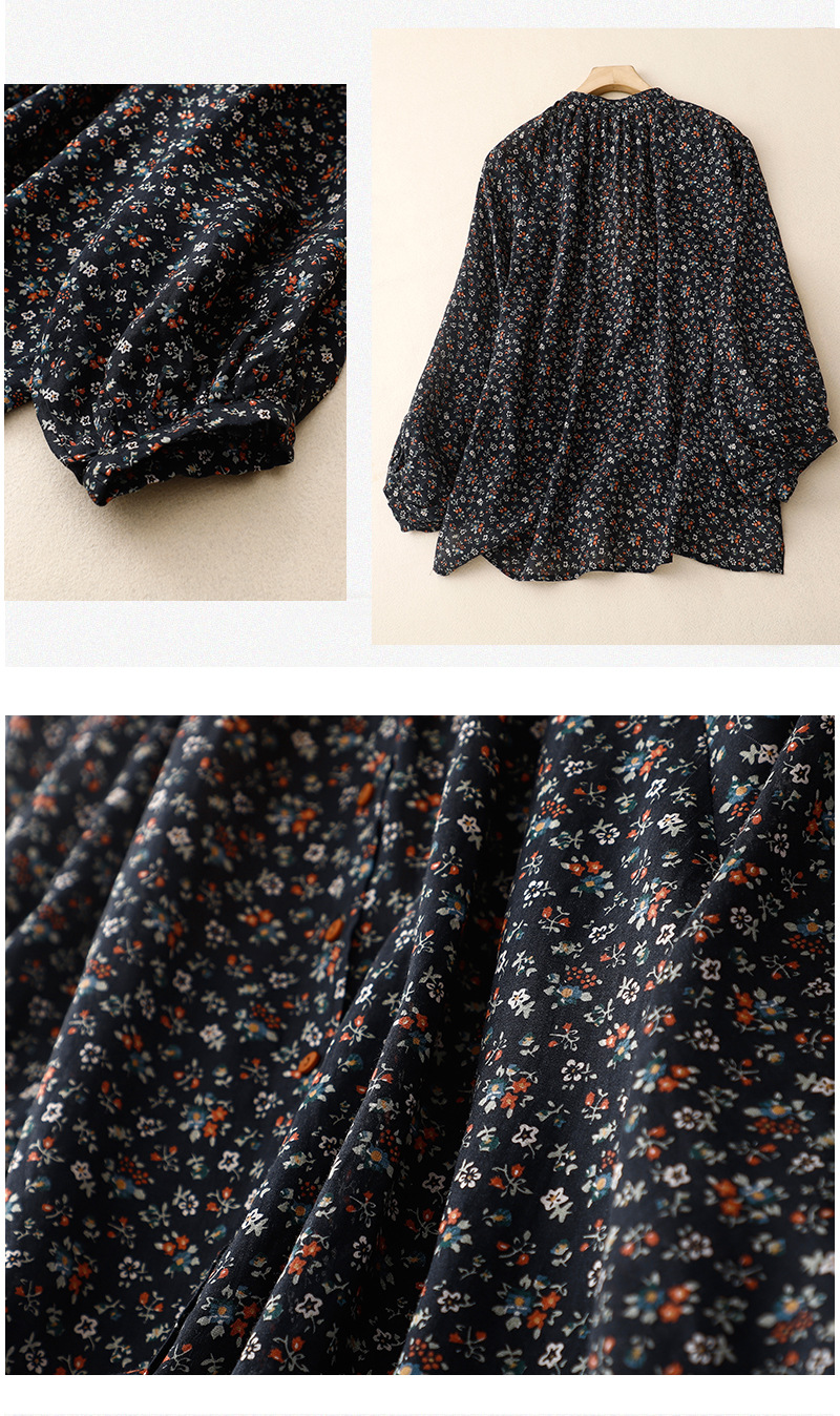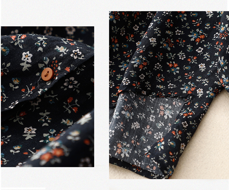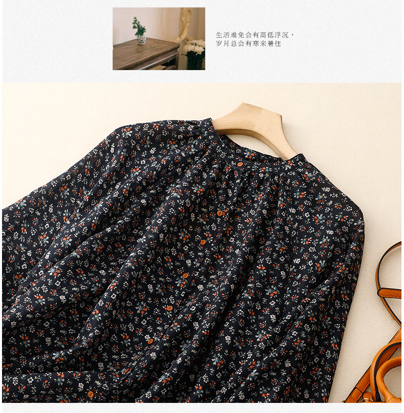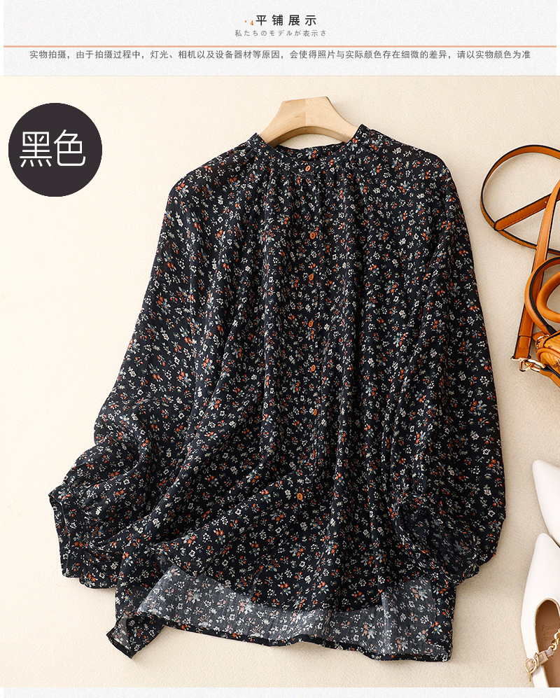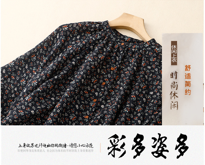 日韩现货夏季文艺复古森女日系碎花宽松休闲V领蝙蝠袖麻料衬衣女