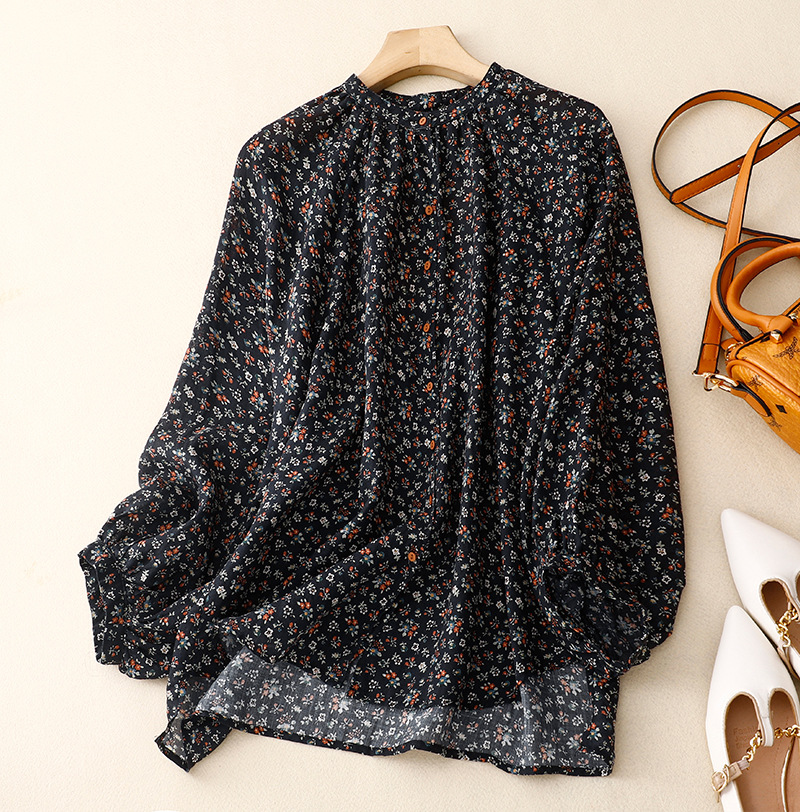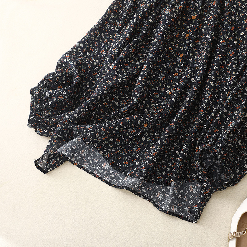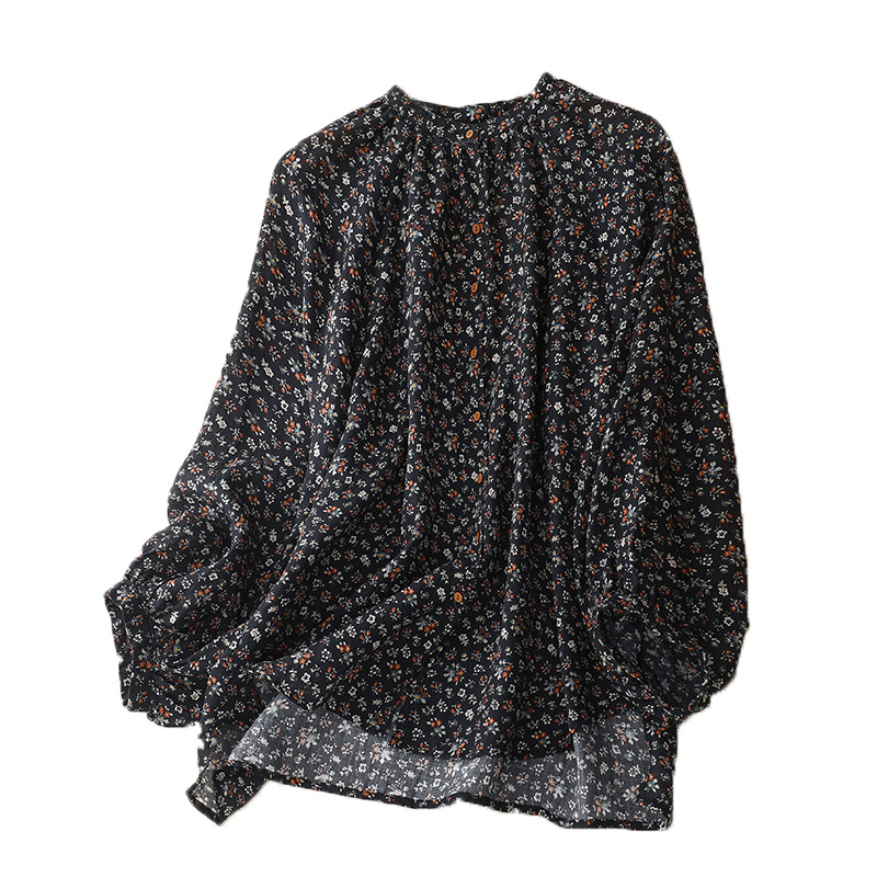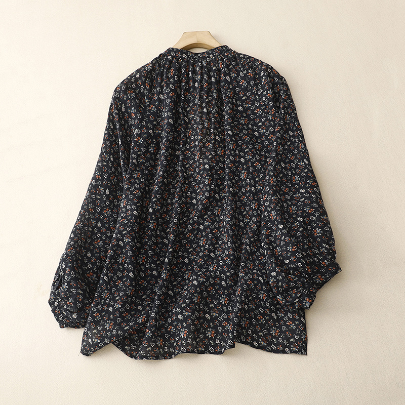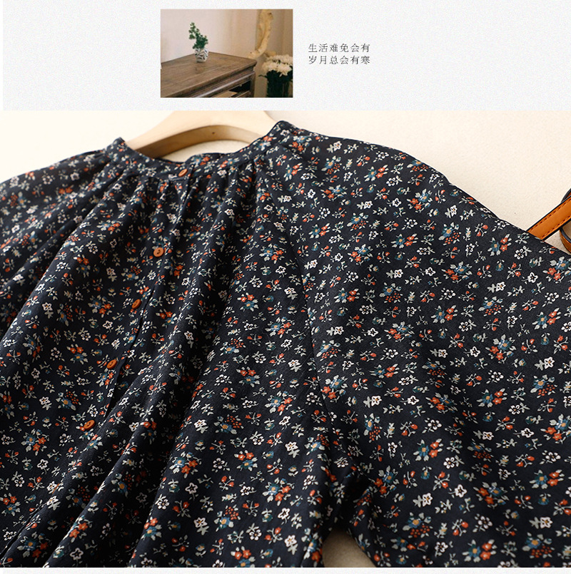 日韩现货夏季文艺复古森女日系碎花宽松休闲V领蝙蝠袖麻料衬衣女