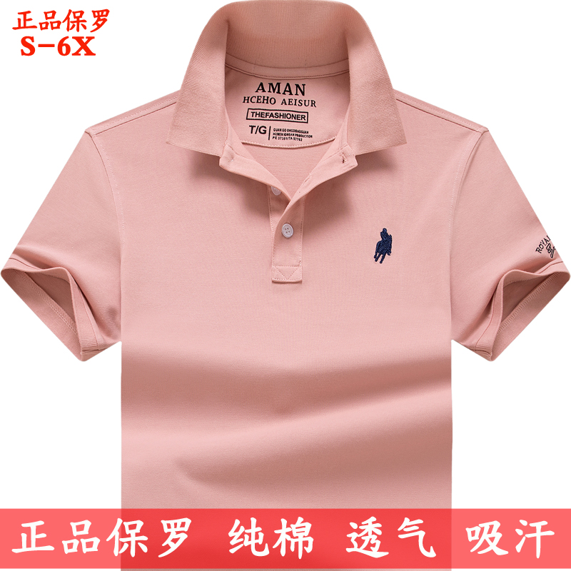 品牌拉夫·勞倫馬球polo衫男士短袖男t恤男裝休閒純棉T恤潮牌粉色上衣夏裝