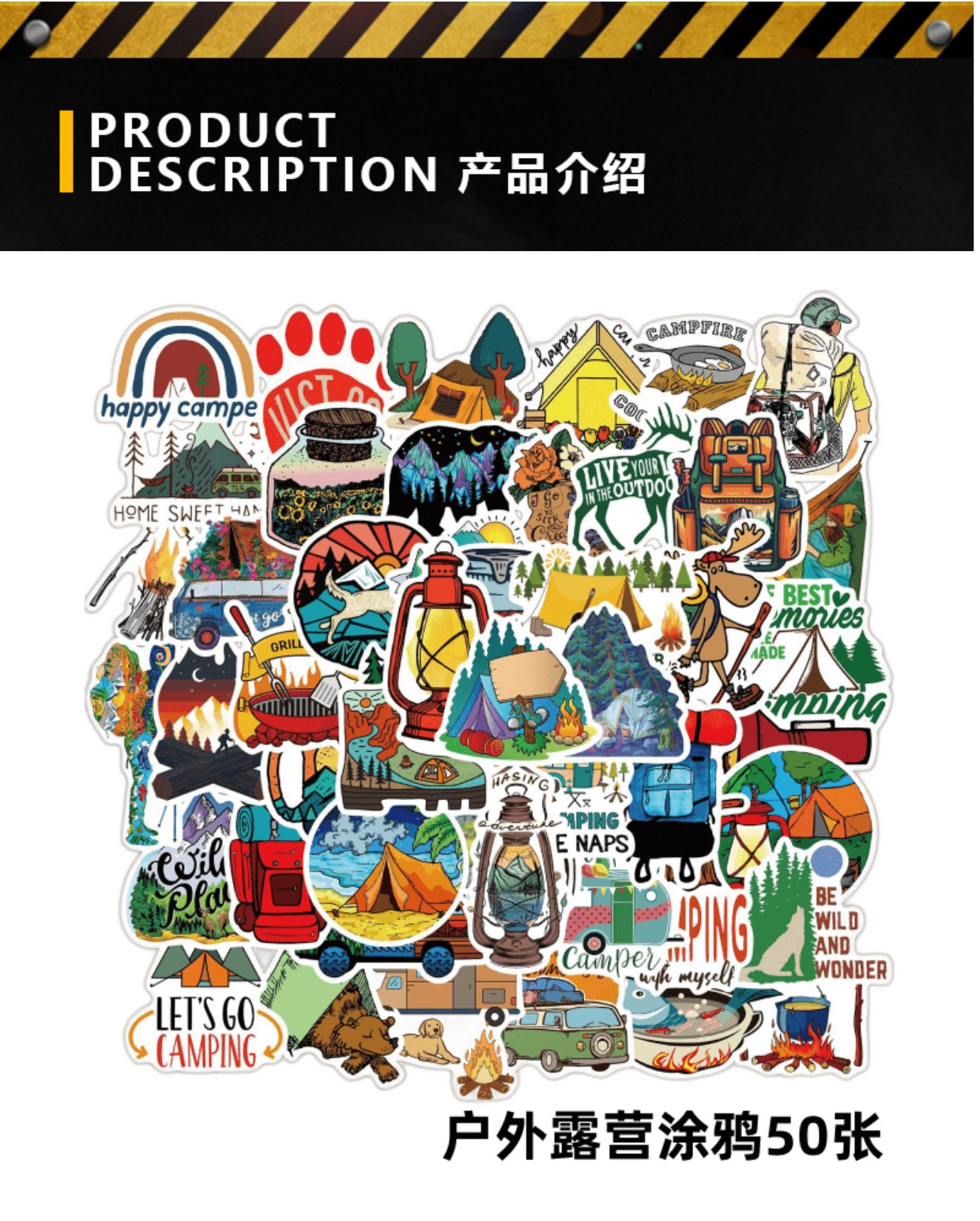 50張戶外野營露營防水裝飾個性貼畫保溫杯移動充行李箱筆記本貼紙